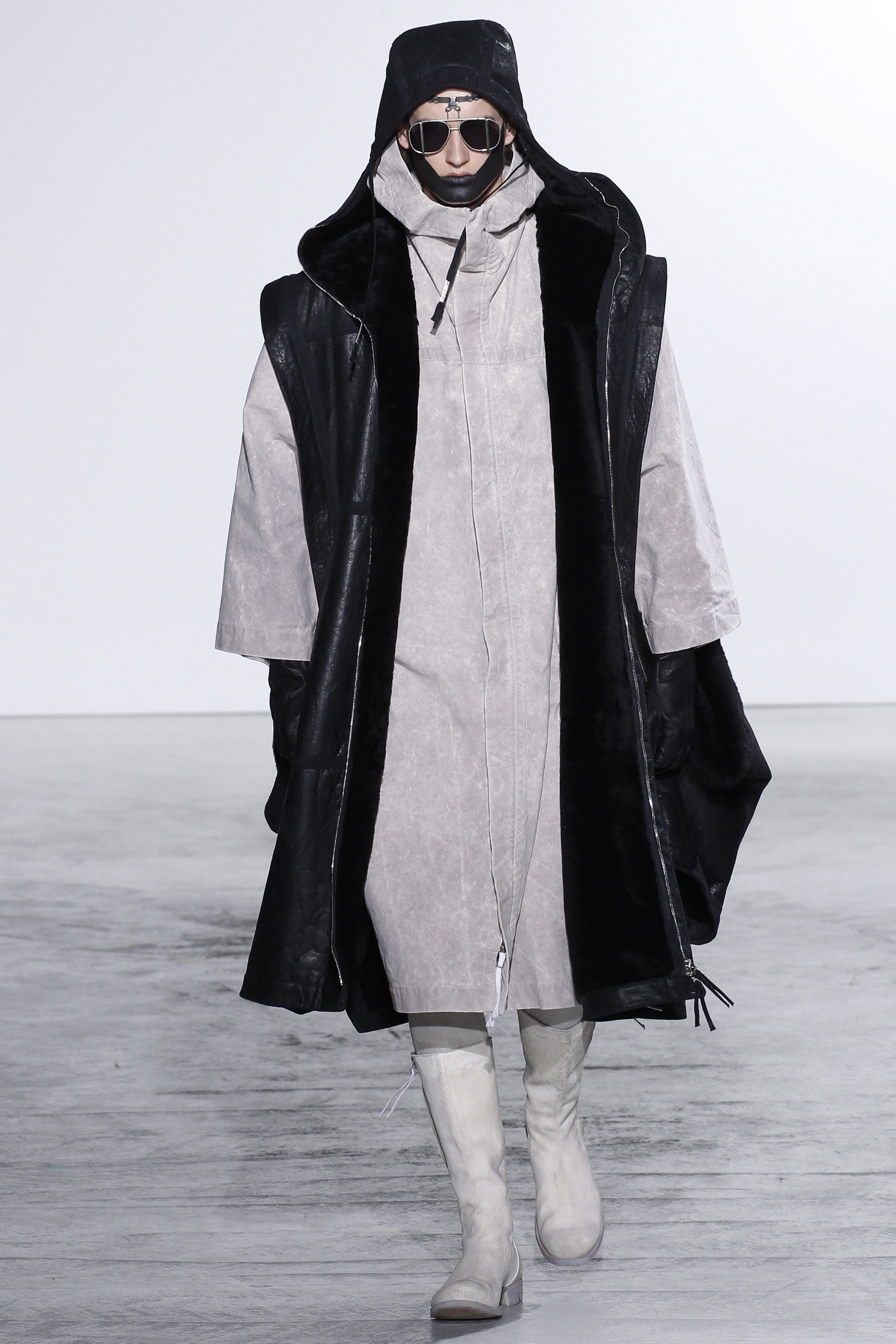 Sleeves zipped partially off the rumpled parkas and beefy shearlings and dangled freely, somewhat deflating the large volumes Boris Bidjan Saberi explored for fall.