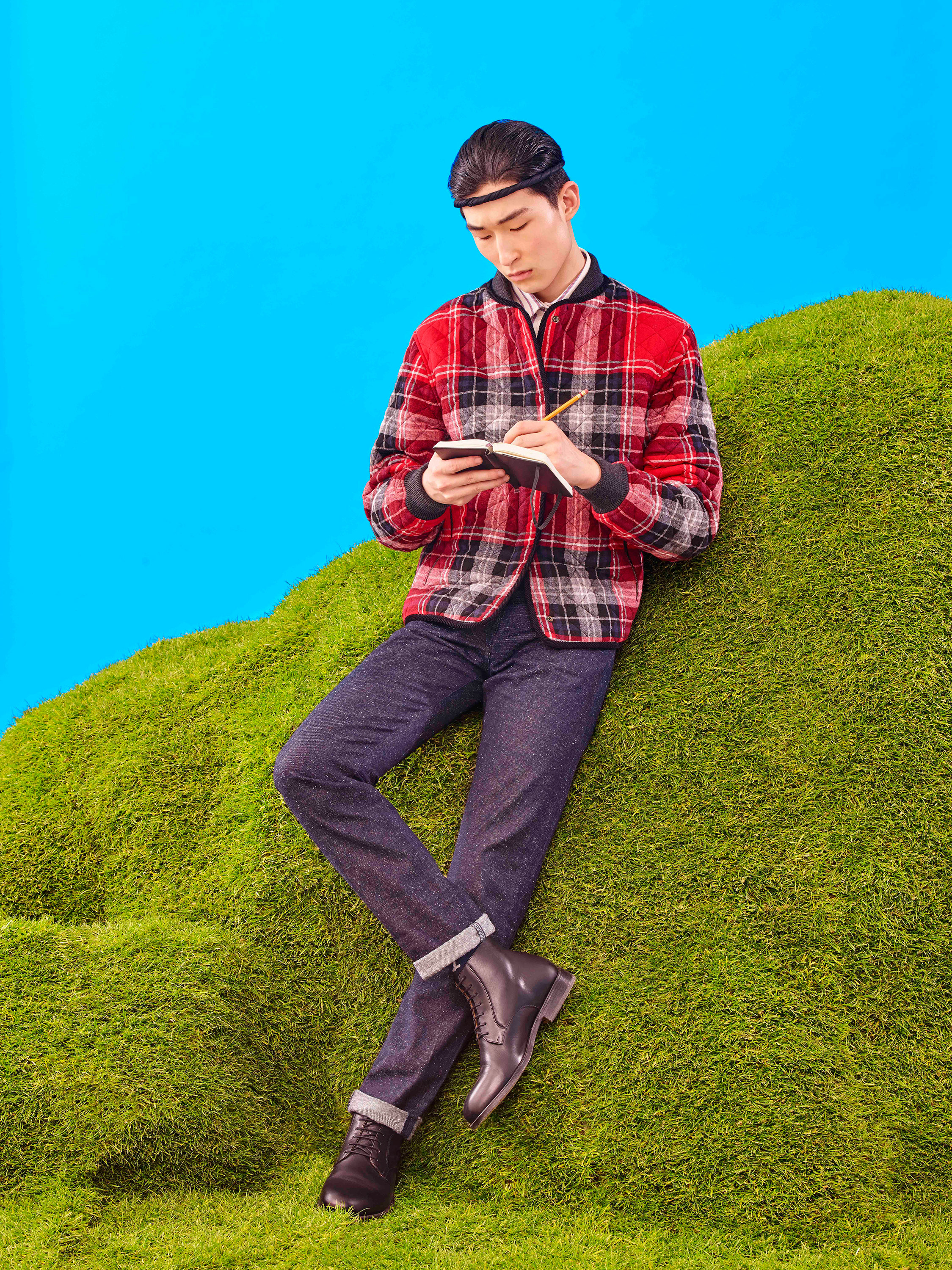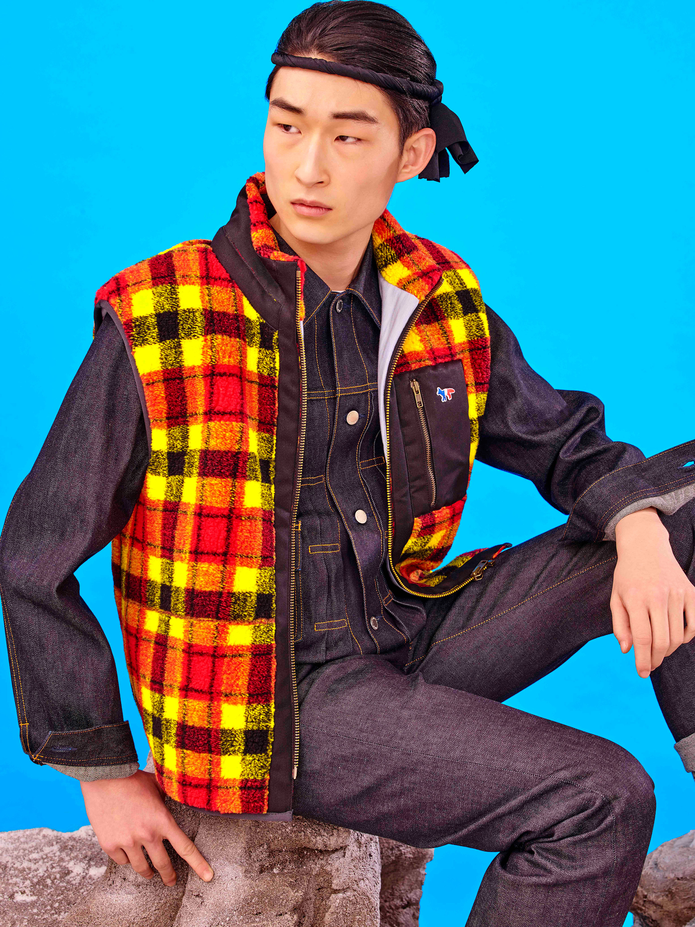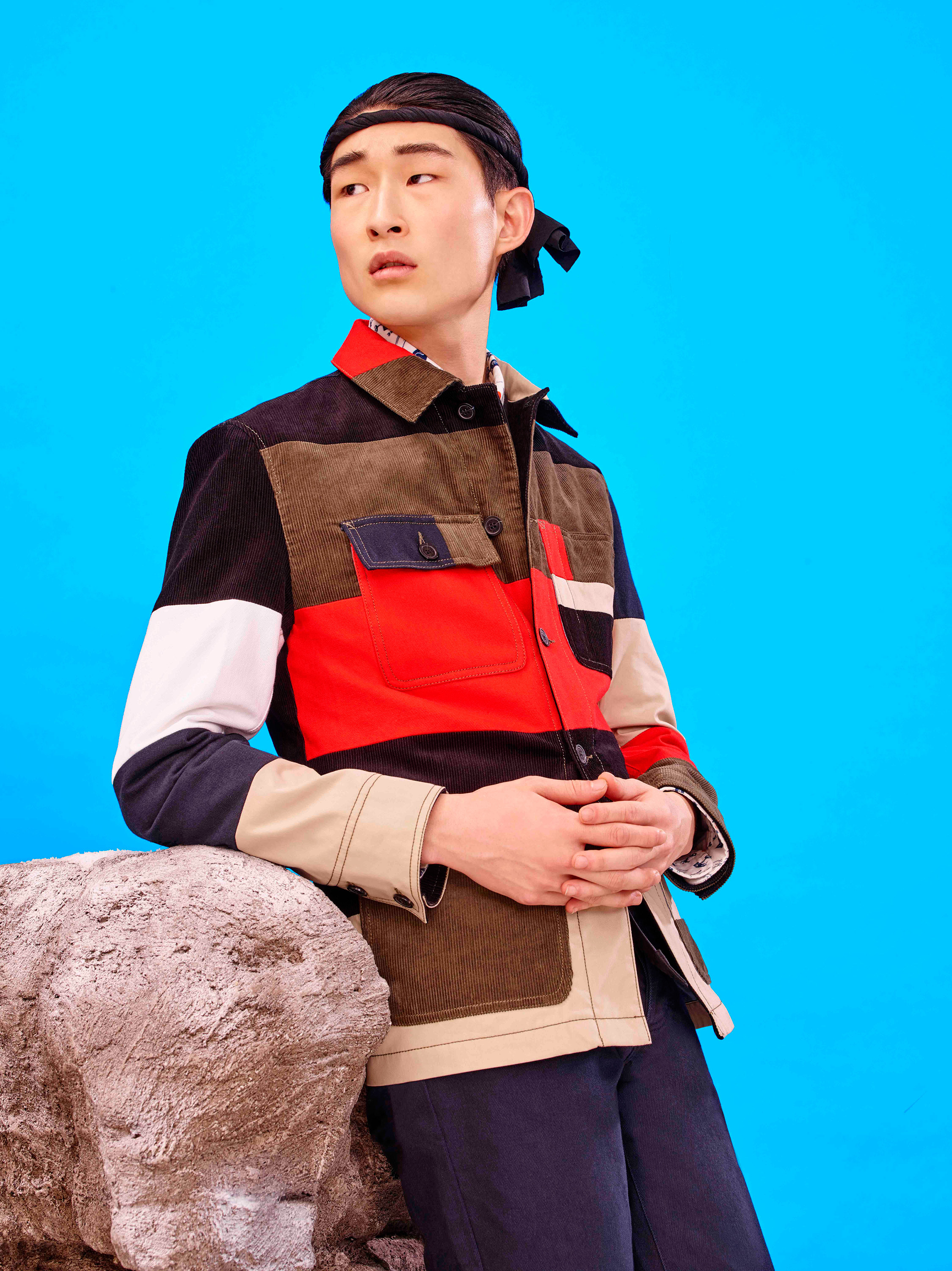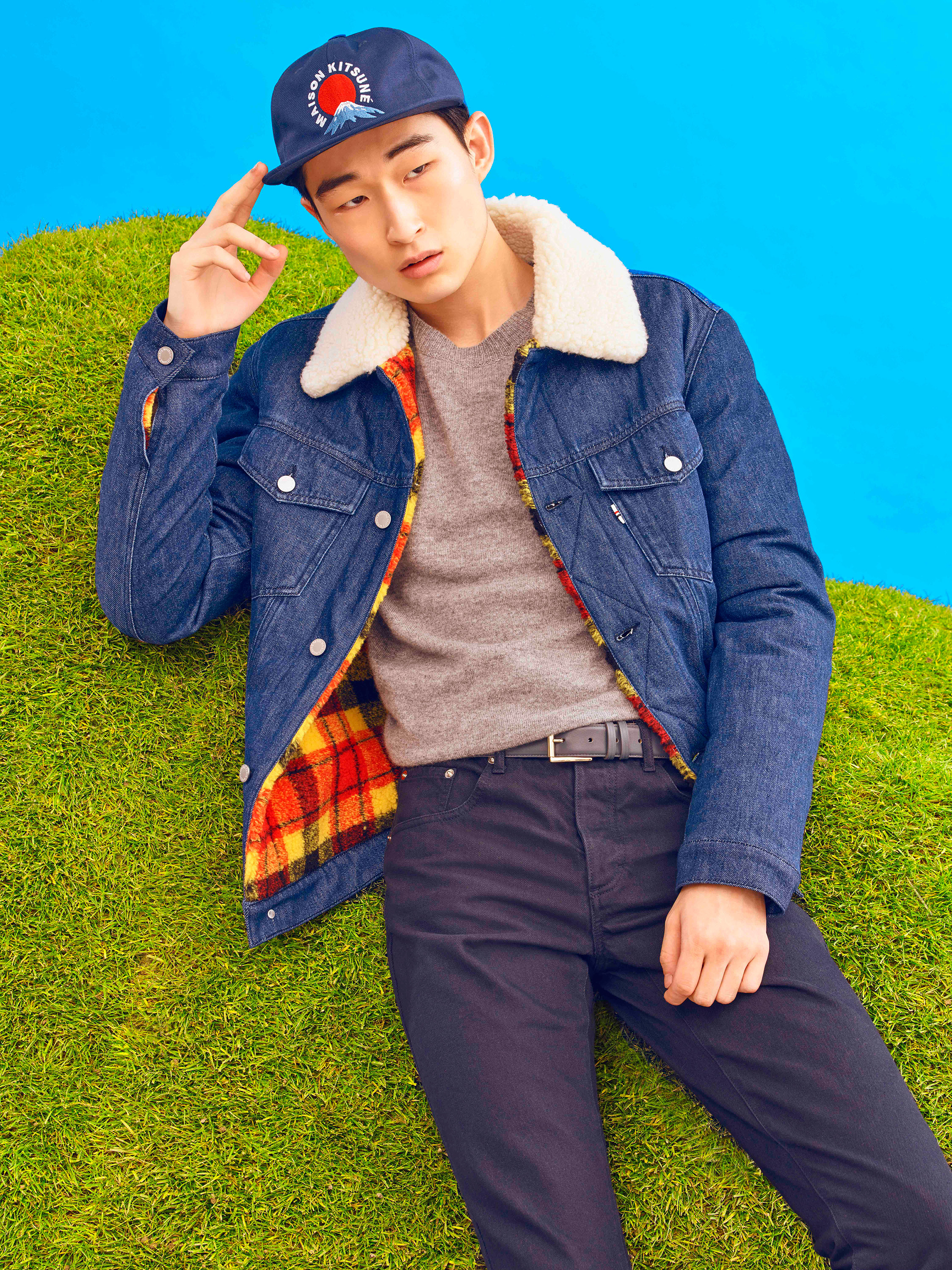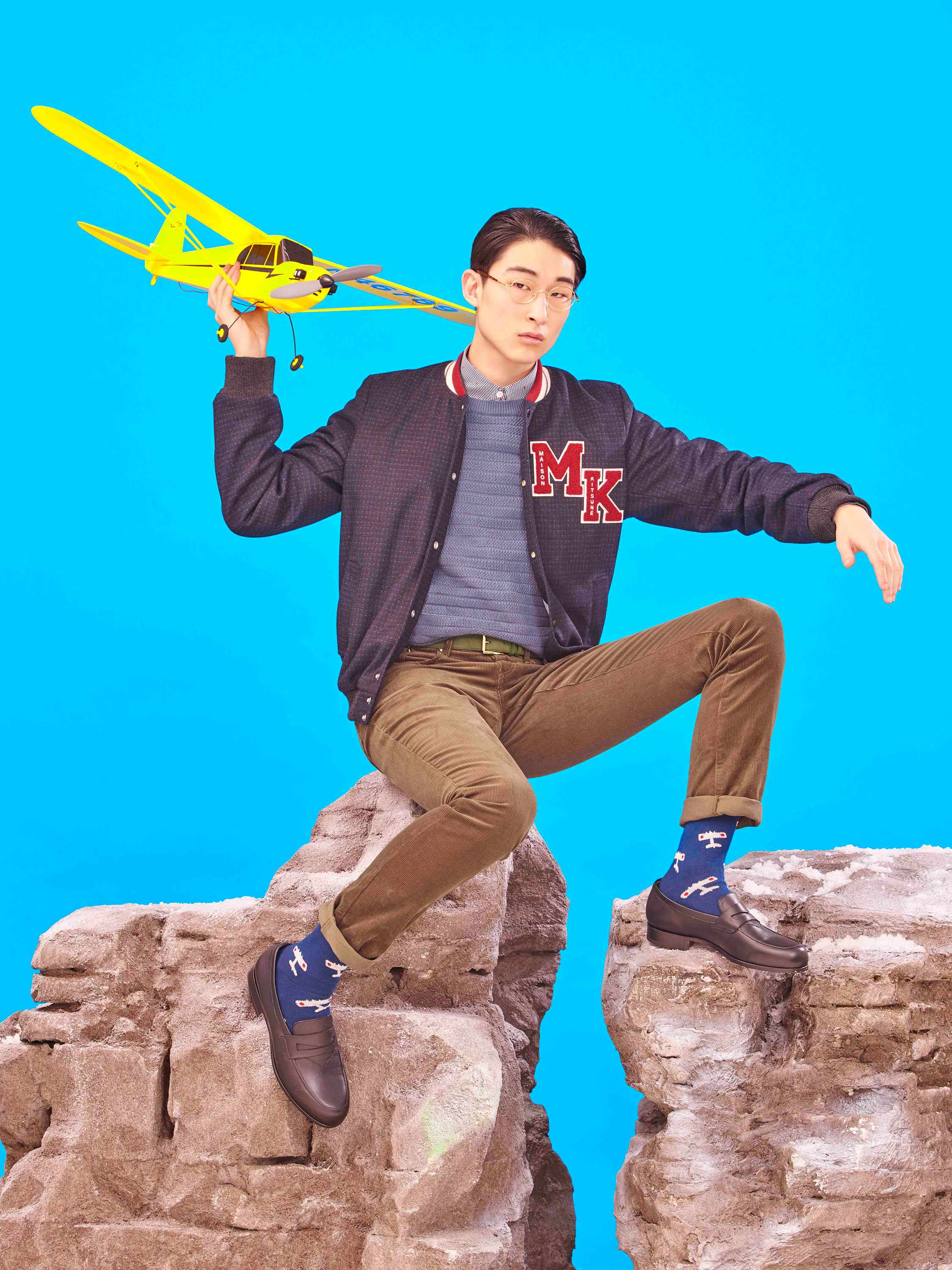 Maison Kitsuné designers Gildas Loaëc and Masaya Kuroki called on Japanimation for their fall 2016 “Love Rises” men’s collection, interpreting it in their own singular, irreverent way. Referencing Hayao Miyazaki’s animated movie “The Wind Rises,” they mixed militaria with kawai, emblazoning World War II fighter planes, images of Mount Fuji and a crimson rising sun across much of the collection via print, jacquard and embroidered motifs. A sky-blue sweater was criss-crossed with plane motifs, a camouflage jacket pierced by the snow-capped mountains. These were juxtaposed with simpler items like a classic marinière with an embroidered logo or a patchwork kimono jacket.