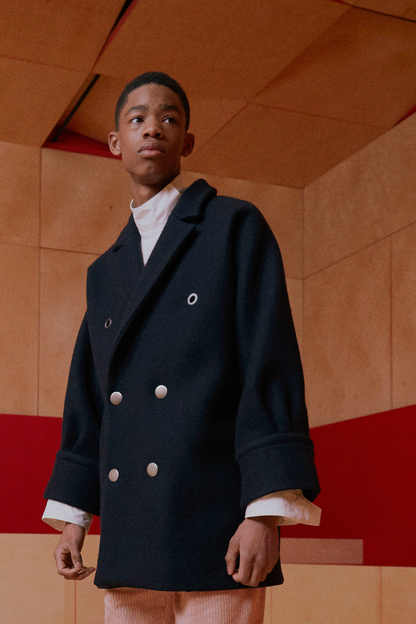 Militaria hackneyed? Not at Acne. After spotting pieces of Swedish army surplus on the streets, Jonny Johansson looked back to the nine months he spent in military service as a youth. “Mostly I was freezing my arse off,” he said, “sleeping under snow in the forest.” While serving his country, Johansson was issued a uniform that dated from the 1940s. To this baseline influence was mixed pink, lavender, a graphic ribbon squiggle, and some decorative eyelet detailing that were all drawn from Västerbottensdräkten, the folk costume particular to the canton of Swedish Lapland in which the designer spent a decade of his childhood.