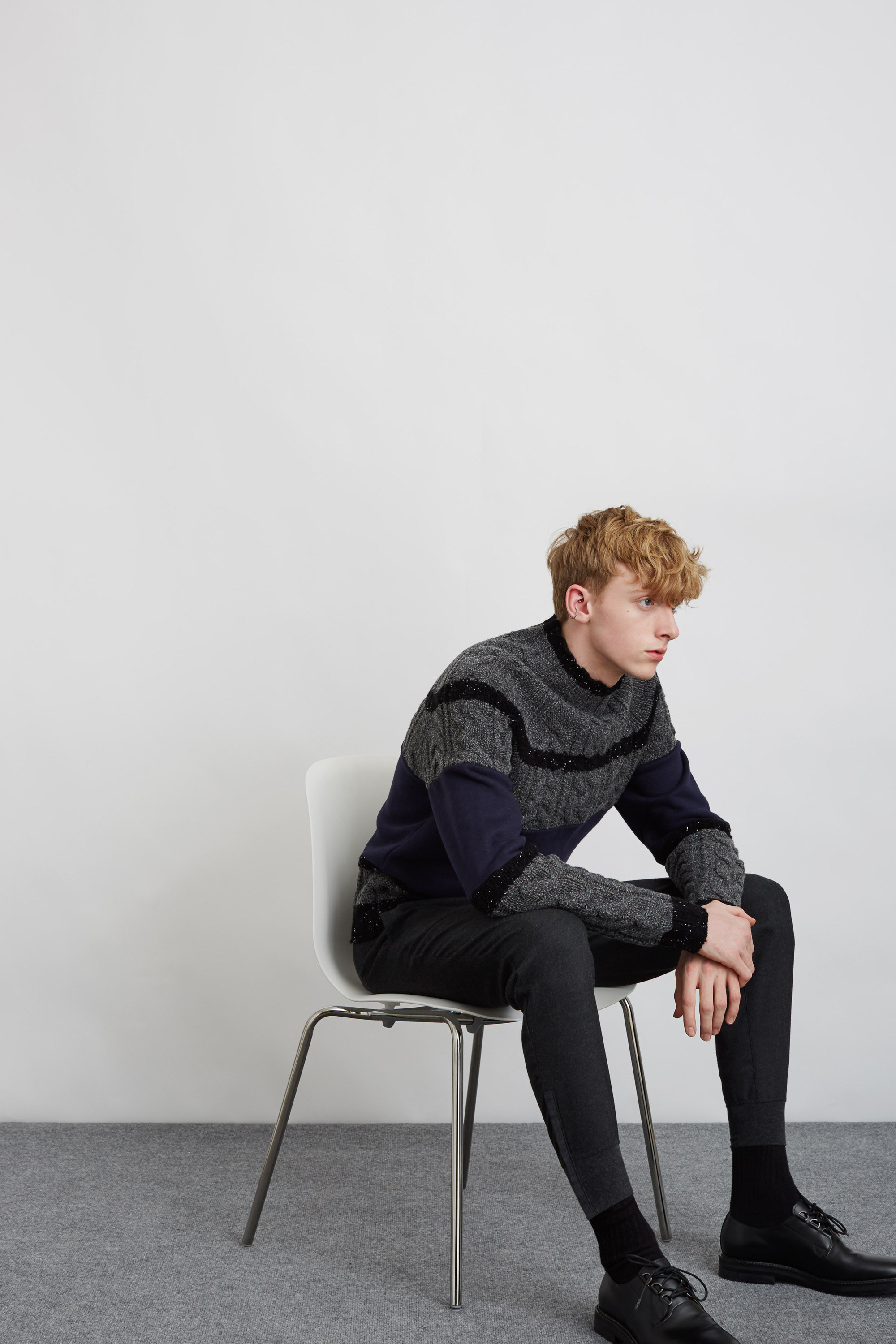 Daniel Aleksić black and white fashion portrait by Ferran Casanova in Barcelona studio