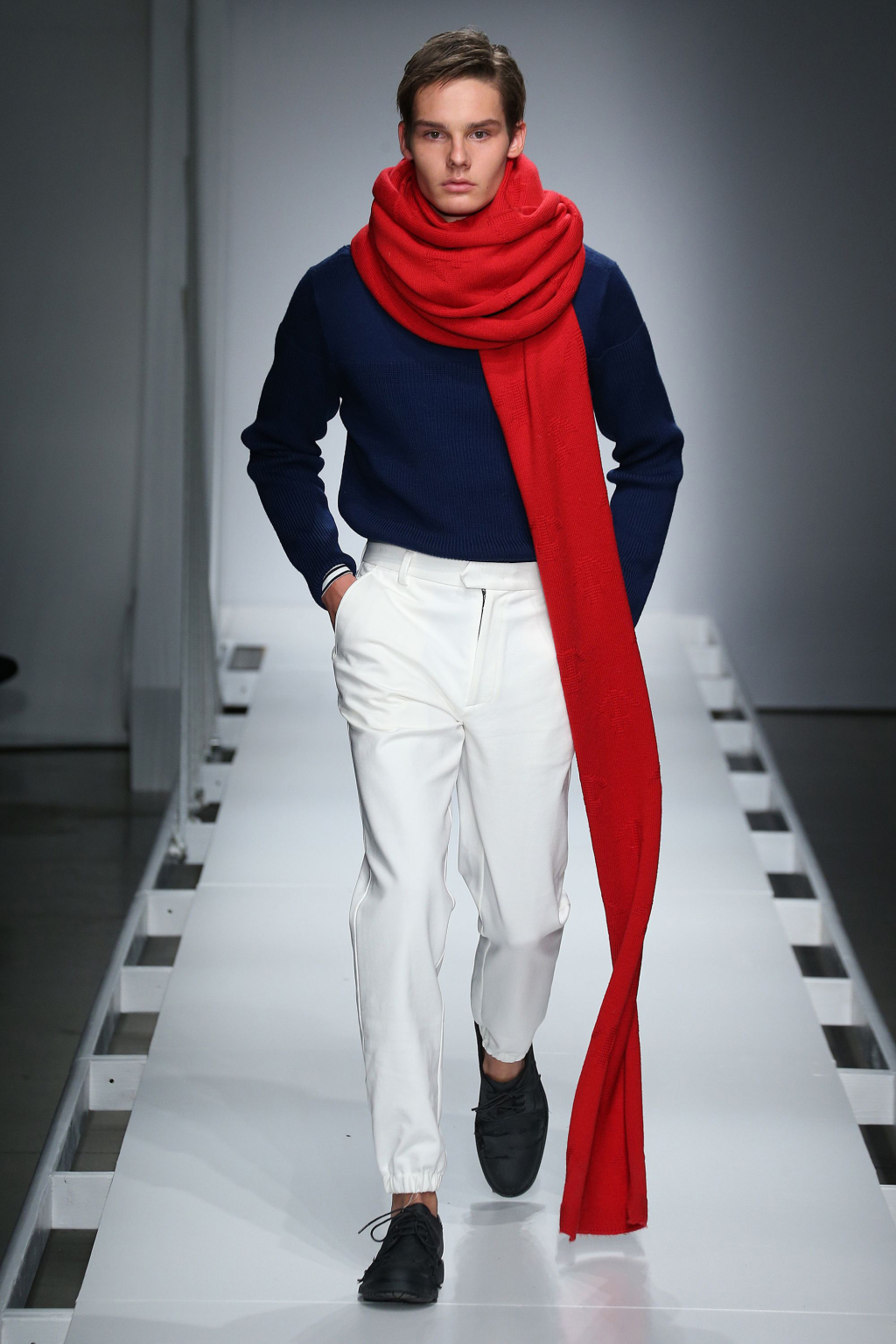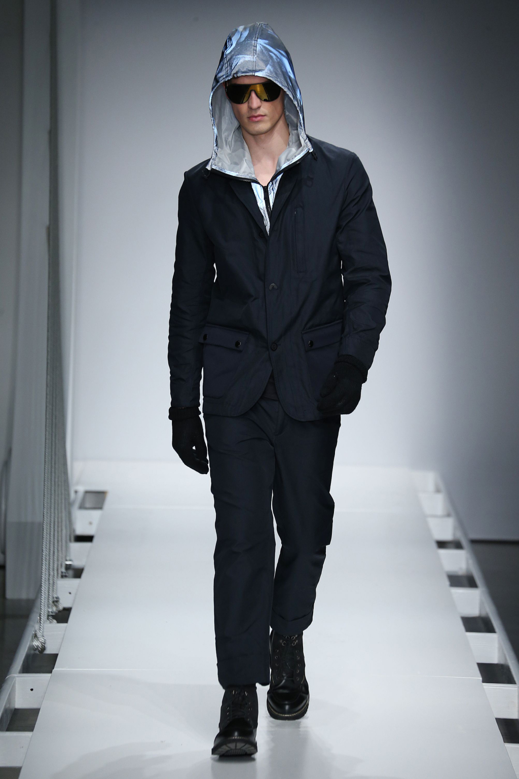 Athletic references were scattered throughout, with gabardine pants with elastic waists, joggers in stretch gabardine and a storm proof cotton blazer with a reflective stripe on the back.