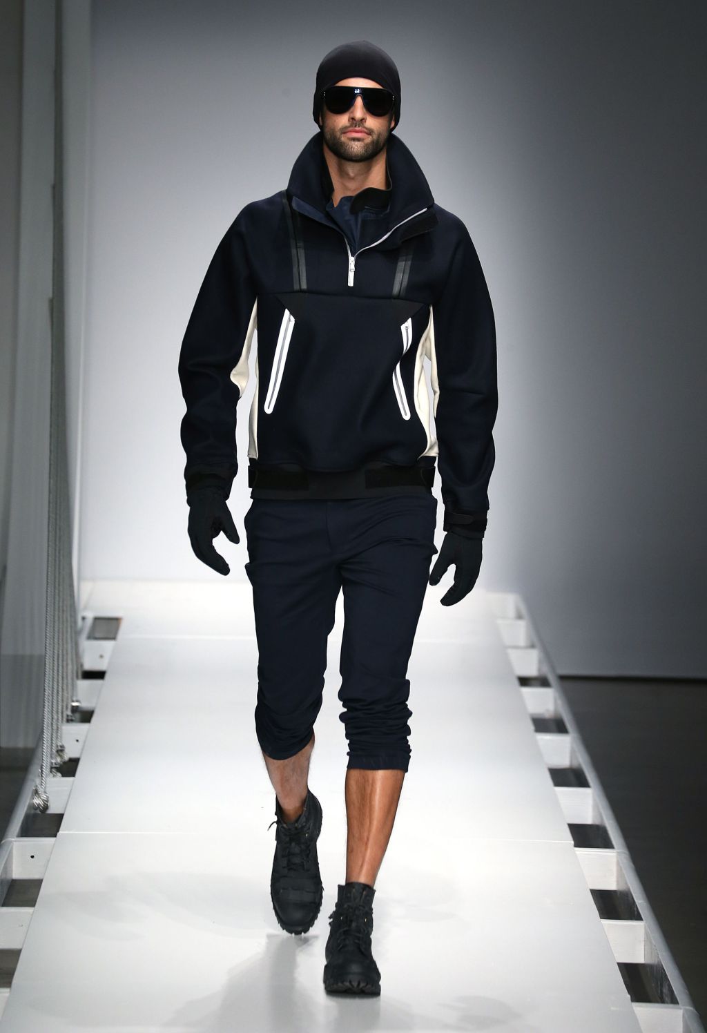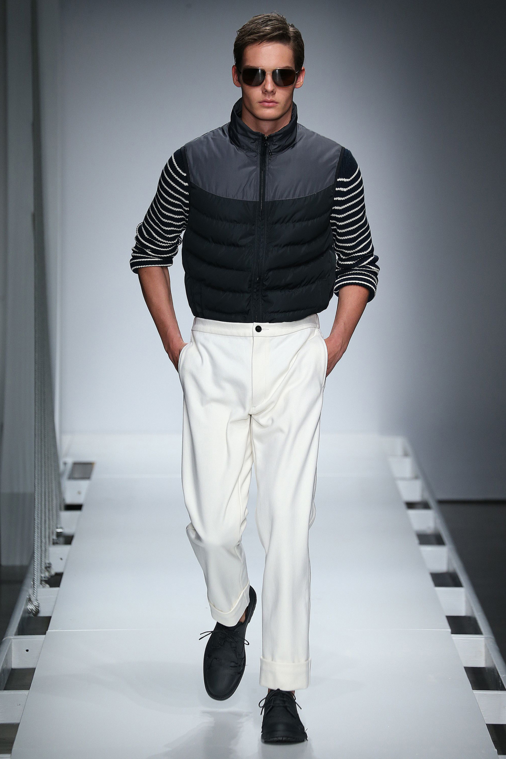 Athletic references were scattered throughout, with gabardine pants with elastic waists, joggers in stretch gabardine and a storm proof cotton blazer with a reflective stripe on the back.