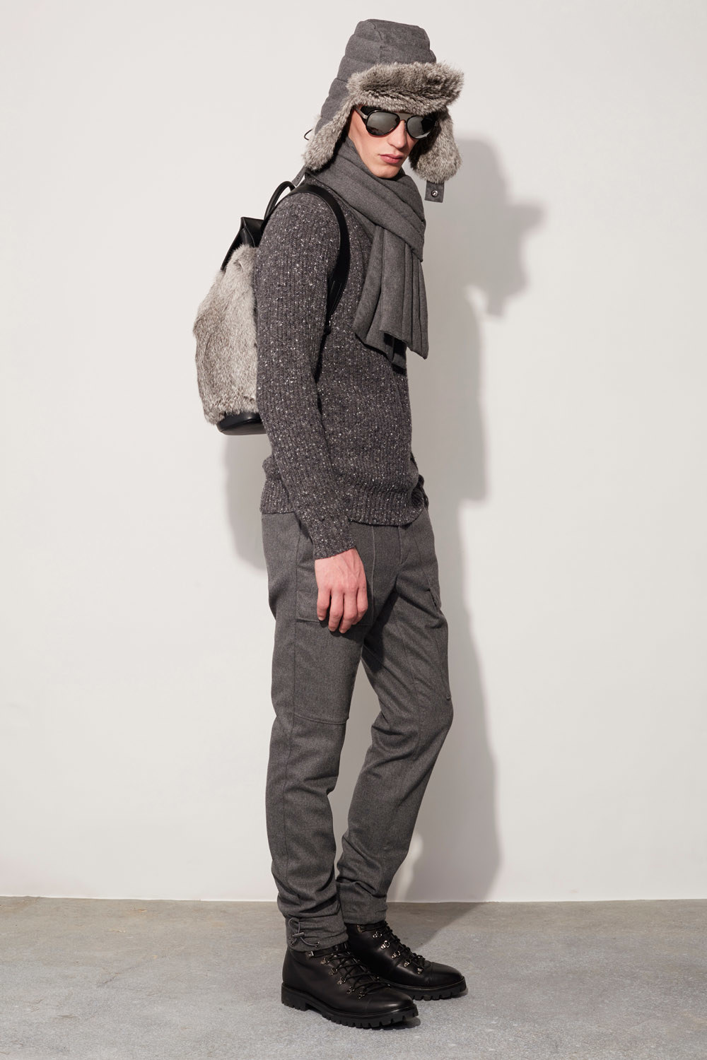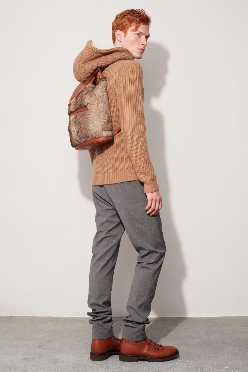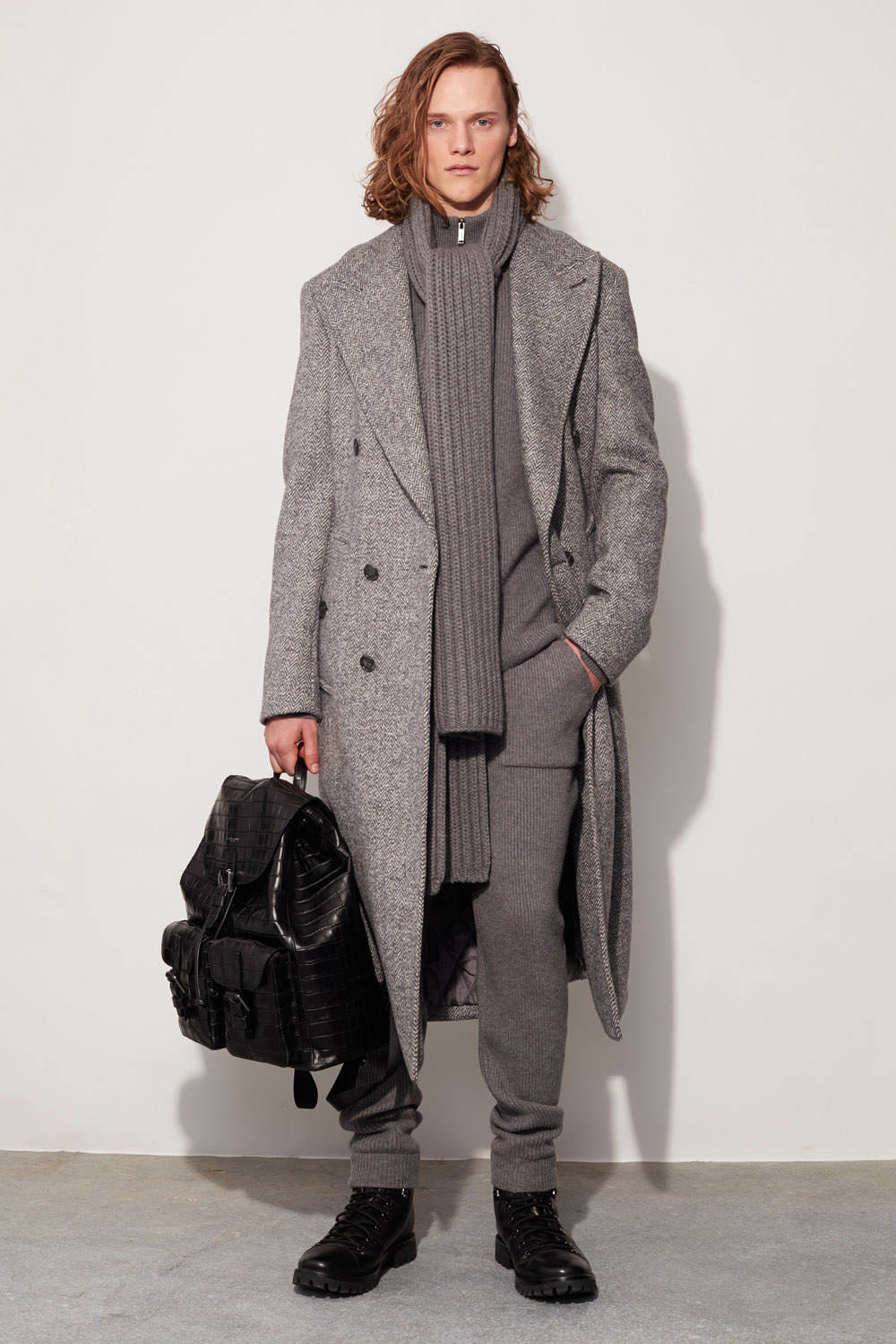 Ribbed cashmere sweatpants proved a welcome counterpoint to all that stretch wool. Here’s hoping that Kors considers including some in his women’s show two weeks from now.