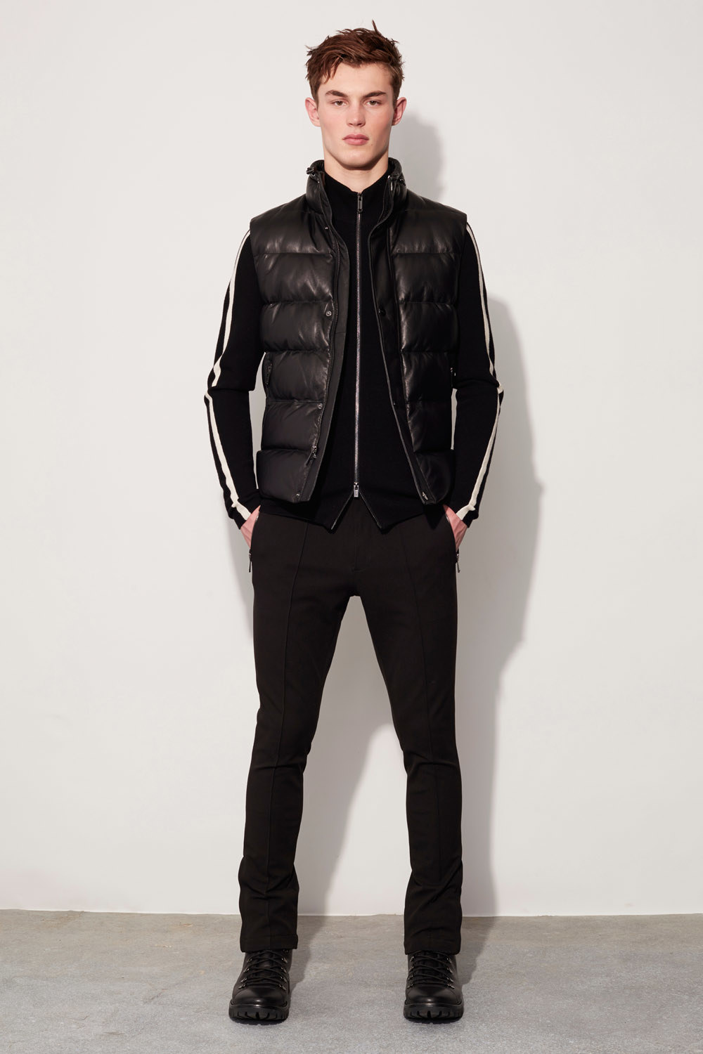 The overall vibe of the week has been fairly utilitarian so far, in contrast to the dandified look of so many European runways. Cast your eye over the shows here and you see a lot of black and even more gray. That held true for Kors, but where streetwear has dominated other collections, Kors gave his athletic silhouettes more of an Alpine spin. We thought we’d seen every riff on the puffer jacket known to woman or man, but the designer’s puffer pants looked like a genuine first to us. Otherwise, his ski pants were snug and body-conscious—the macho man’s answer to ladies’ athleisure leggings.