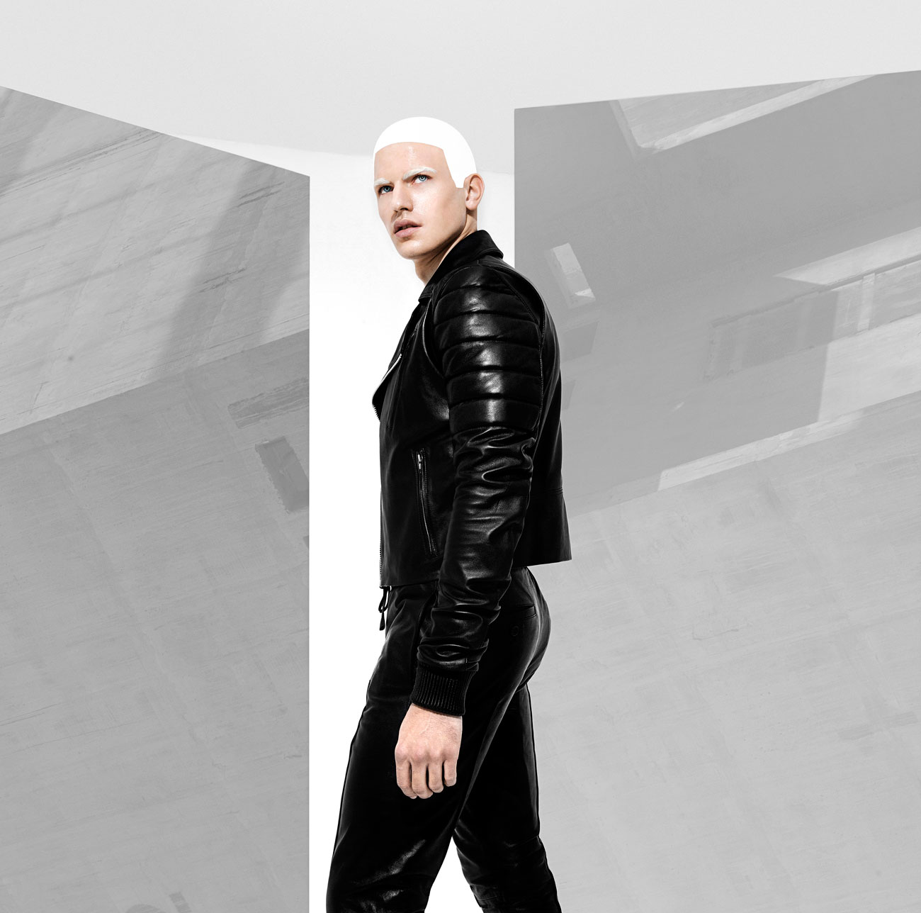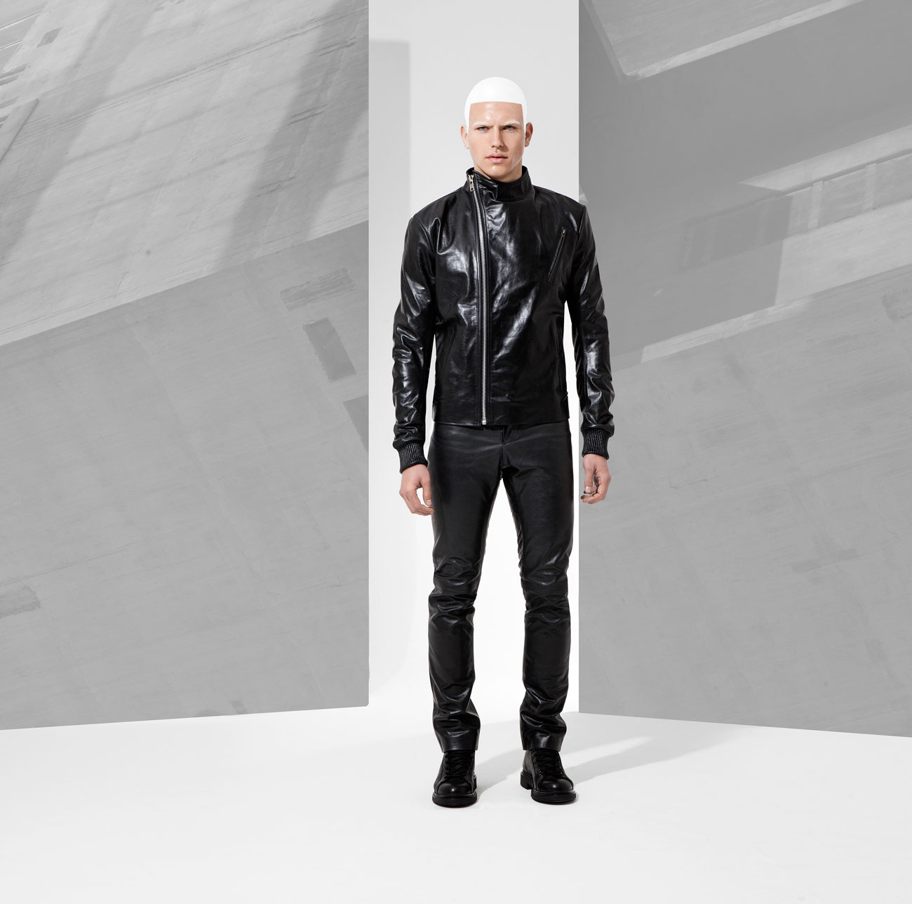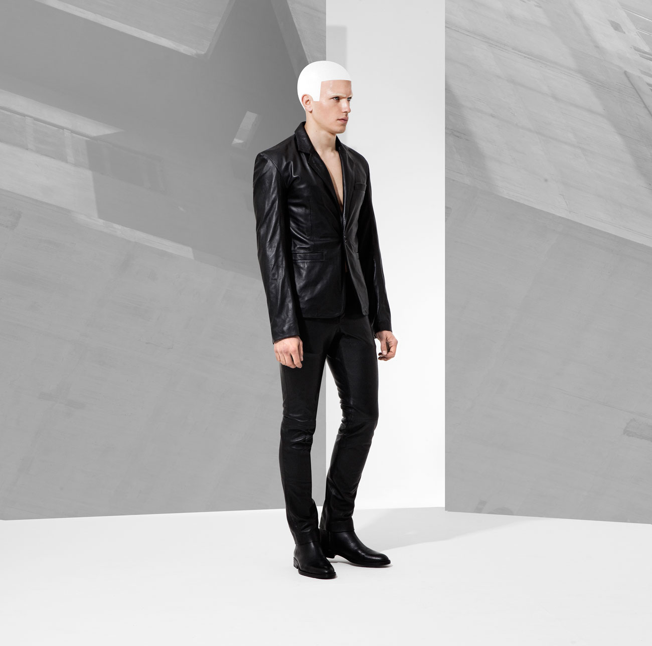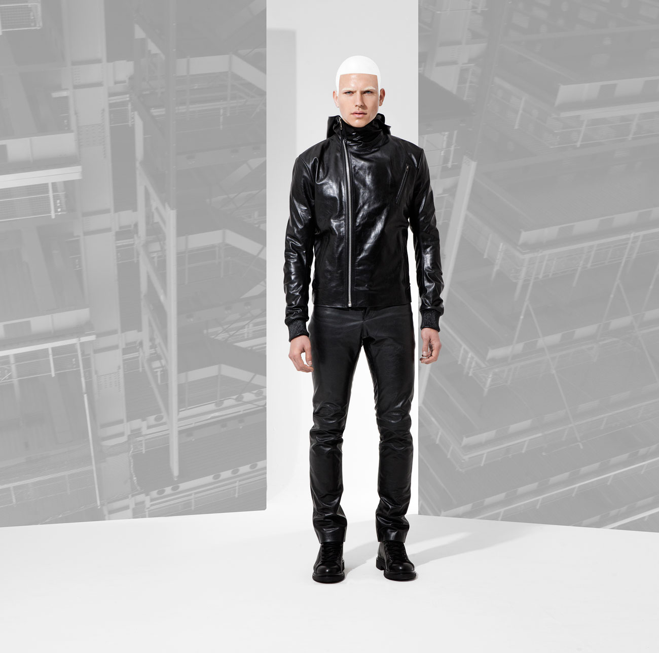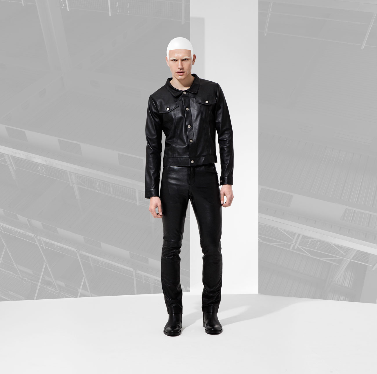 Fall/Winter 2016 menswear collection from British designer Domingo Rodriguez. He quoted “Our AW16 collection has a slight nod to Star wars, storm troopers and Han Solo. It’s regimented, more robust, a tougher play in our own custom tanned leathers in matt and shine glazed and buttersoft finishes. The feeling of protection in textures through padding, removable sheep skin collars and a stronger shoulder. Theres a luxe sensuality being toying with, in leather on leather tough looks.”