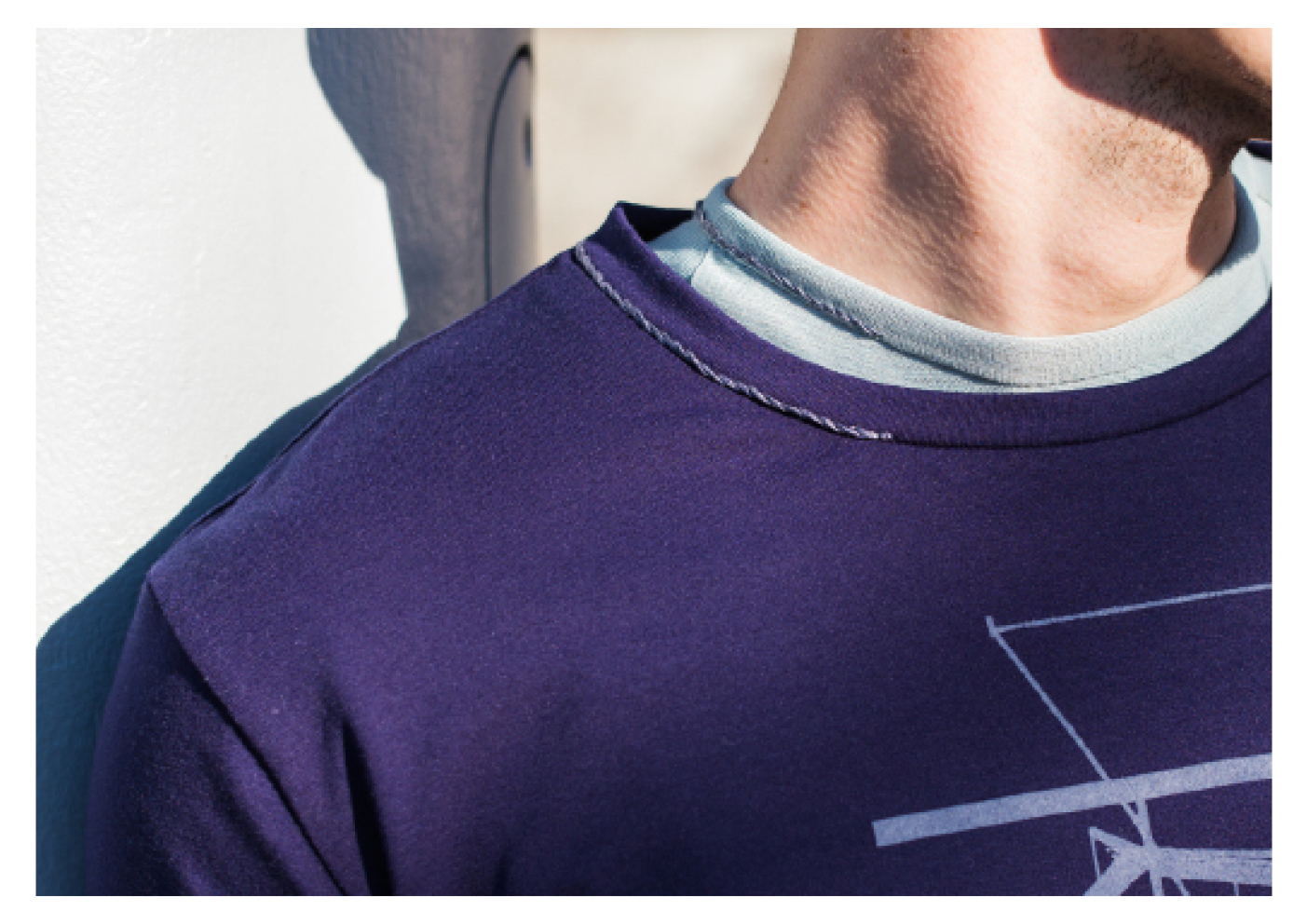 Each one of the collection’s t-shirts is signed with a hand made embroidery stitch found
