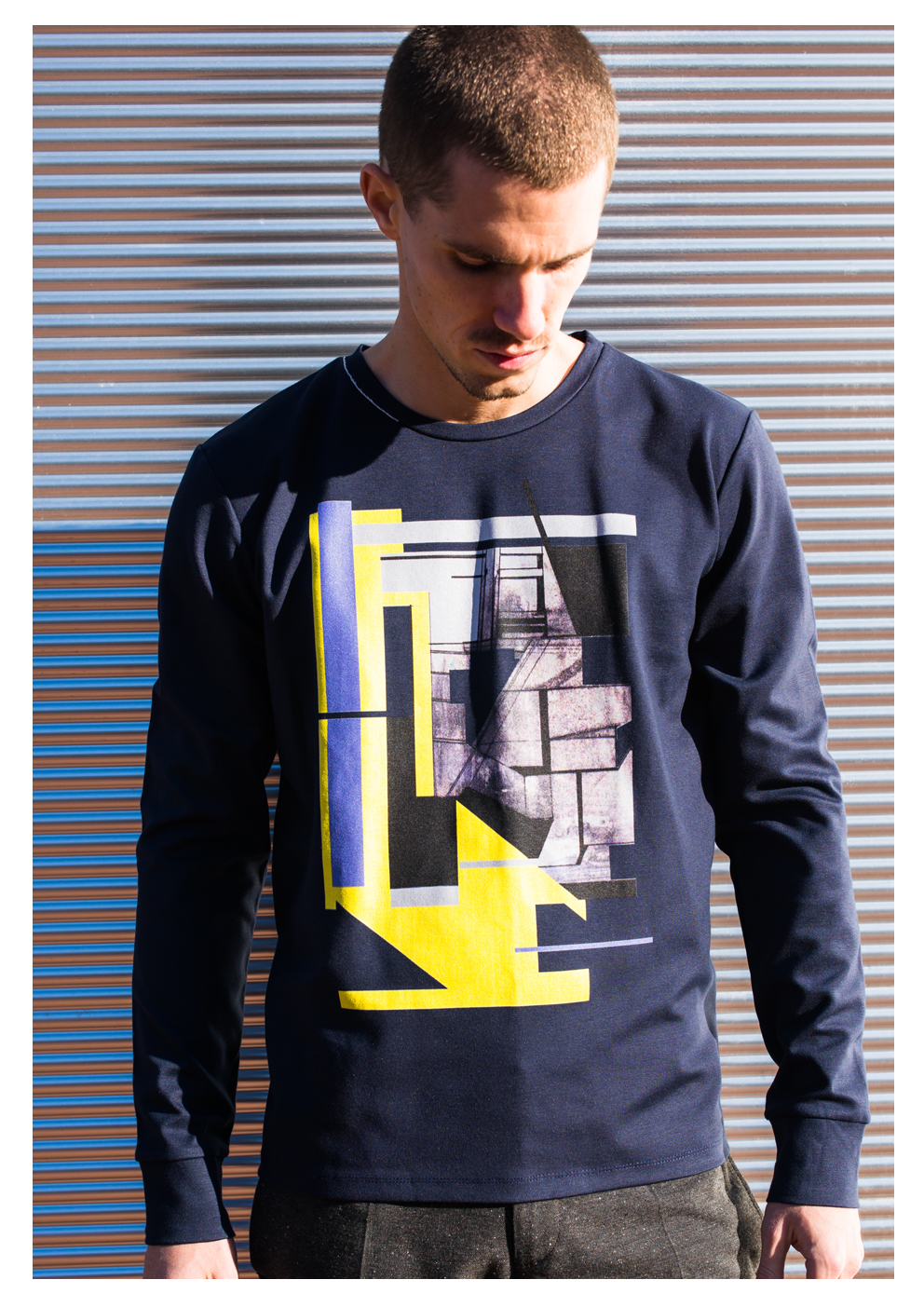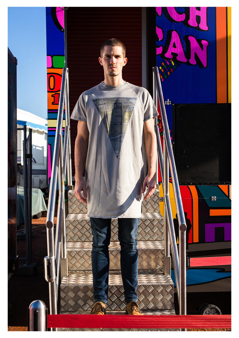 The Spring Summer 16 collection named ColoursOut include premium printed t-shirts made from high quality natural fabrics, in shades of white, grey, blue, black & light green. The print illustrations made were made by Eliran, and each one of them express the tribal influences and the concept of construction in everyday fashion. Charged with multiple urban angles such as grid lines, construction sites, order and chaos, cranes and building skeletons, these prints celebrate the multi cultural mix we live in.