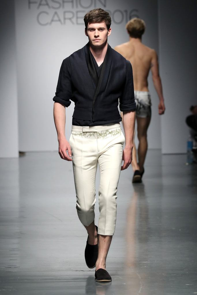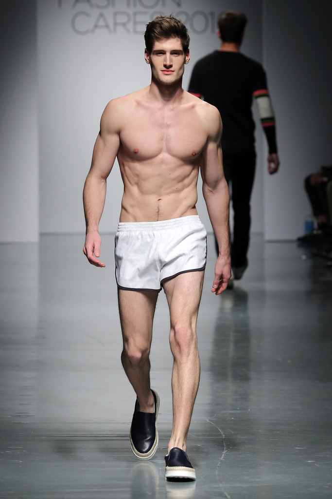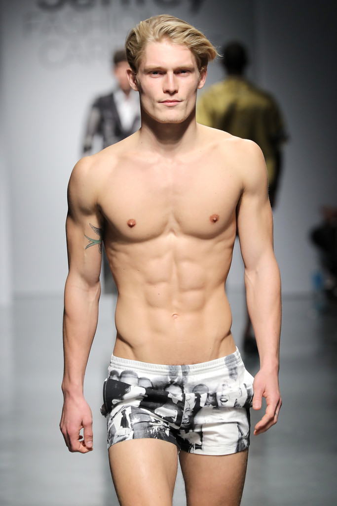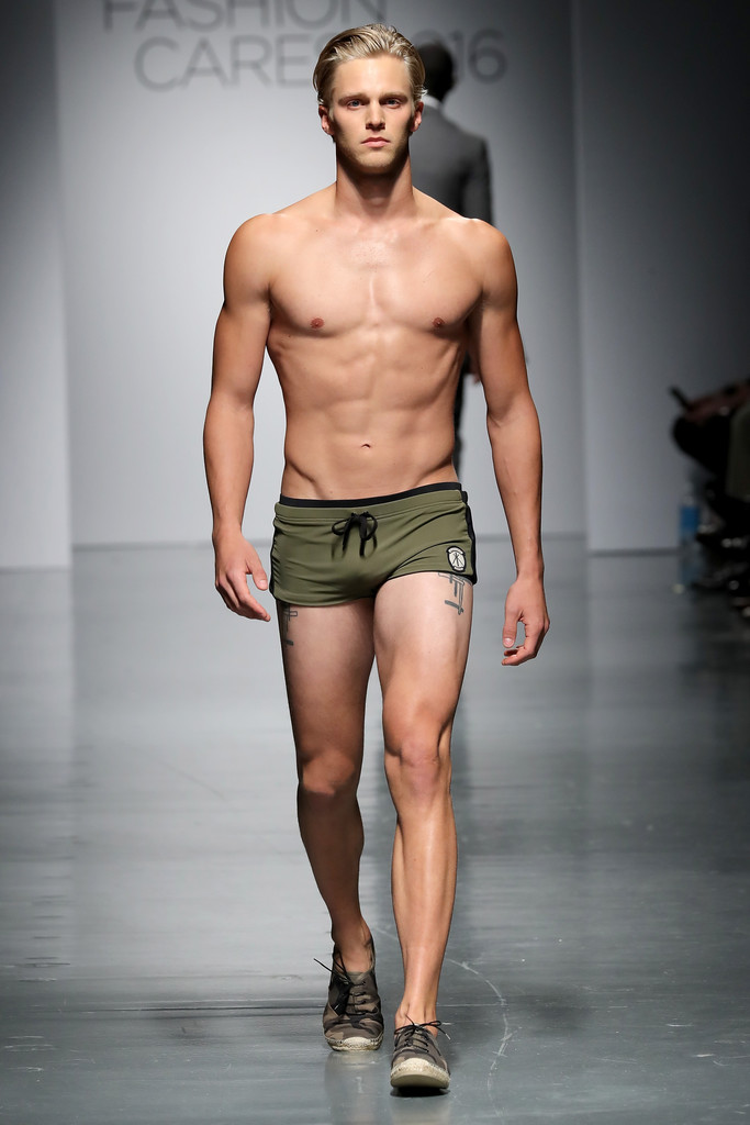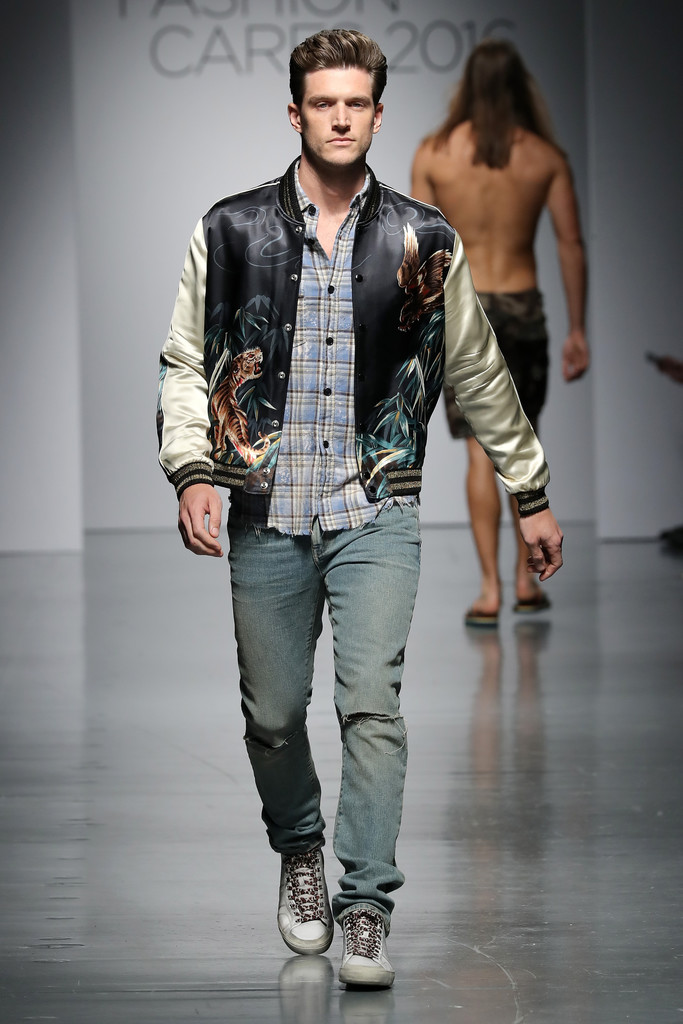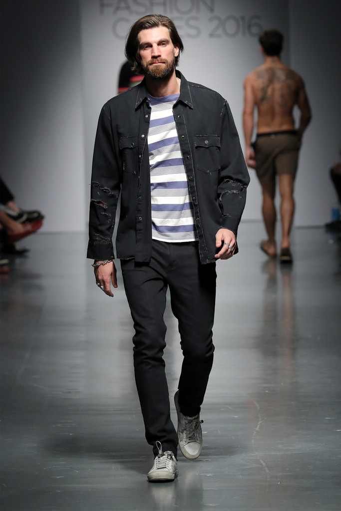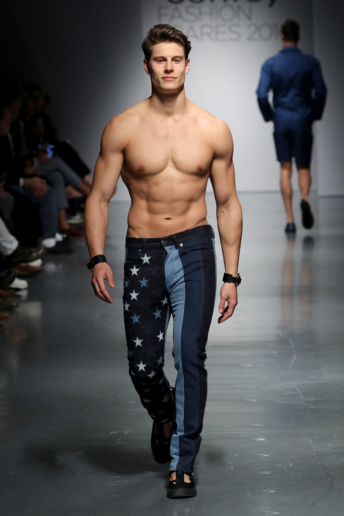 Models like Chad White, River Viiperi, Francisco Lachowski, Harry Goodwins, Jarrod Scott, Bertold Zahoran, Roberto Sipos, Armando Cabral, Henrik Fallenius, Eian Scully, Janis Ancens, Parker Gregory, among others walks the runway at the Jeffrey Fashion Cares 13th Annual Fashion Fundraiser at the Intrepid Sea-Air-Space Museum on April 4, 2016 in New York City.