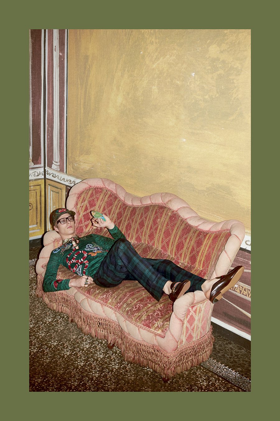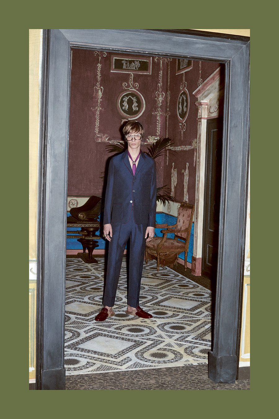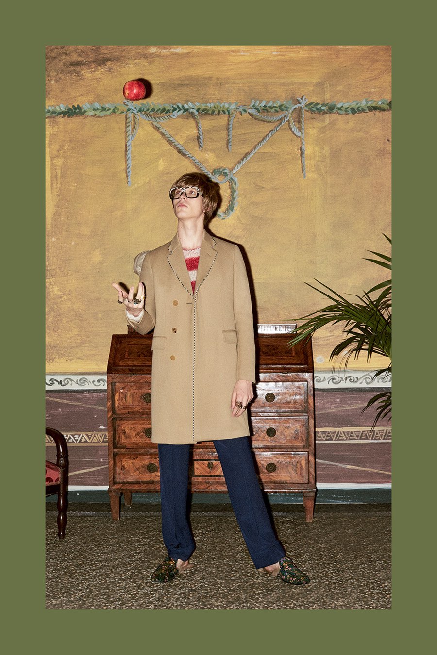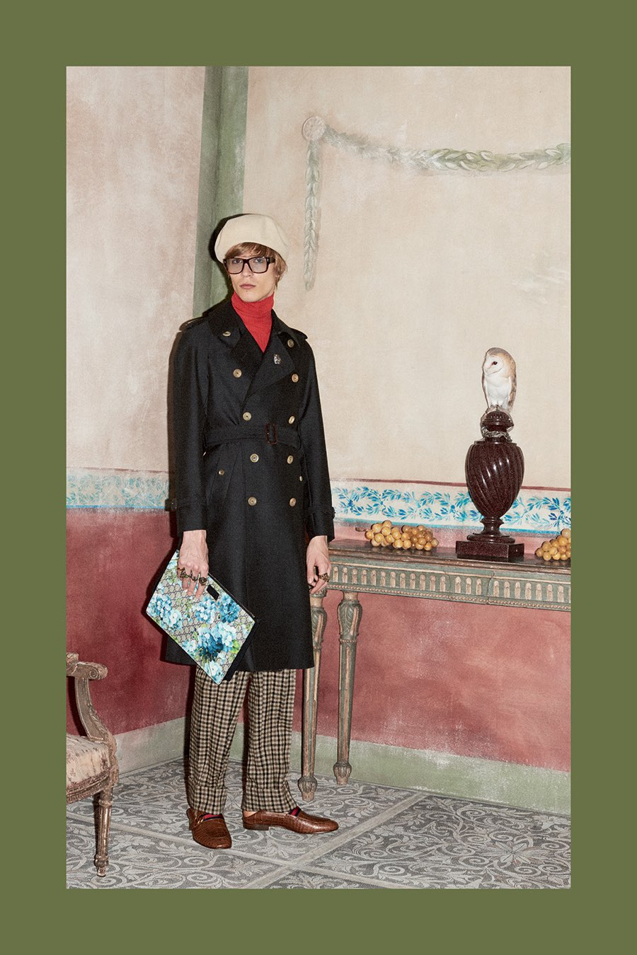 From the #GucciPreFall16 men’s collection by #AlessandroMichele, a sweatshirt with snake appliqué, accented by floral embroideries. Starring by Sven de Vries. Some itmes and garments are crafted in leather and printed with a tropical plant and bird motif. Photo by #AriMarcopoulos.