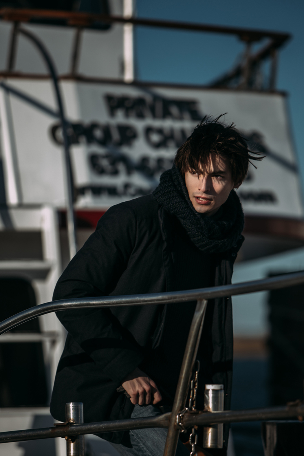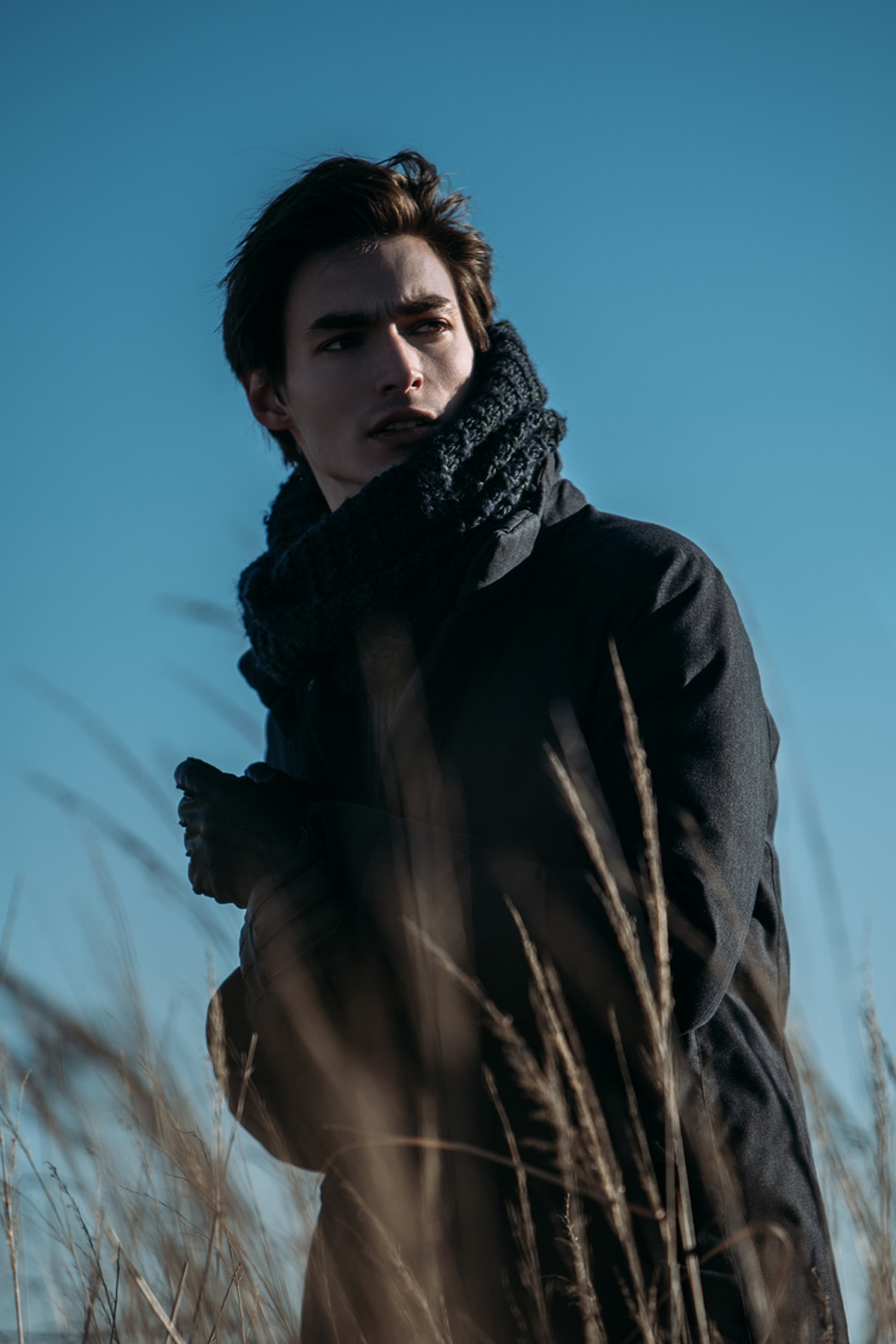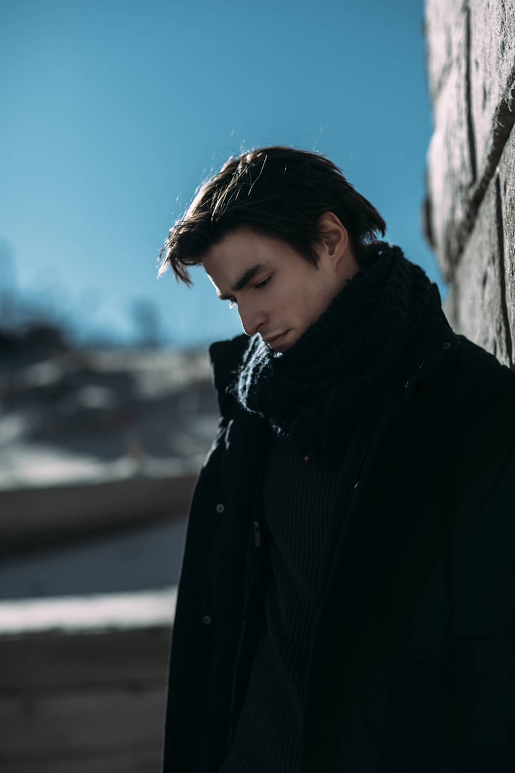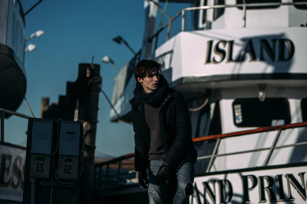 Editorial by New York-based photographer Rafal Ostrowski featuring Wojtek Czerski, shot on a bright and sunny but very cold and blustery day.
