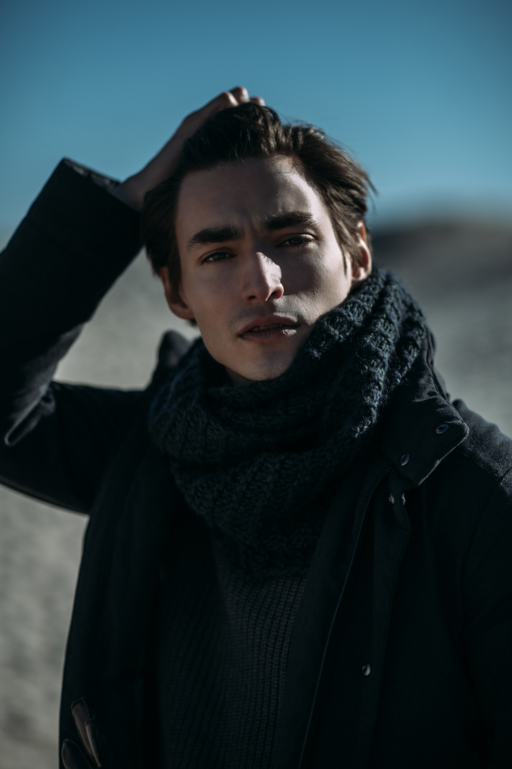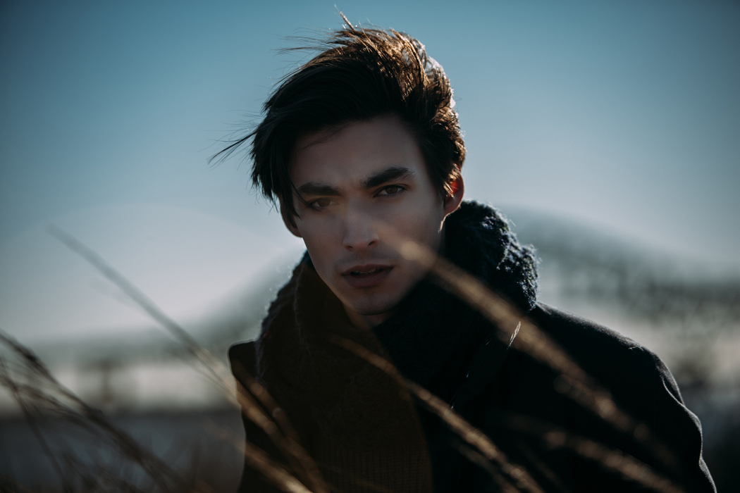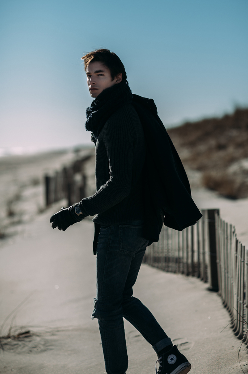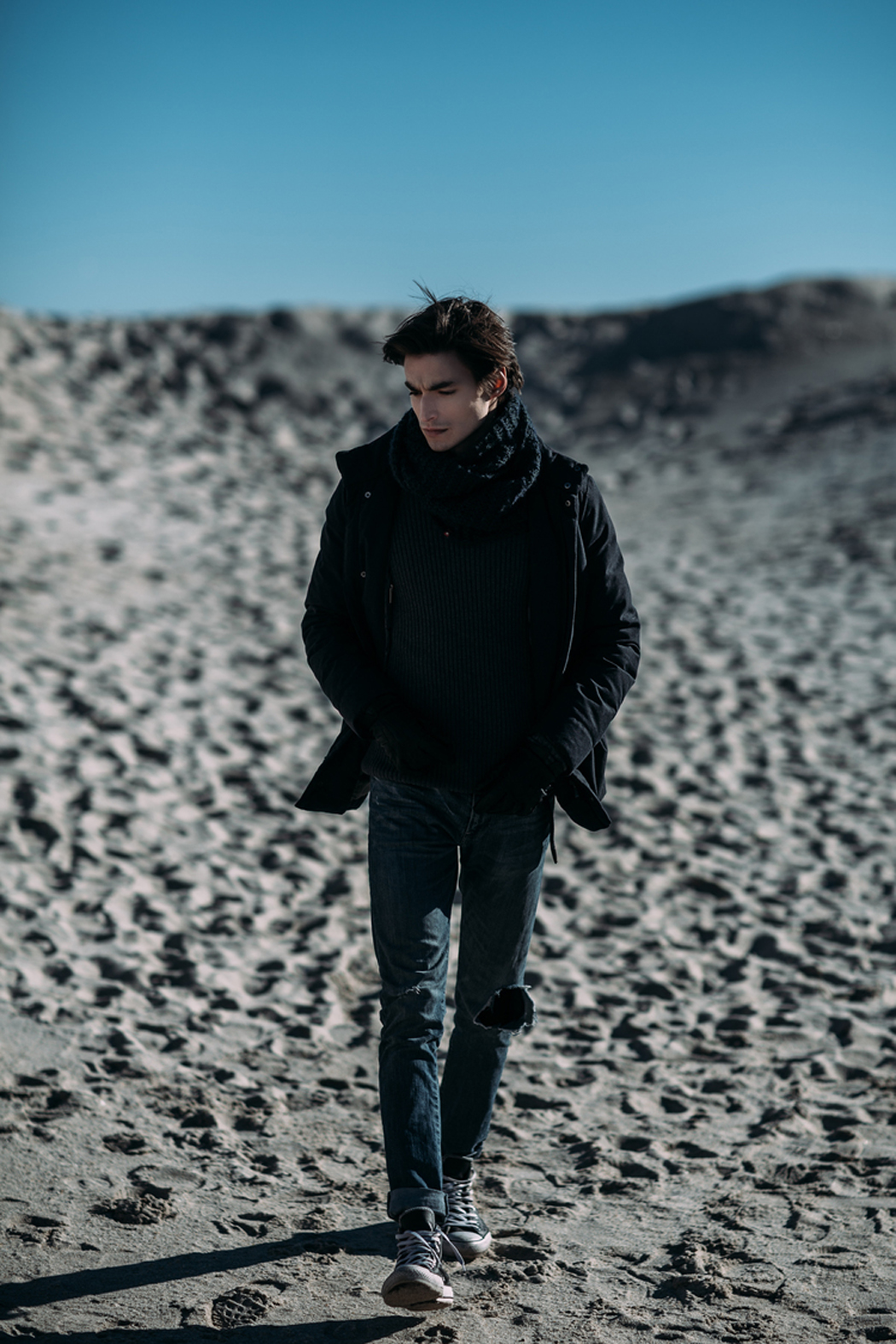 Editorial by New York-based photographer Rafal Ostrowski featuring Wojtek Czerski, shot on a bright and sunny but very cold and blustery day.