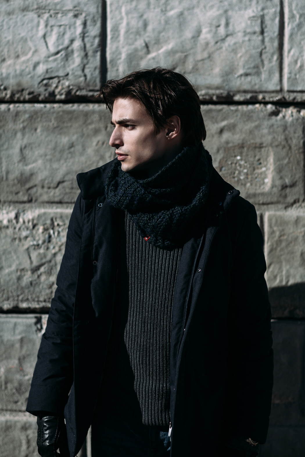 Editorial by New York-based photographer Rafal Ostrowski featuring Wojtek Czerski, shot on a bright and sunny but very cold and blustery day.