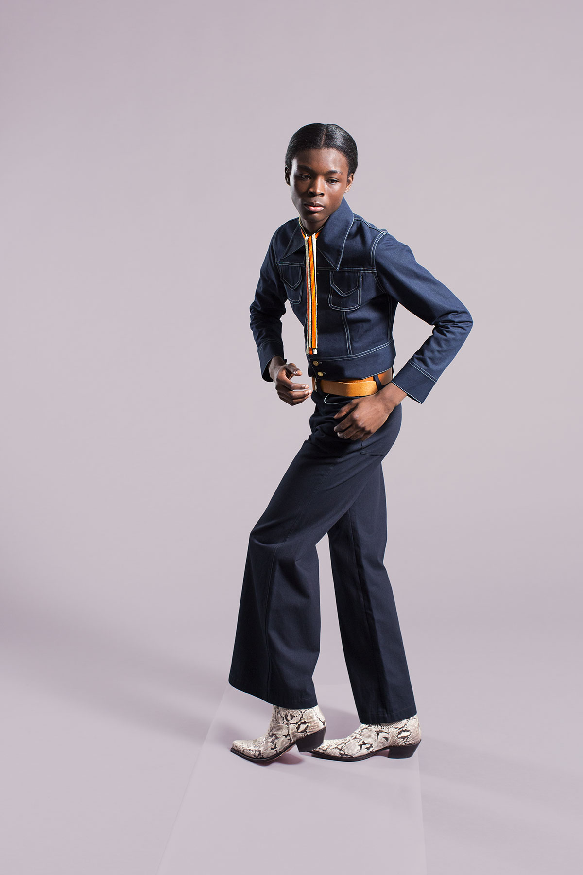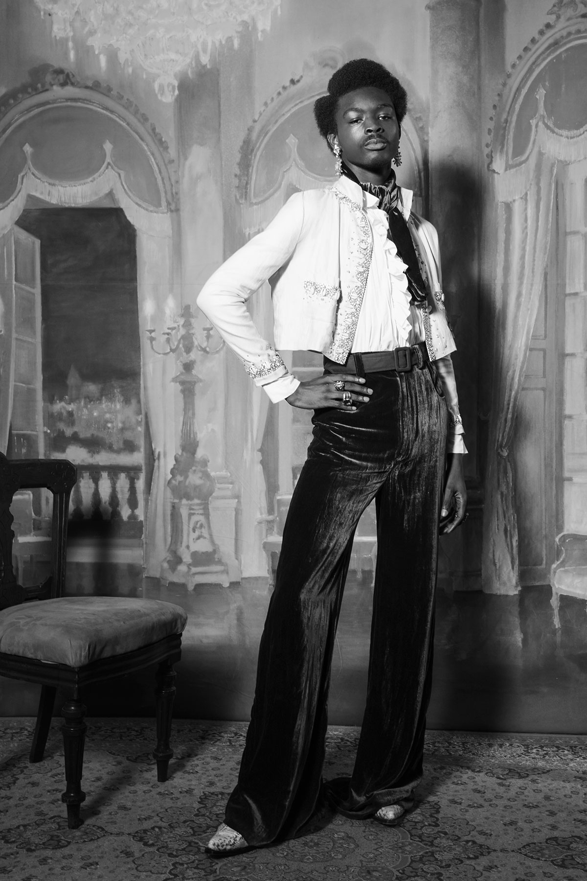 Here, Wales Bonner art directs a video portrait of King Owusu, her model and muse, embodying the spirit of her Spring/Summer 2016 “Malik” collection. Inspired by the story of Malik Ambar, a 16th-century Ethiopian slave who became a military ruler in western India, the collection’s mix of retro tailored denim, white linens and silks, and embellished velvets speaks to a history of cultural exchange between Africa and India. It is the latest chapter in Wales Bonner’s mission to show multifaceted visions of masculinity and blackness in contemporary London and beyond. Owusu is the connector whose regal presence bridges past and present, inspiration and reality. It is a testament to the power of attitude.