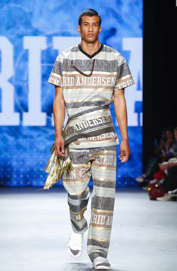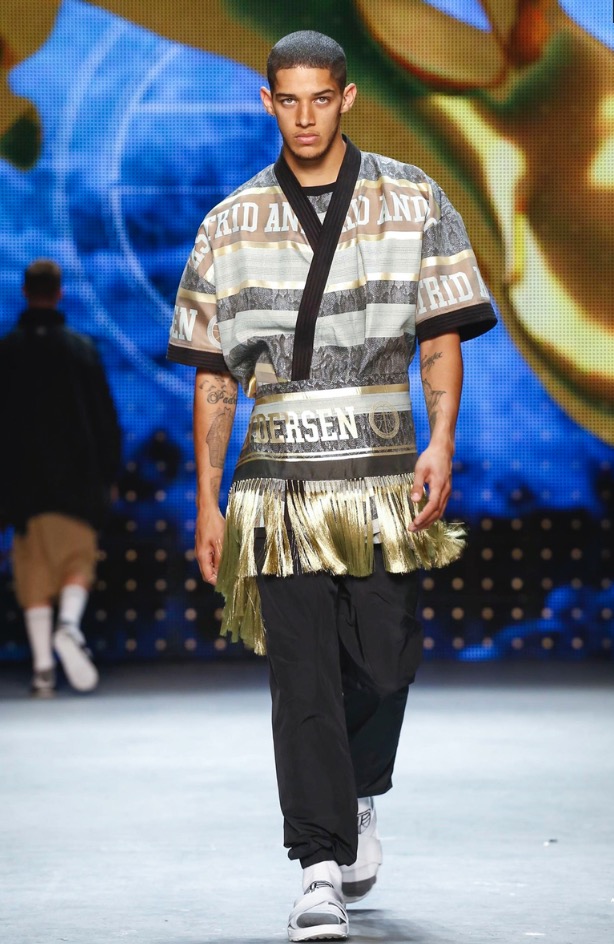 Interesting proposal of fashion designer Astrid Andersen for its Spring/Summer 2017 in London Collections: MEN. Another designer who adheres to oversize and huge plus size, exaggerating casual sports concepts although, I have to admit, it is really clings to the reality of fashion in the old suburbs of London. Now gets a sportier style combined with touches of lace on sweatshirts, pants, altering silhouettes with fabrics made of satin among others.