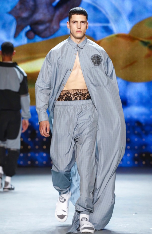 Interesting proposal of fashion designer Astrid Andersen for its Spring/Summer 2017 in London Collections: MEN. Another designer who adheres to oversize and huge plus size, exaggerating casual sports concepts although, I have to admit, it is really clings to the reality of fashion in the old suburbs of London. Now gets a sportier style combined with touches of lace on sweatshirts, pants, altering silhouettes with fabrics made of satin among others.