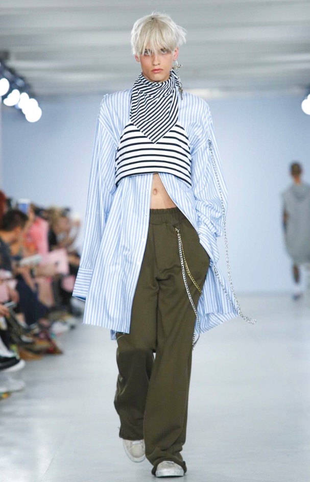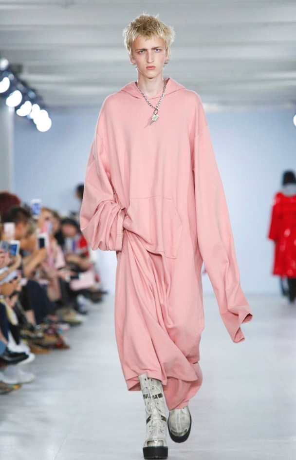 Xander Zhou presents its Spring/Summer 2017 Menswear Fashion show at London Collections: MEN. Xtra Large, Double Xtra Large or triple Xtra Large garments, around the catwalk innovating oversizes and plus sizes we can see jackets, trousers, sweatshirts, hoodies in huge sizes as the proposal. Palette color is divided, camouflage pattern is focusing the collection, and pink as supporting color.