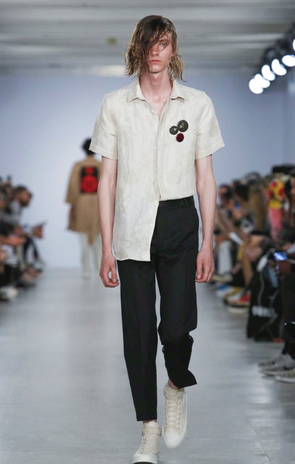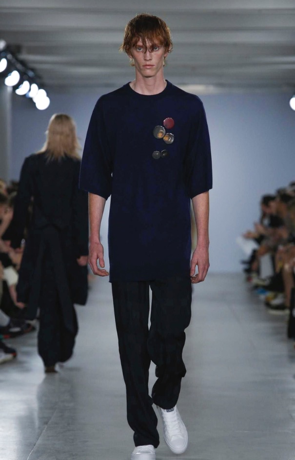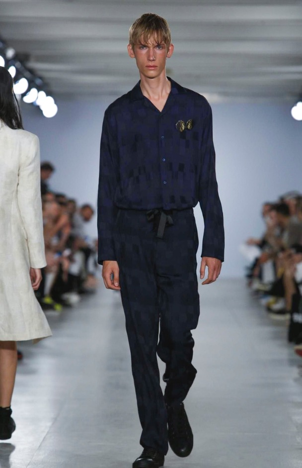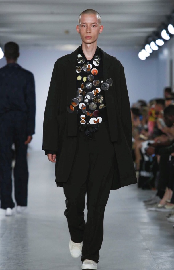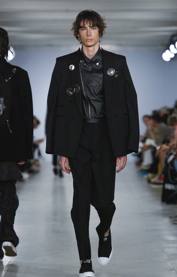 The visual language of art and gallery spaces is referenced throughout Miller’s work with labels reading Untitled, Mixed Media, Dimensions Variable that feature both Ms underscored, choosing to subtly call out his initials on a garment rather than plaster his name all over it.