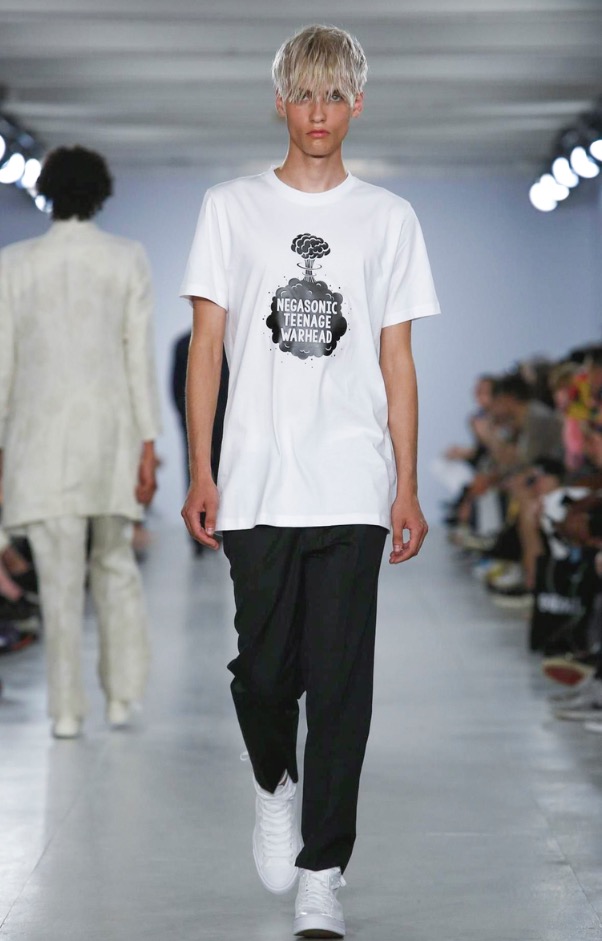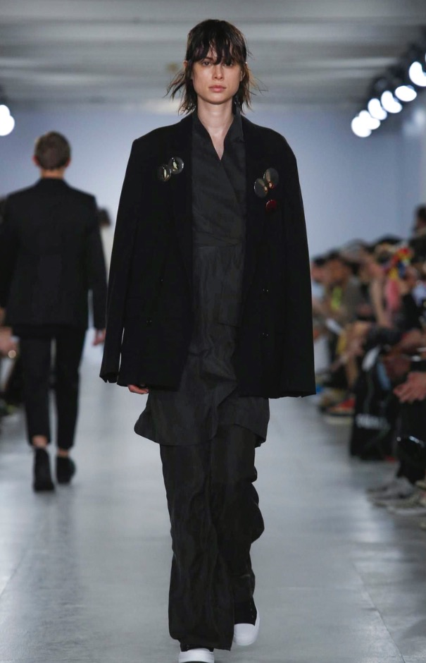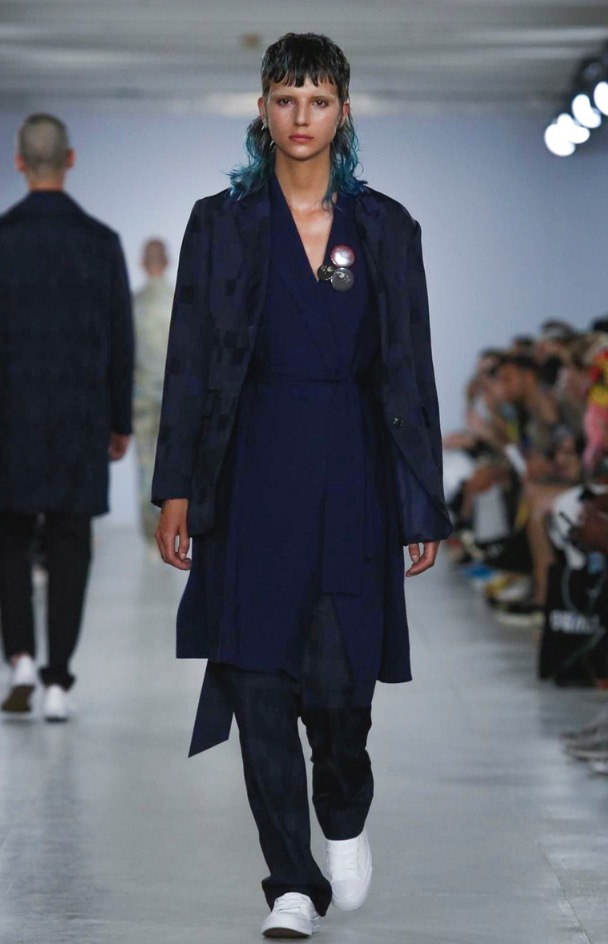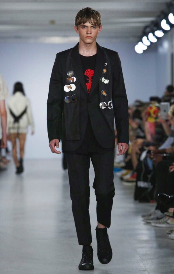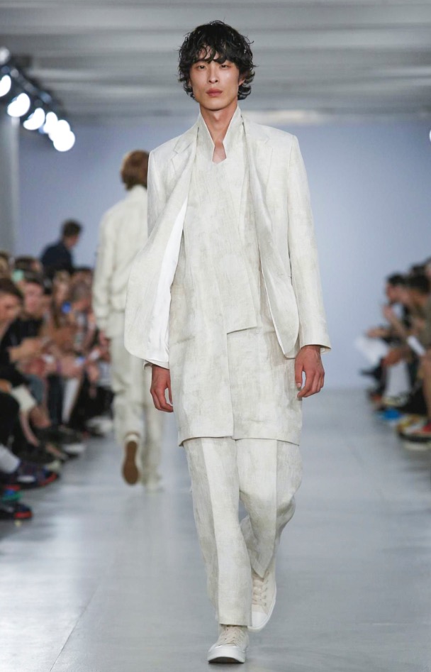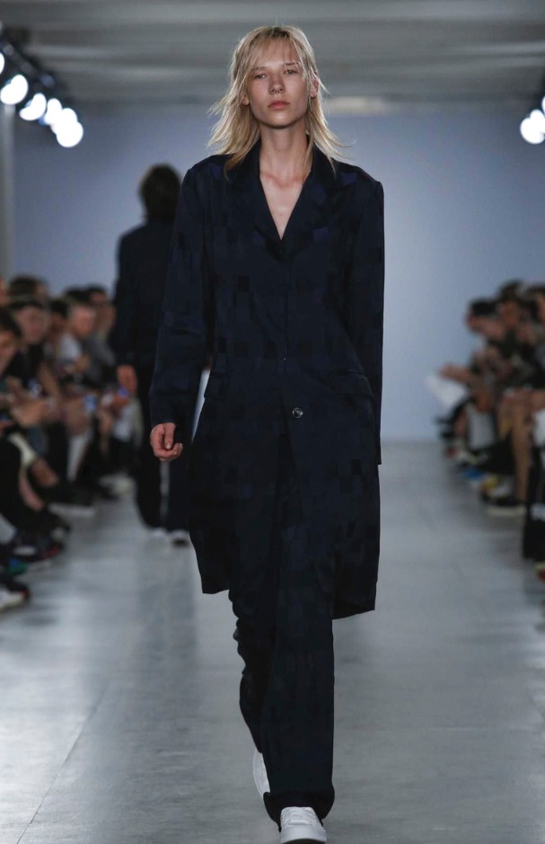 The visual language of art and gallery spaces is referenced throughout Miller’s work with labels reading Untitled, Mixed Media, Dimensions Variable that feature both Ms underscored, choosing to subtly call out his initials on a garment rather than plaster his name all over it.