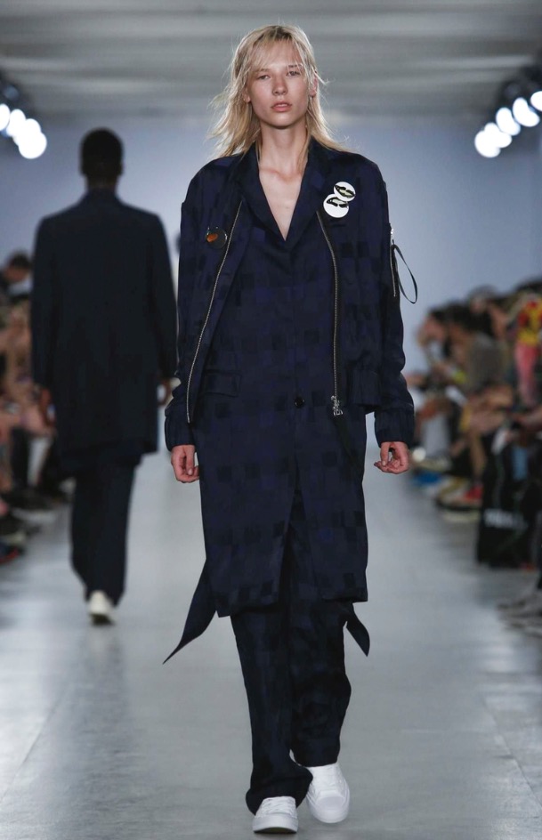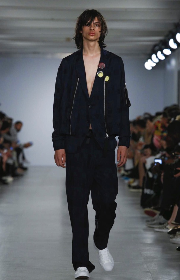 The visual language of art and gallery spaces is referenced throughout Miller’s work with labels reading Untitled, Mixed Media, Dimensions Variable that feature both Ms underscored, choosing to subtly call out his initials on a garment rather than plaster his name all over it.