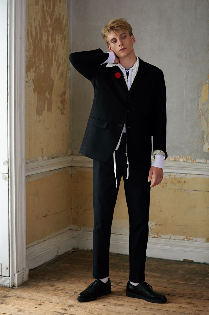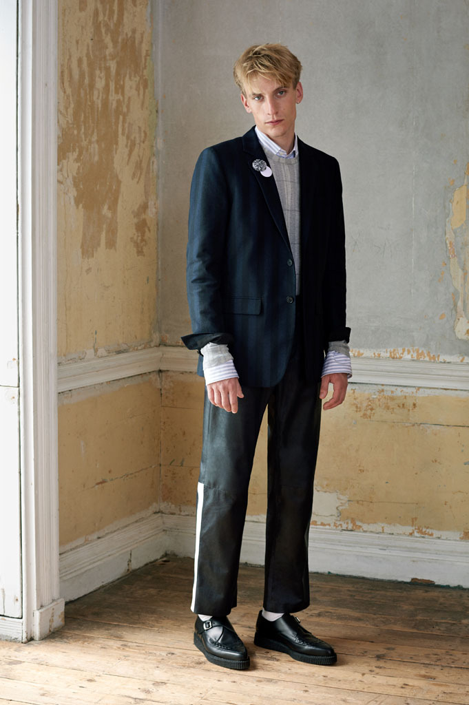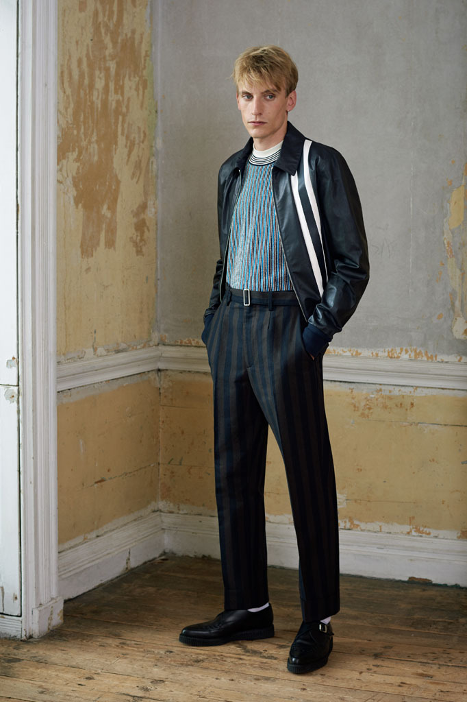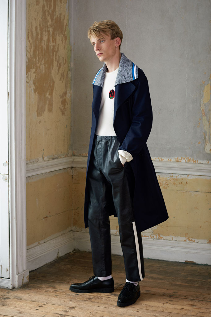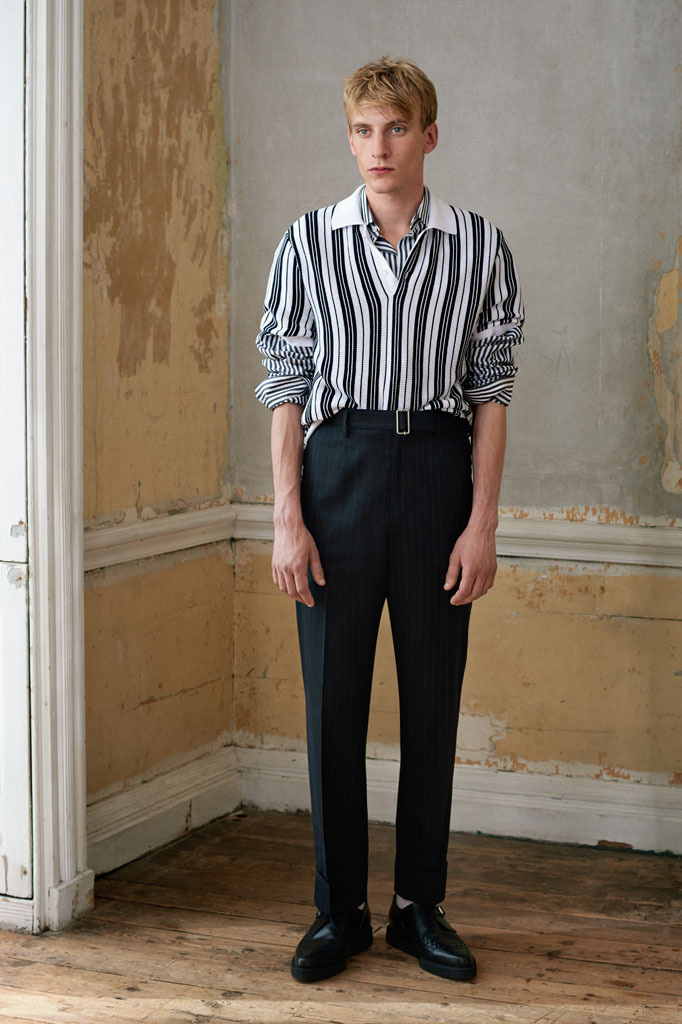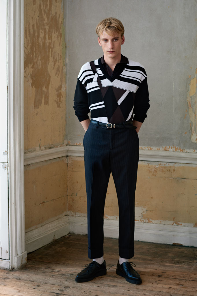 What unites those two eras is a dandy-ish, romantic sensibility, which Pringle’s men’s wear design director channeled into his roughed-up denim, lightweight knits, textured cotton sweatshirts and soft military jackets.