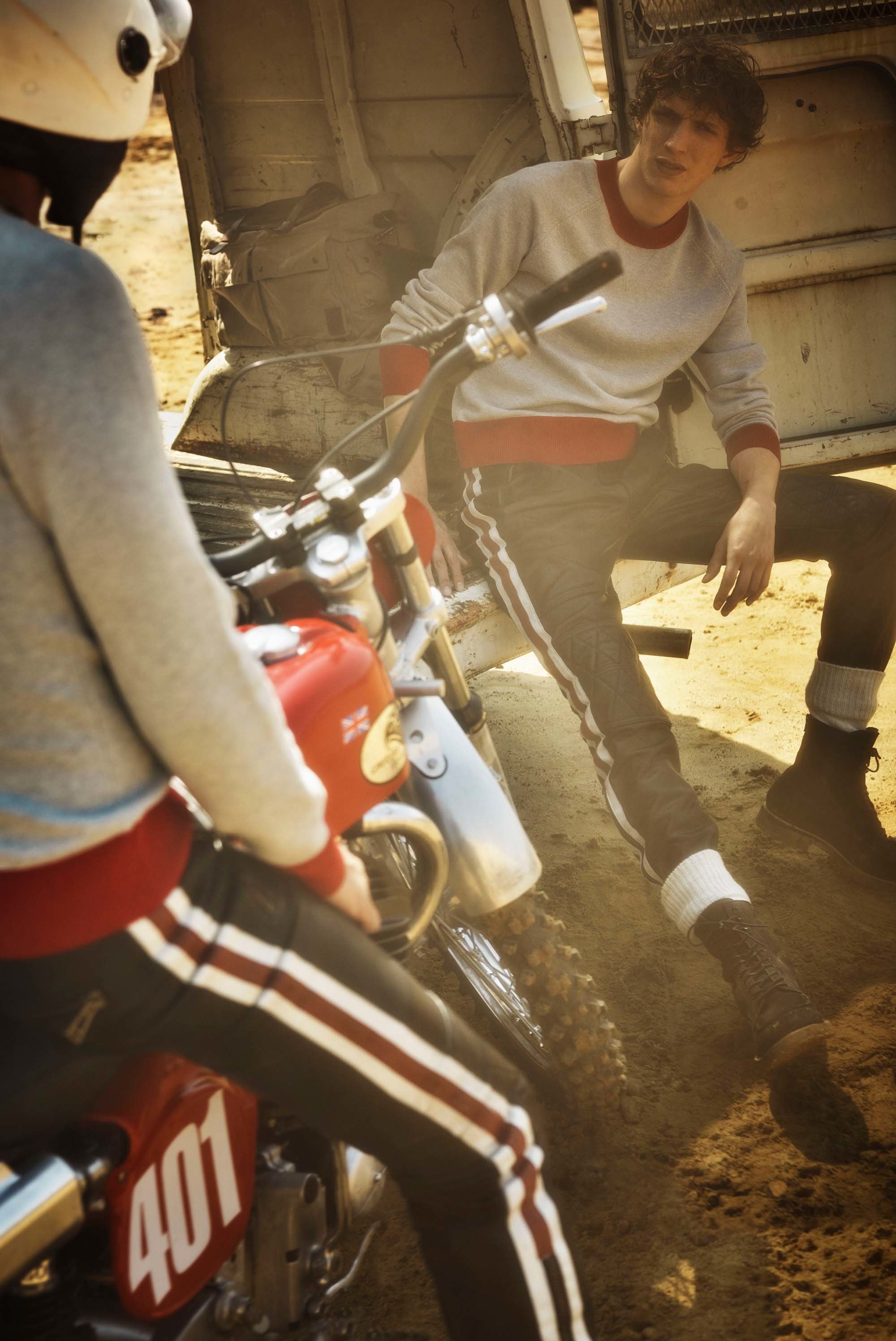This season(s), the motorcycling heritage brand Belstaff sped into broader fashion consensus by aligning the theme and presentation of its Resort and Pre-Spring menswear collections. Yet it was careful to retain the authorial independence of its two gender-specific design chiefs. That theme, as menswear’s Fred Dyhr put it, “starts with the 1971 documentary On Any Sunday, which featured Steve McQueen. And we were also looking at what was happening in England in riding and motorcycle culture at the same time. And it was about customization: A lot of riders were taking stars, stripes and customizing their own jackets.”