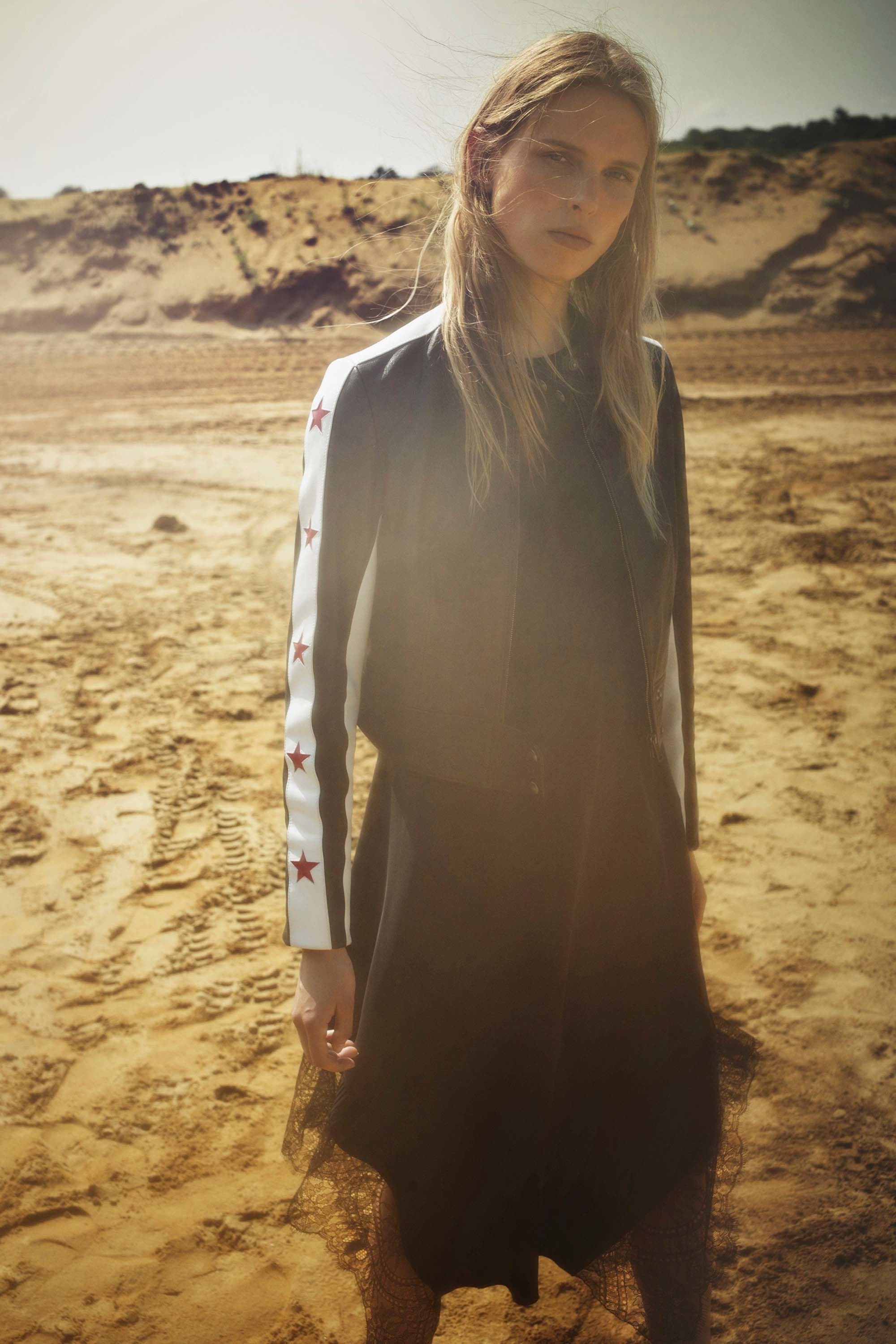 Standout womenswear pieces included soft and fluid suede Perfectos in green and tan, some great denim spattered with starry fruits of that customization theme, and animal-camp fringed dresses and shirts. The menswear was harder but no less consideredly sophisticated: Here the to-be-expected moves included enduro jackets in richly burnished leather patches, moto-leather pants, and jumpsuits. The Millerain camo parkas with house diamond-stitch detail were less obvious but no less lovely.