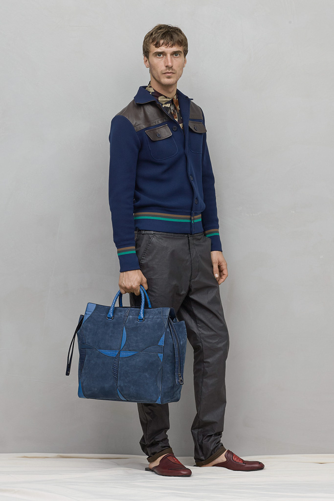 There is rarely a whiff of any androgyny at Bottega Veneta, where Tomas Maier plies lived-in-looking, resolutely masculine fashions that are nevertheless painstakingly detailed.