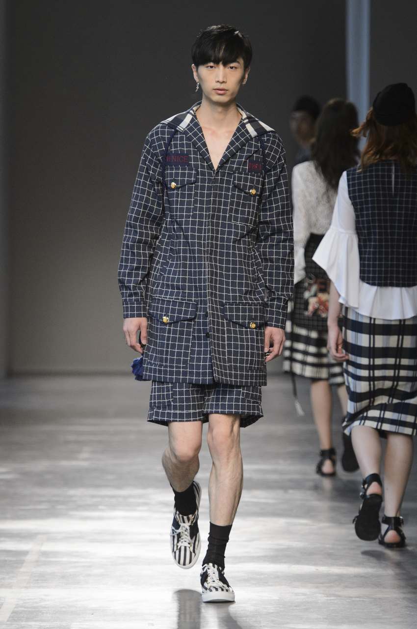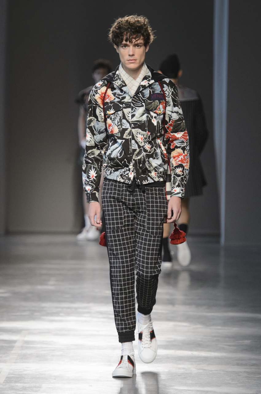 Venice and Venice Beach were the two cities that influenced Christian Pellizzari’s collection. References to the former emerged in the original outwear pieces inspired by the traditional uniforms worn by gondoliers. These came worked in a range of patterns from checks to micro graphics and were paired with slim pants, as well as relaxed joggers.