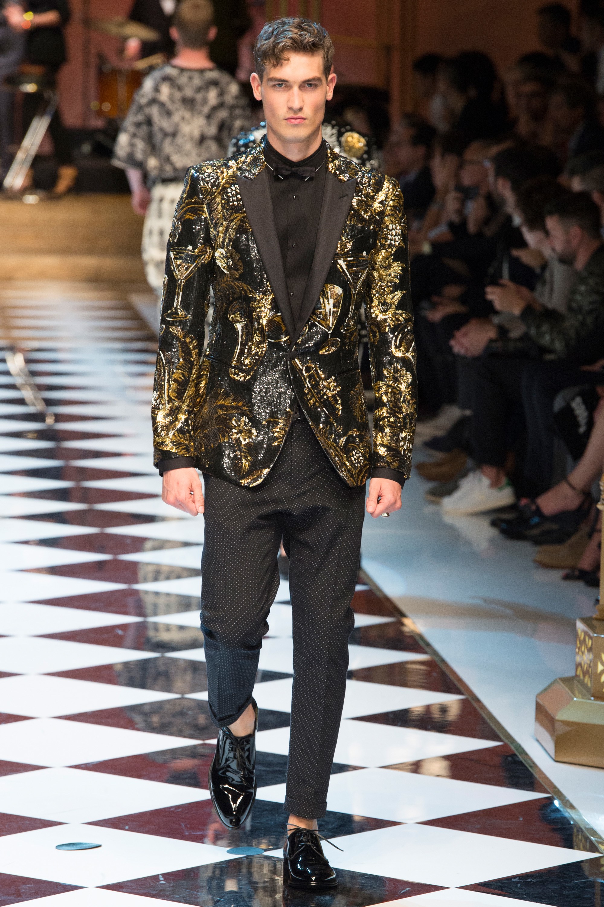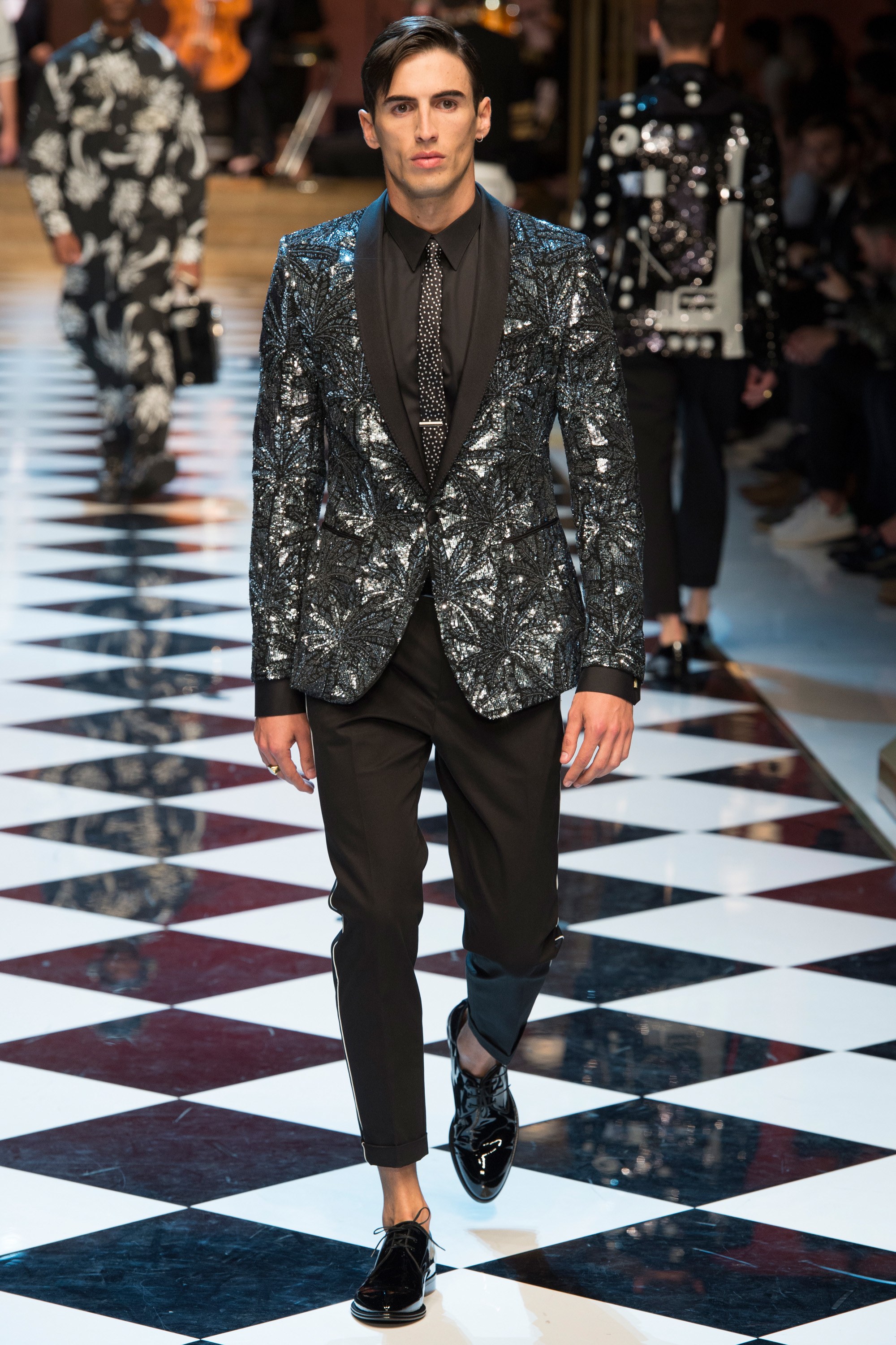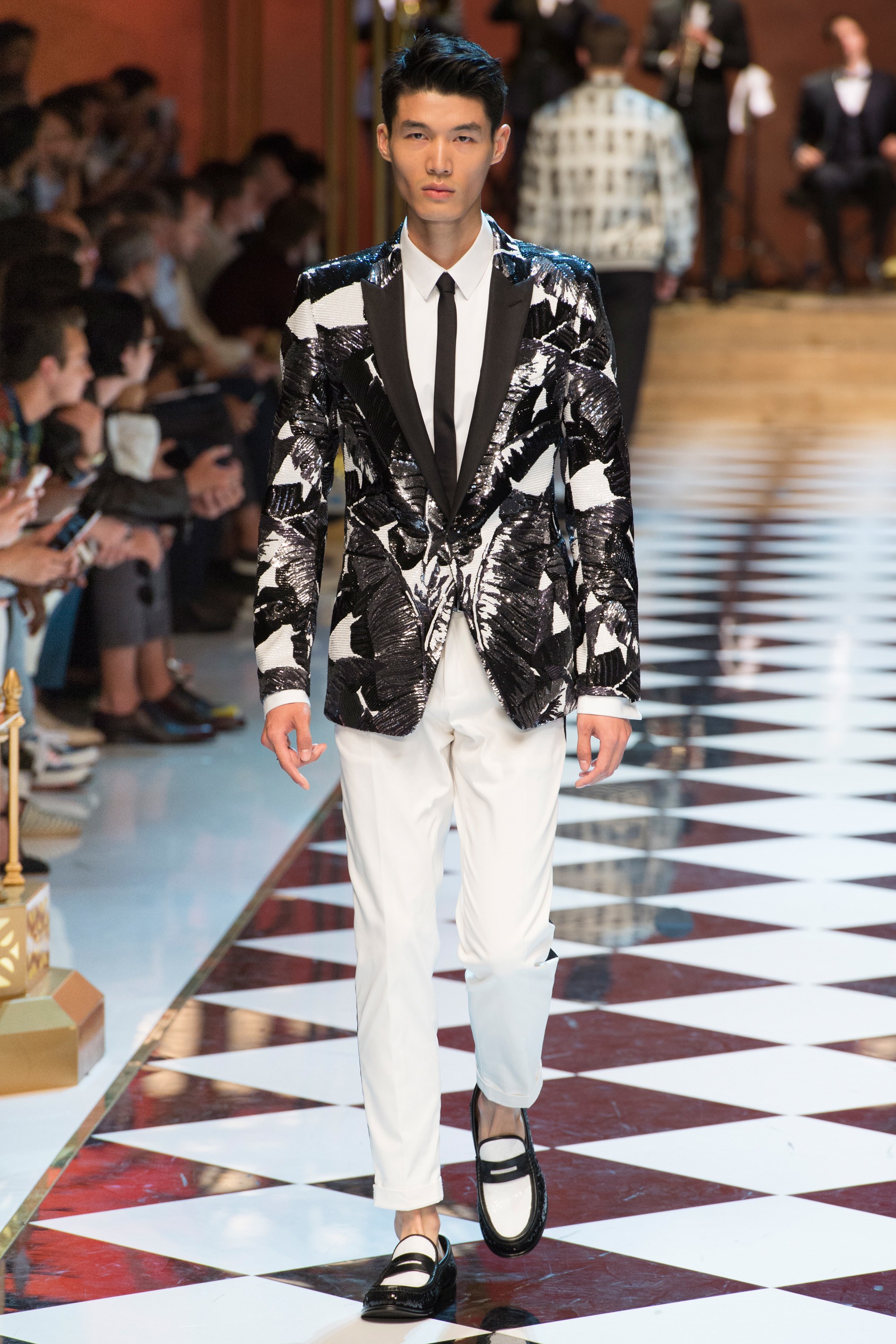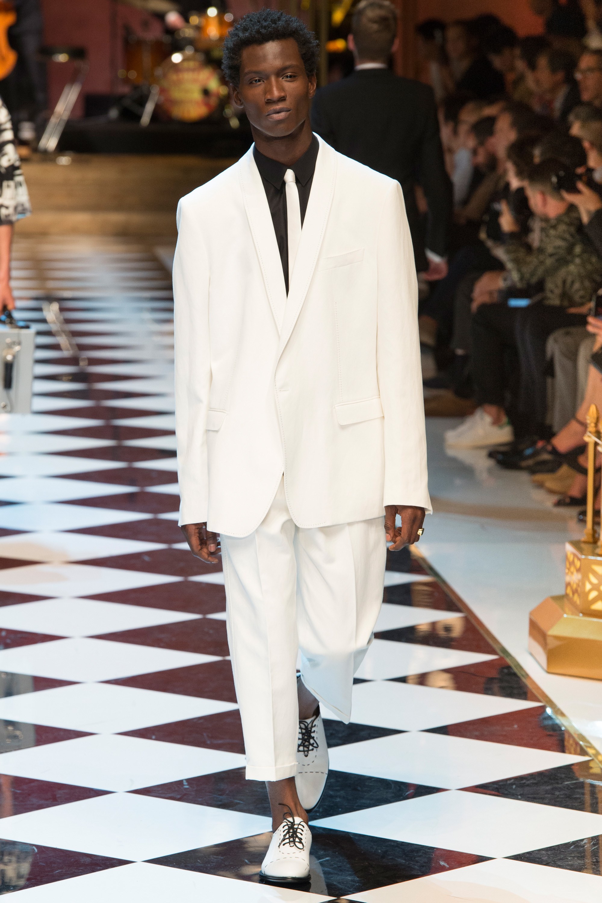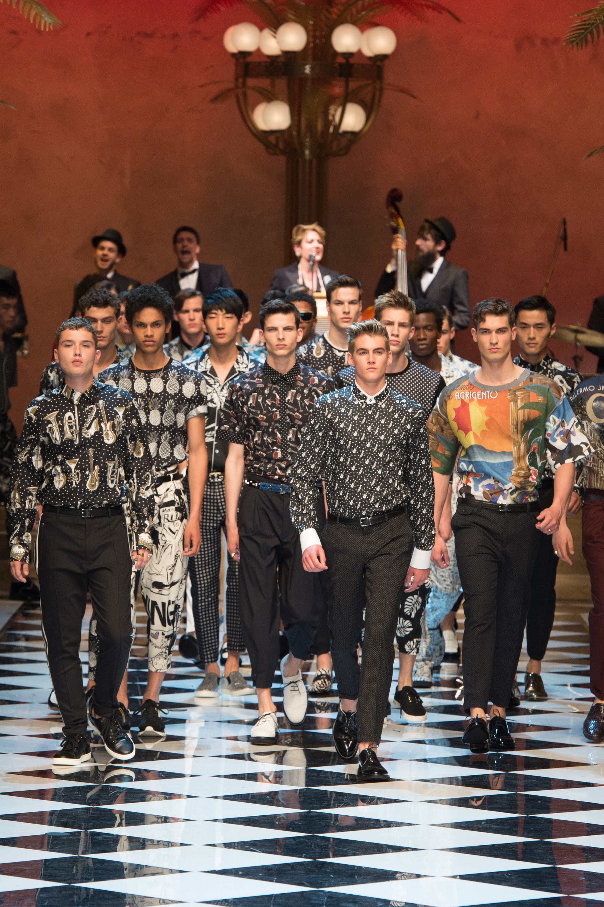 Dolce & Gabbana presented their Spring 2017 menswear collection in Milan today, and like any Dolce & Gabbana production, this one was filled with buzzy moments. From the front row stars to the models to the clothes themselves, there’s a lot to talk about from today’s show.