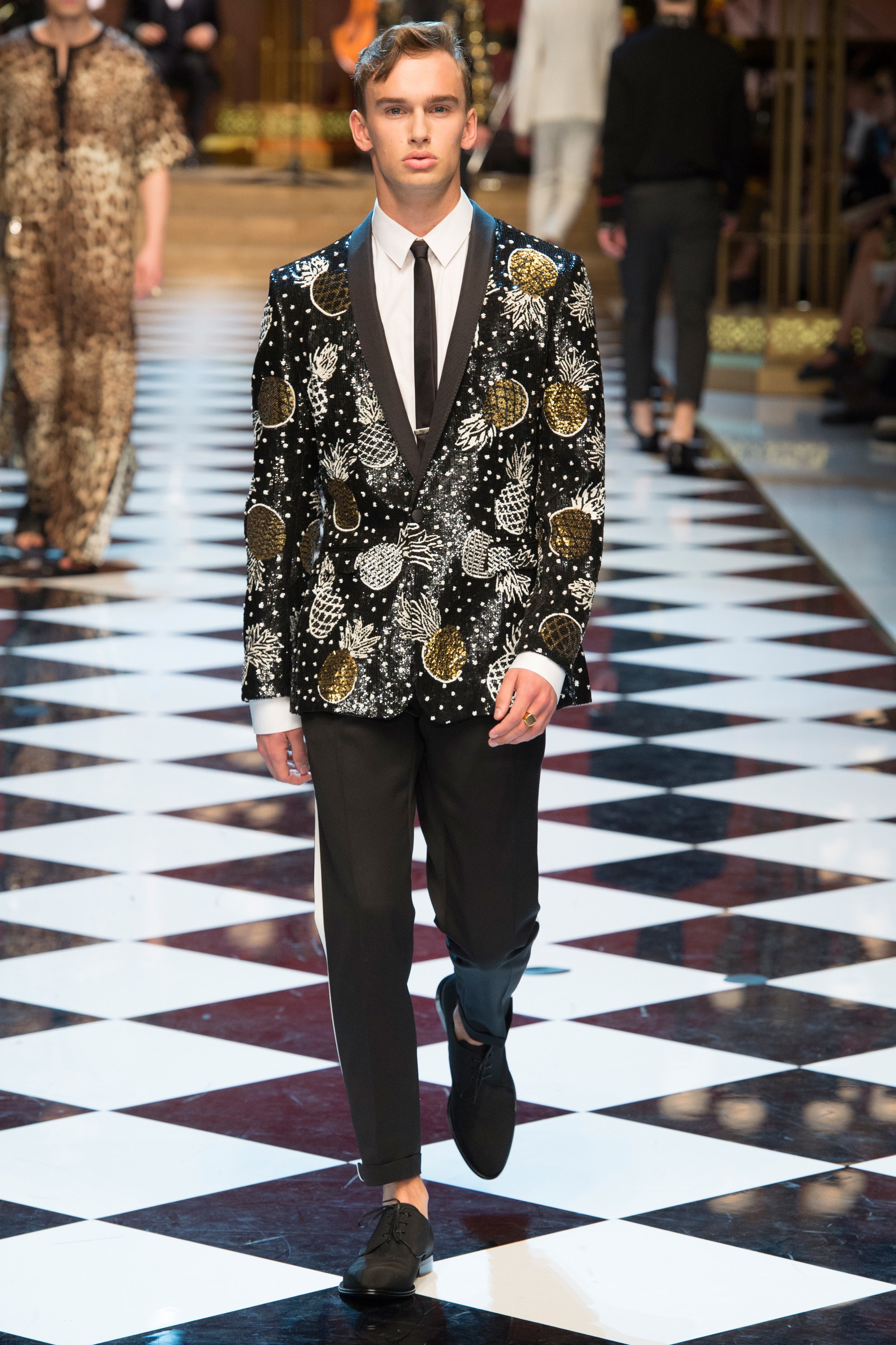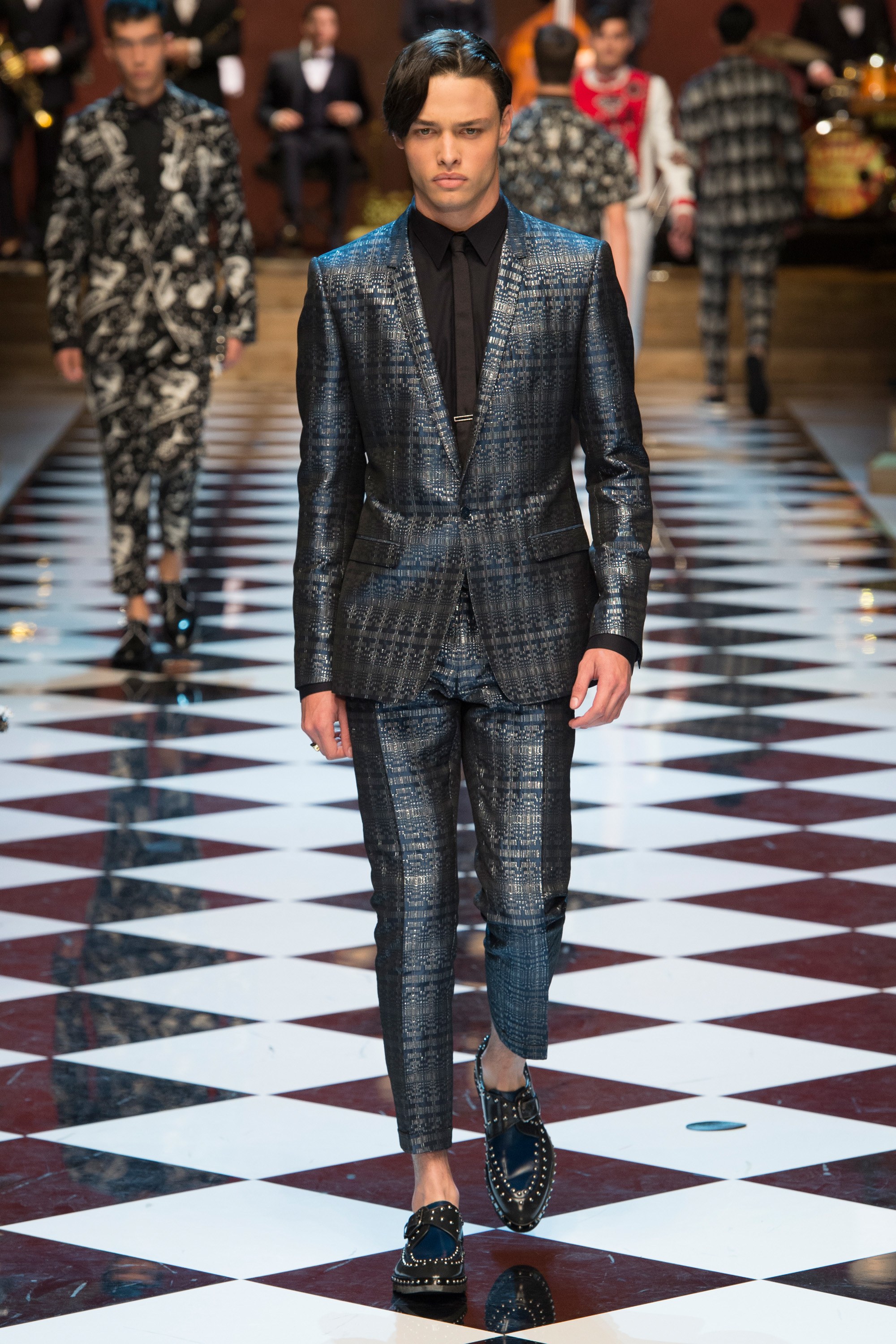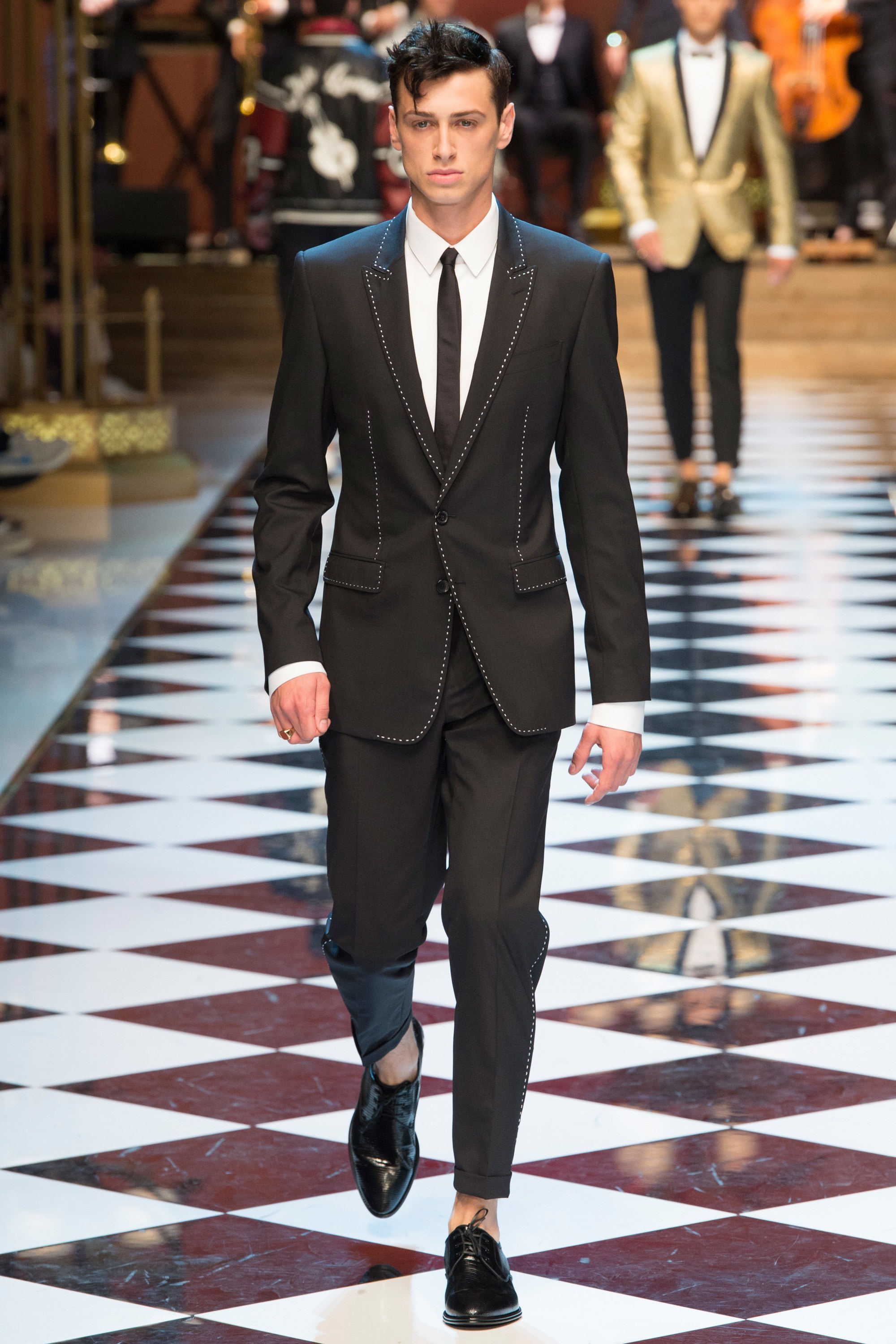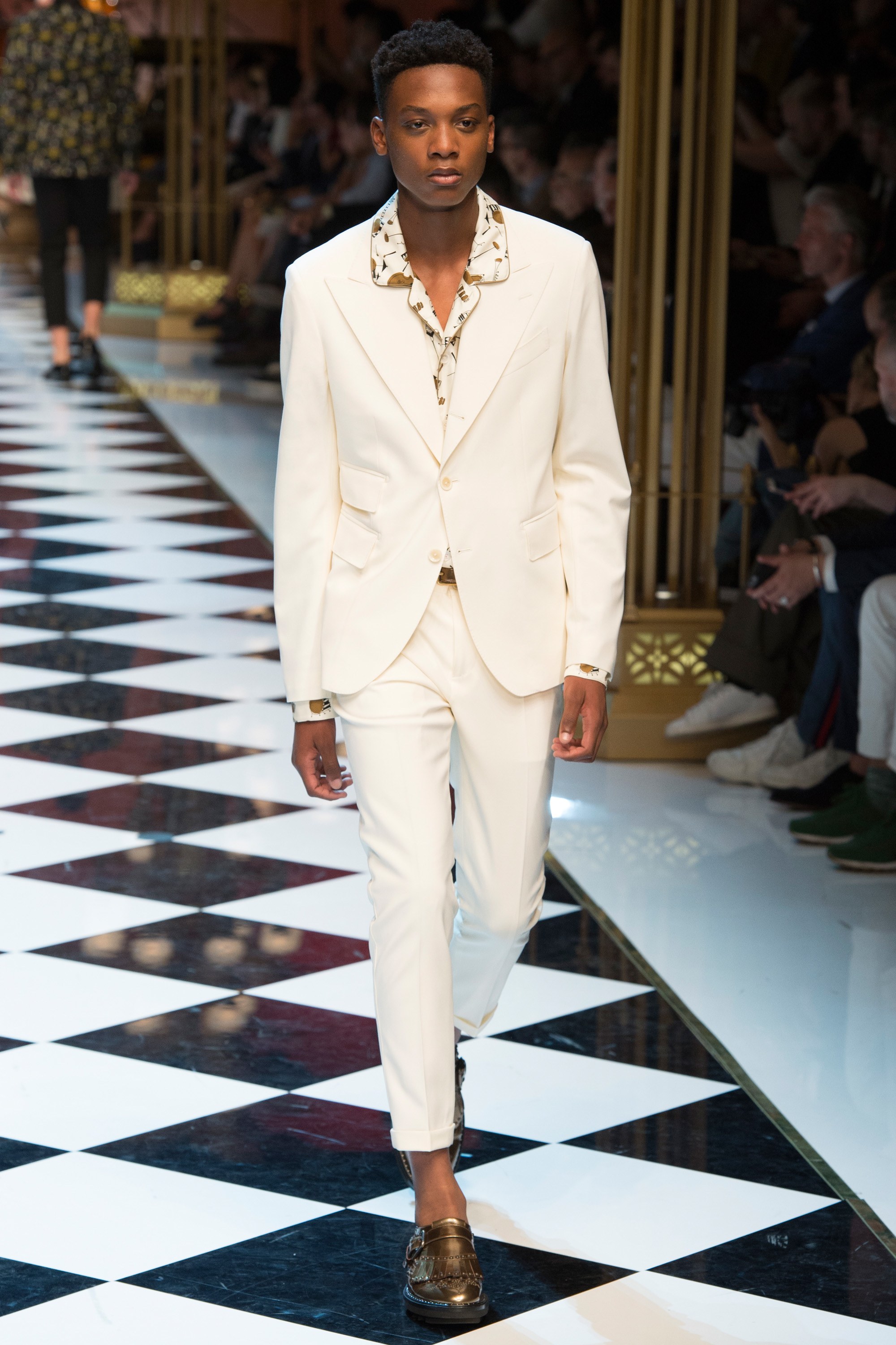 Dolce & Gabbana presented their Spring 2017 menswear collection in Milan today, and like any Dolce & Gabbana production, this one was filled with buzzy moments. From the front row stars to the models to the clothes themselves, there’s a lot to talk about from today’s show.