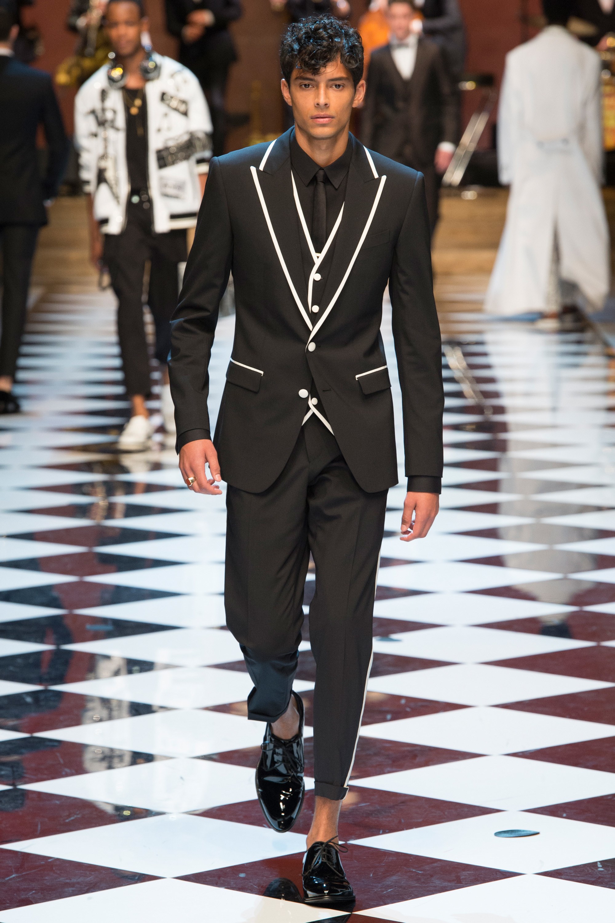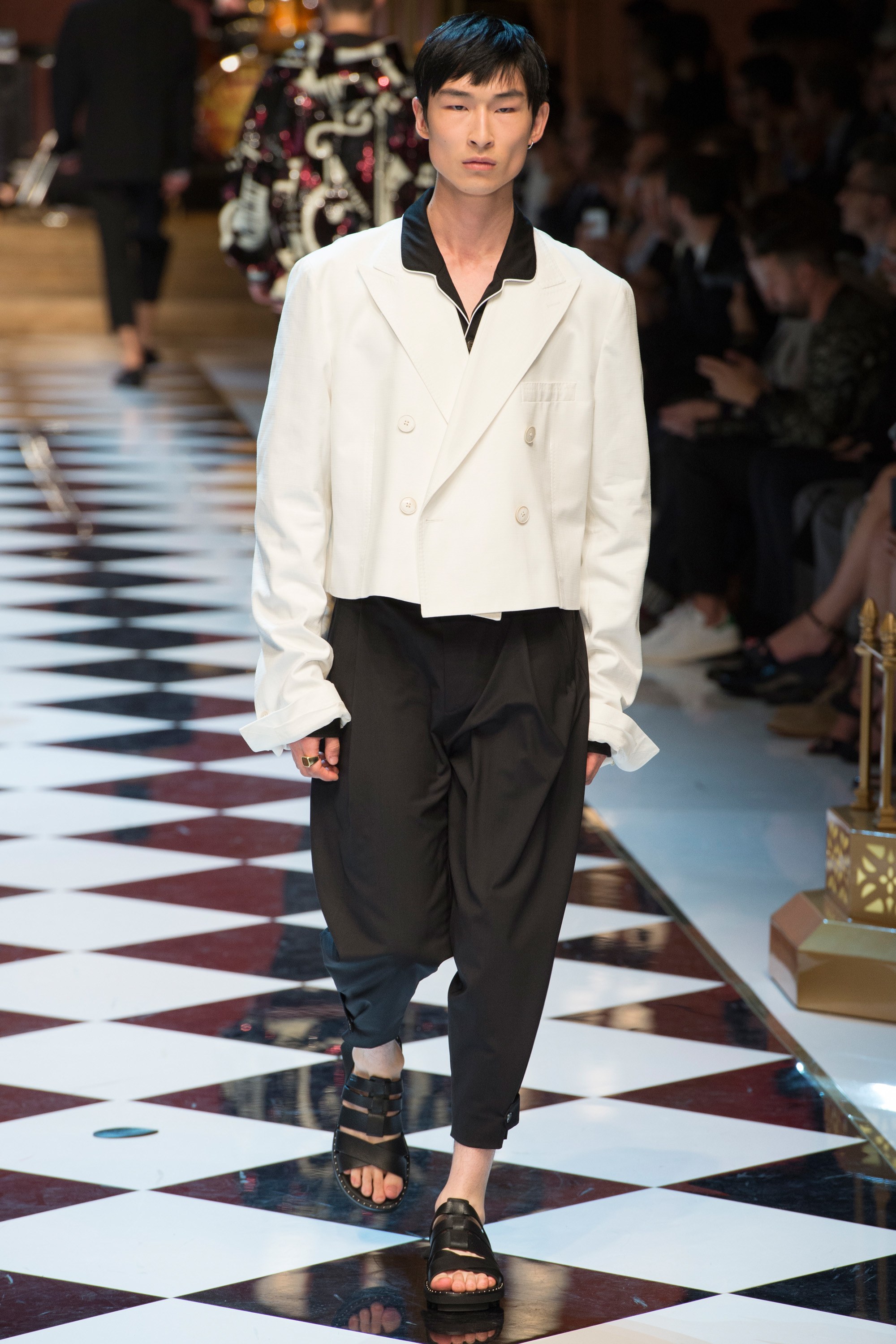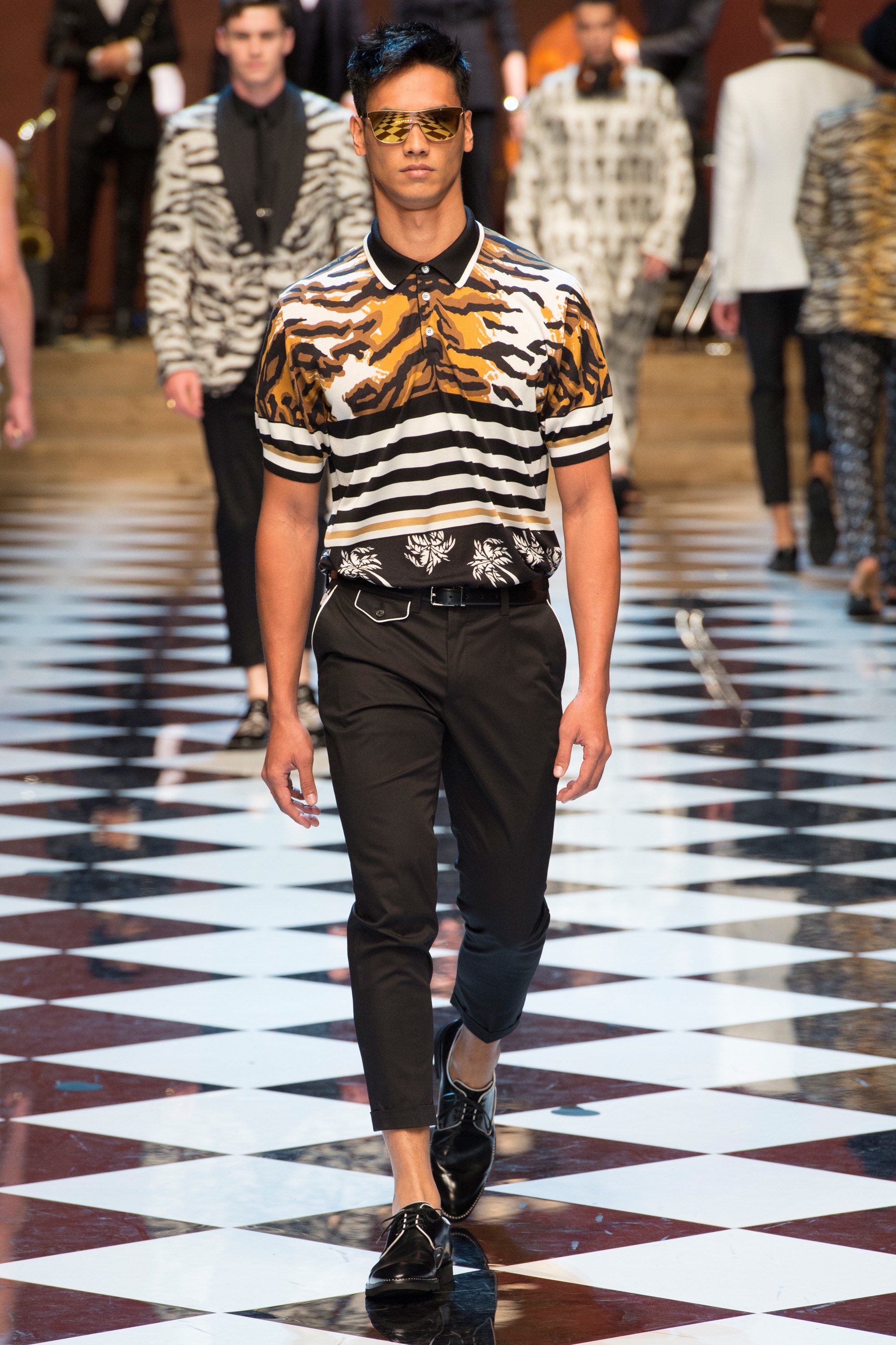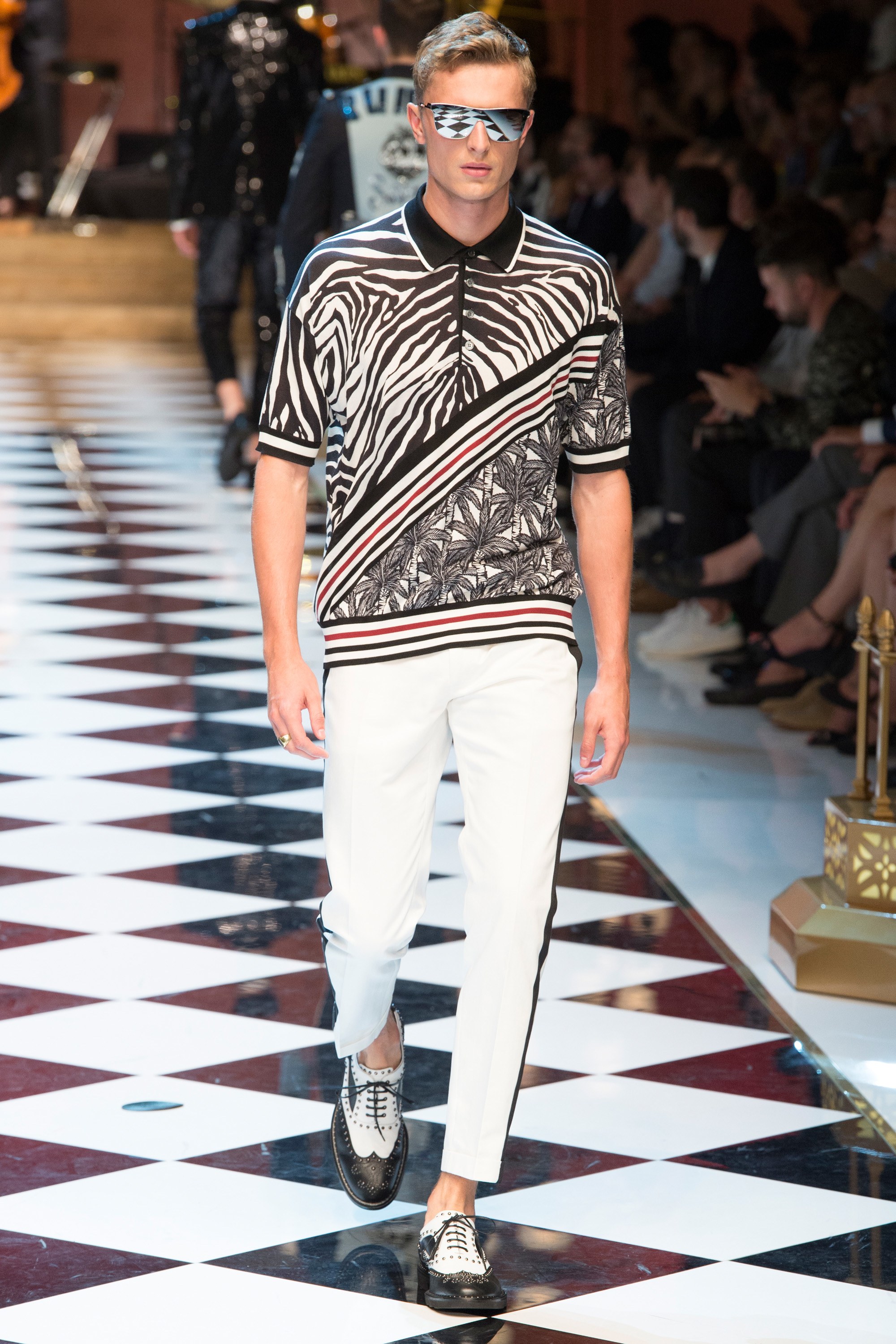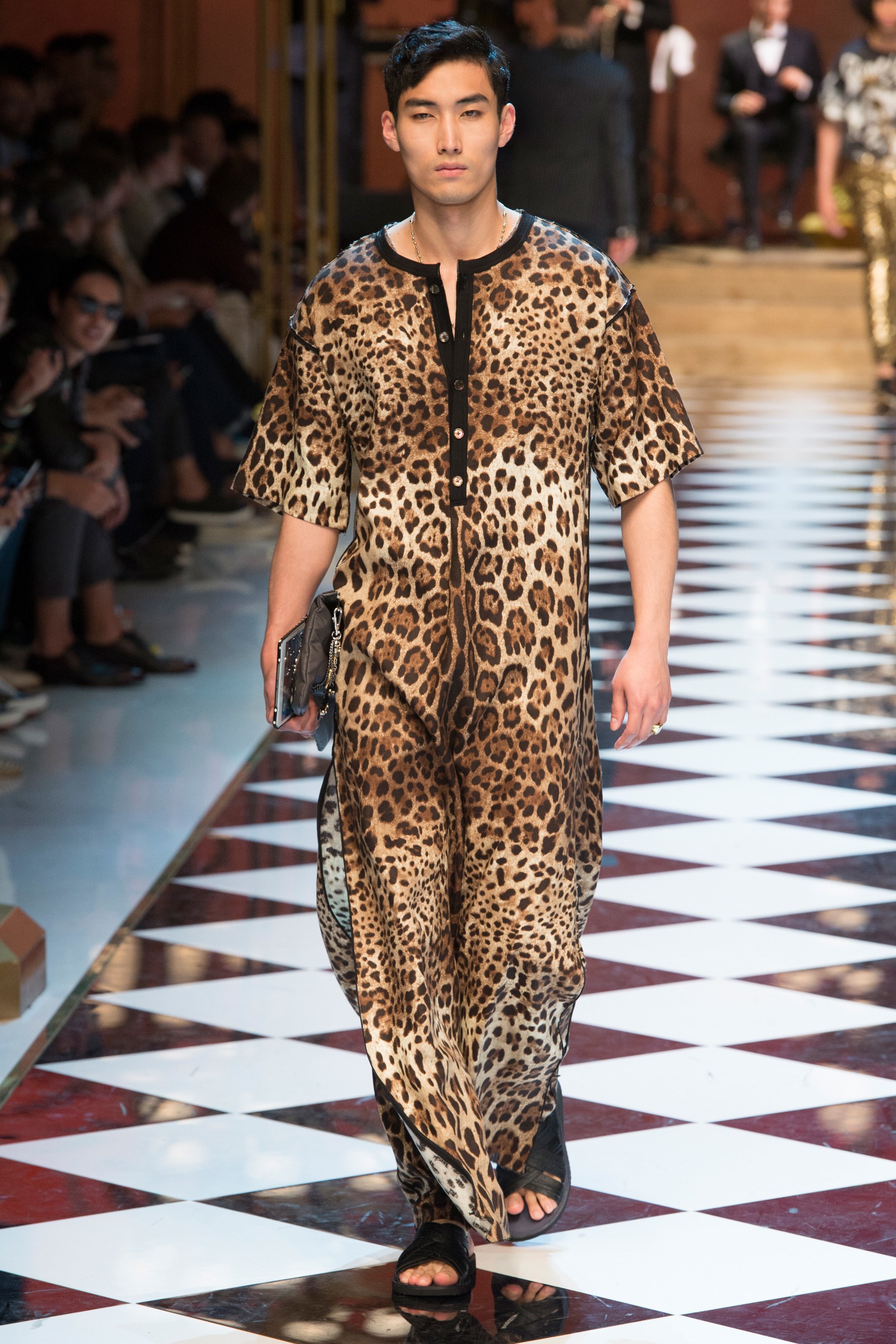 Dolce & Gabbana presented their Spring 2017 menswear collection in Milan today, and like any Dolce & Gabbana production, this one was filled with buzzy moments. From the front row stars to the models to the clothes themselves, there’s a lot to talk about from today’s show.