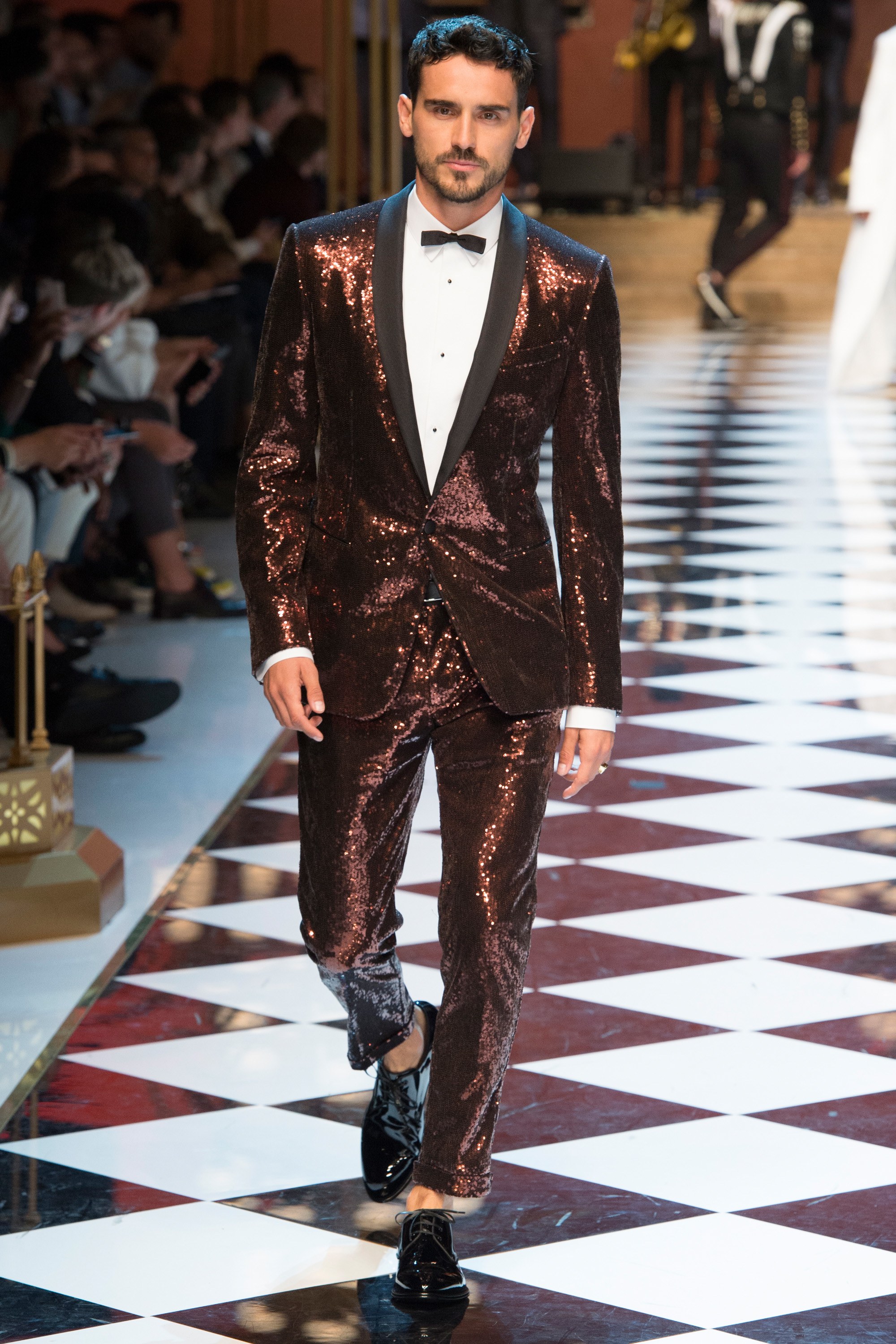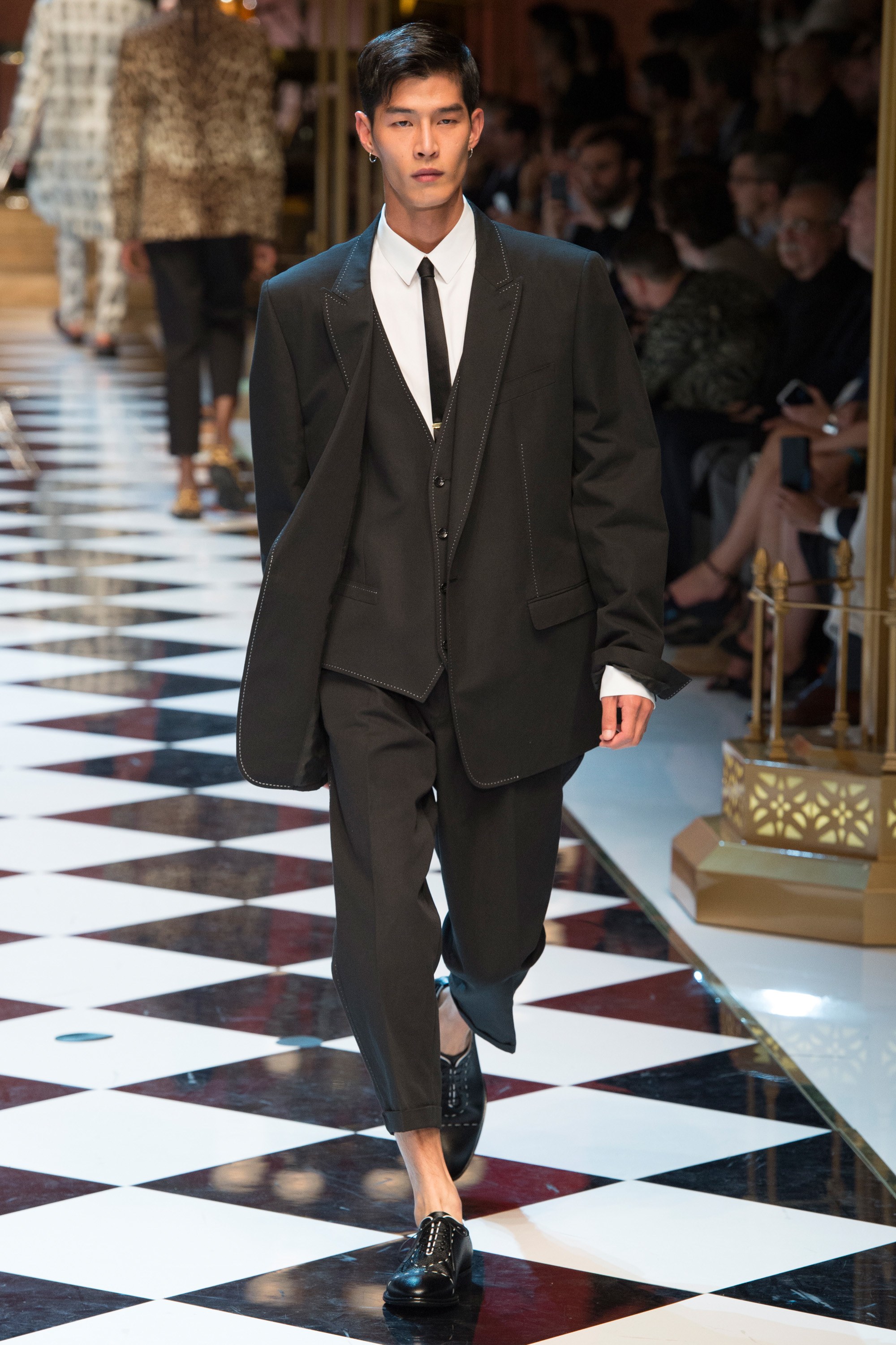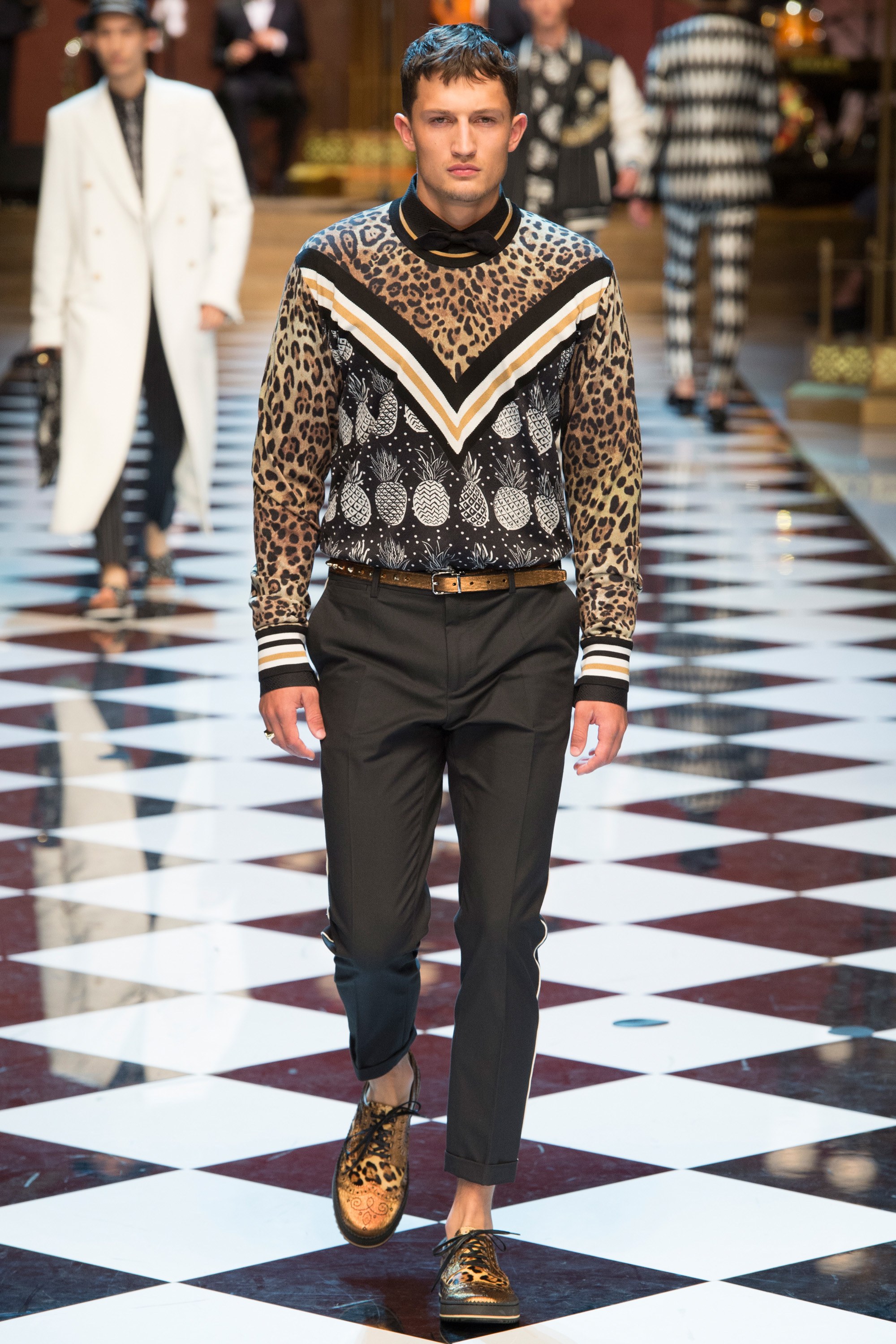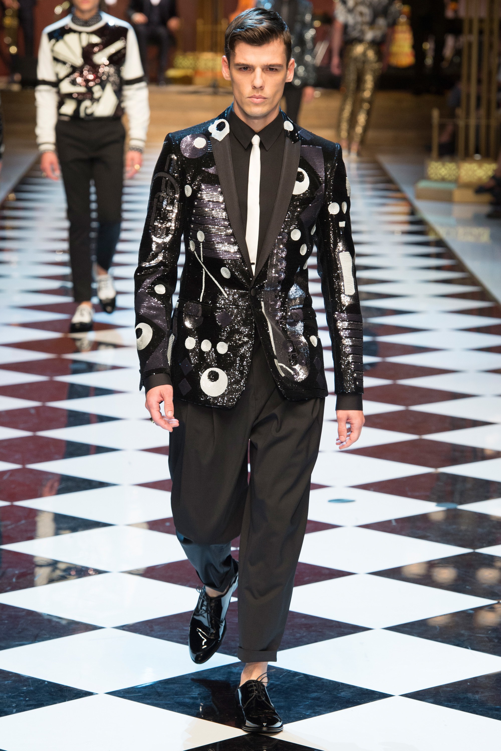 Dolce & Gabbana presented their Spring 2017 menswear collection in Milan today, and like any Dolce & Gabbana production, this one was filled with buzzy moments. From the front row stars to the models to the clothes themselves, there’s a lot to talk about from today’s show.