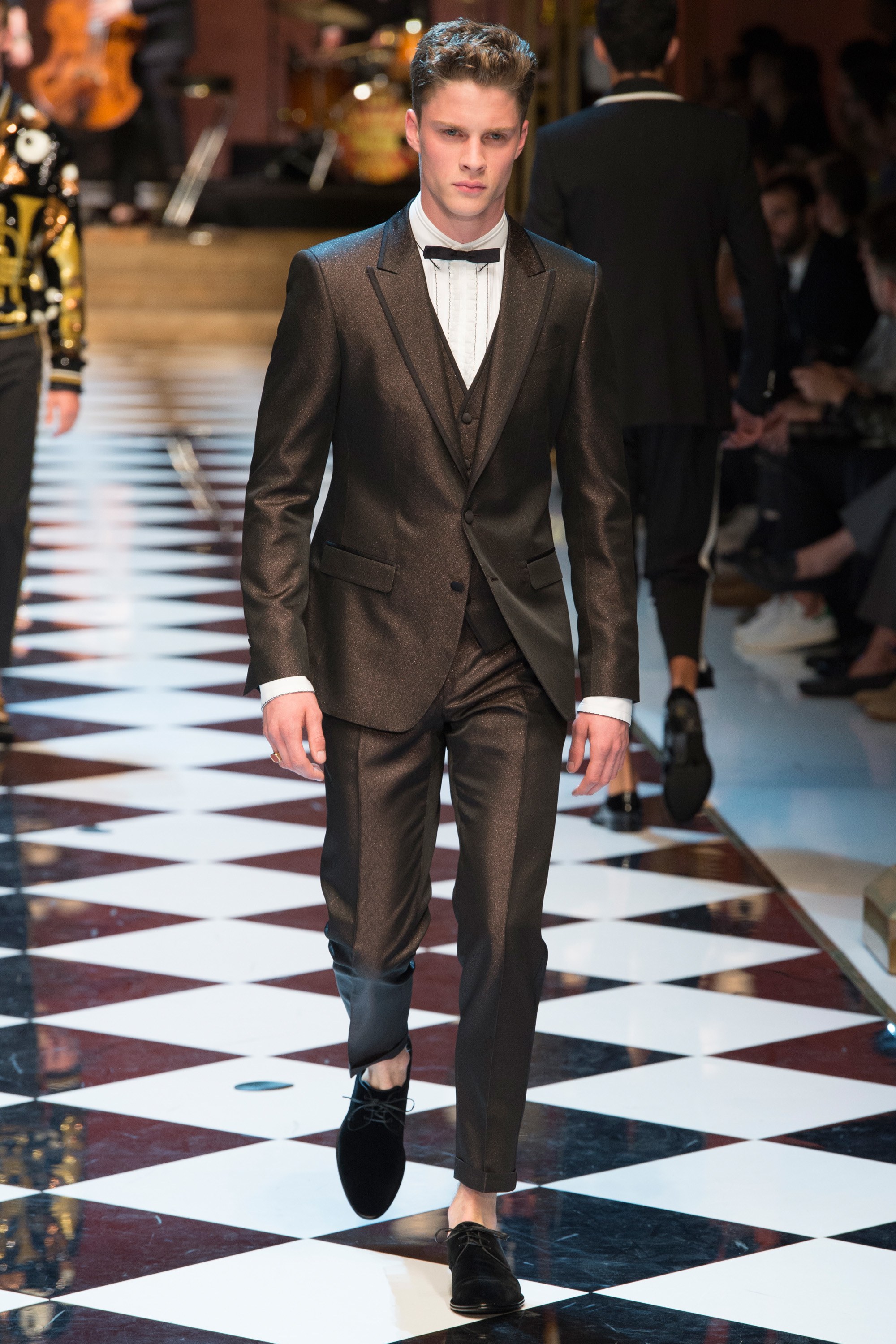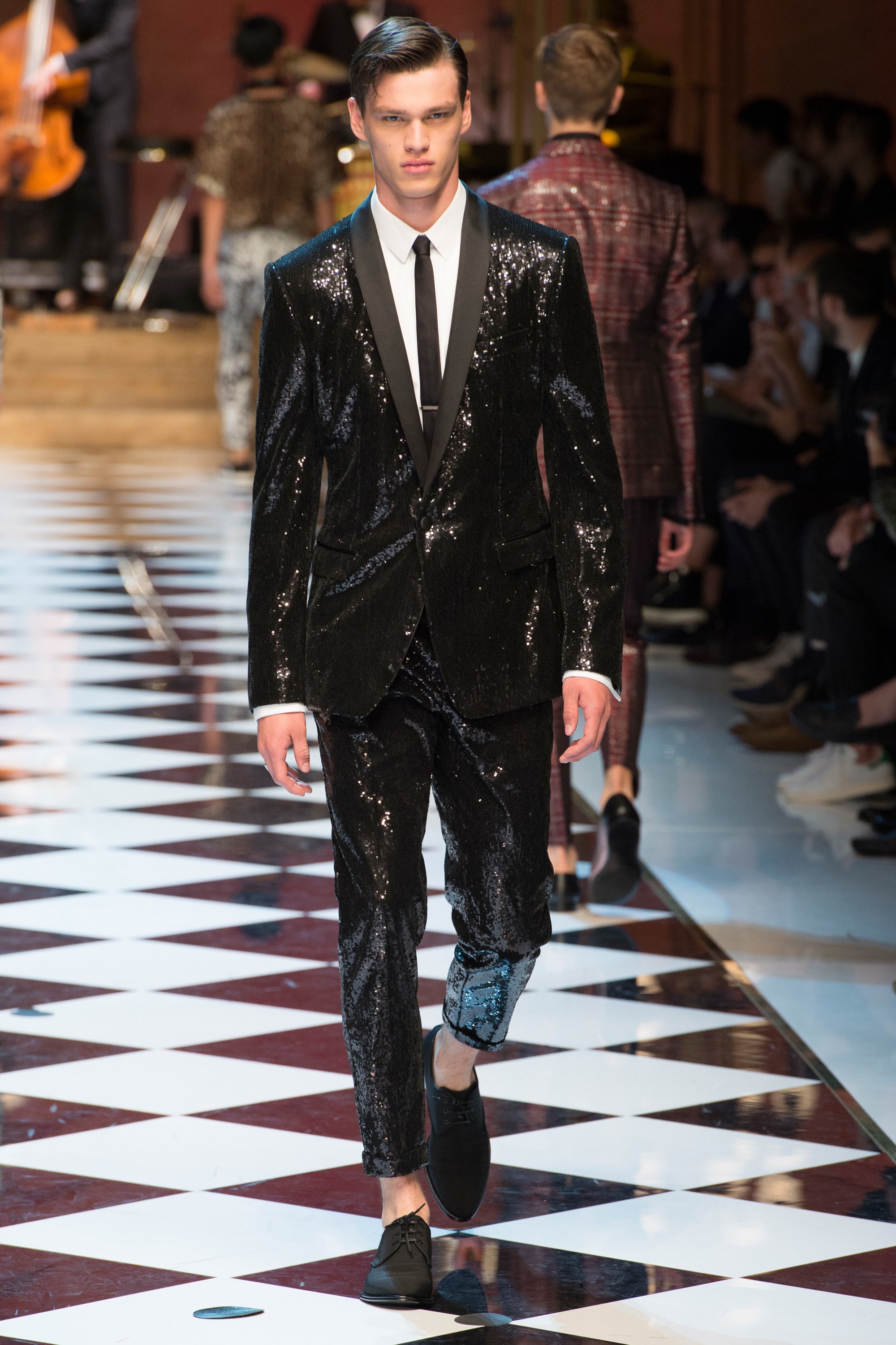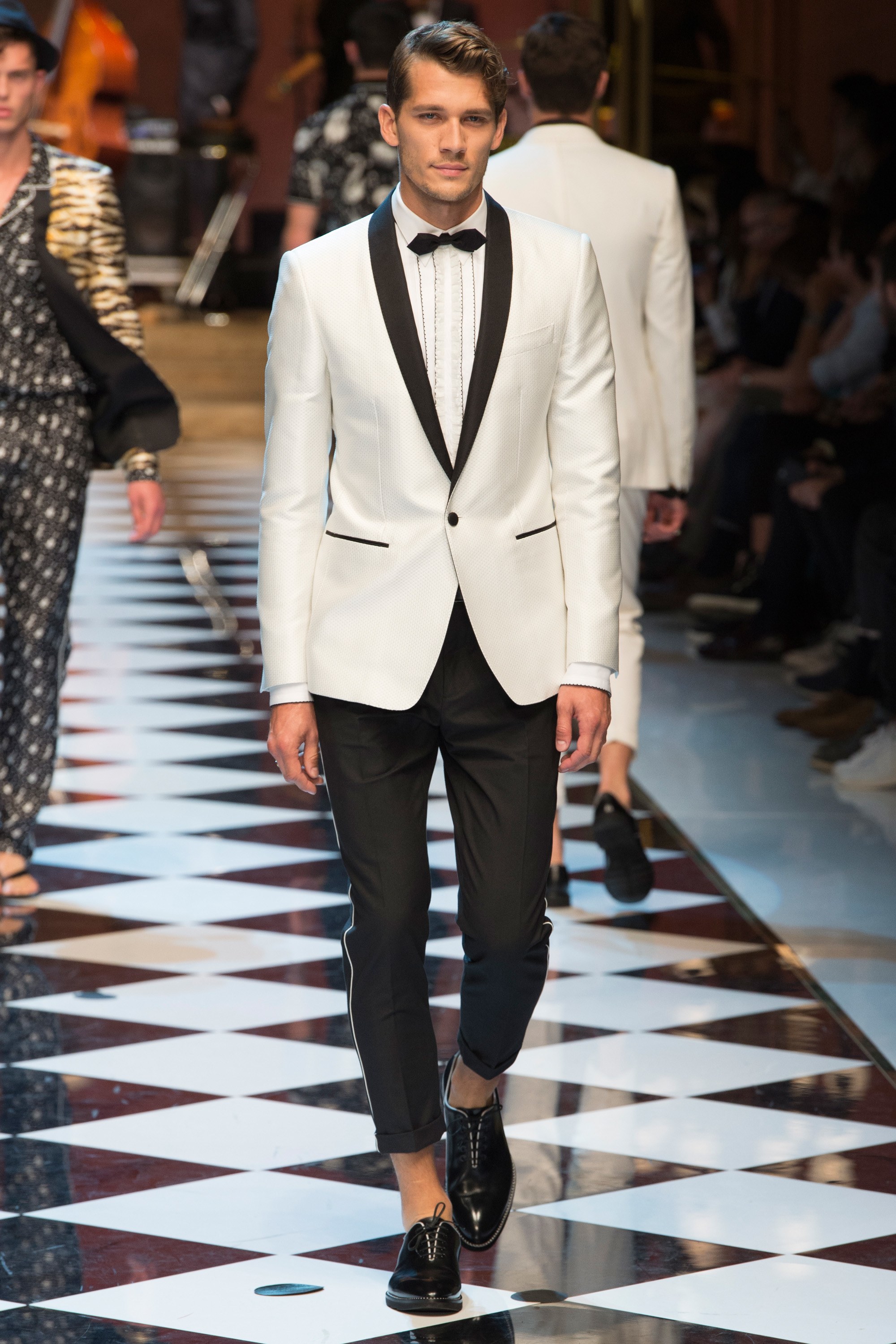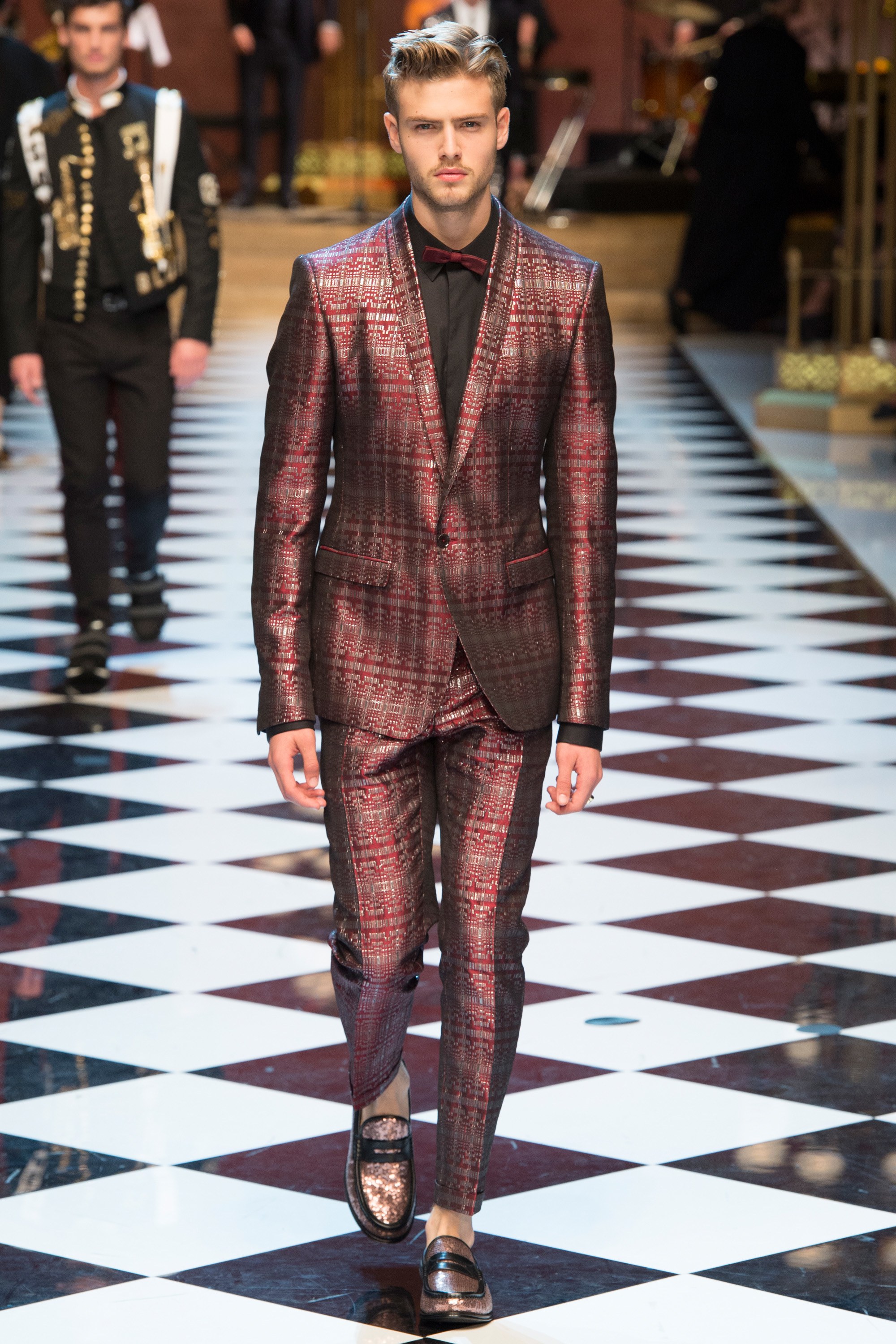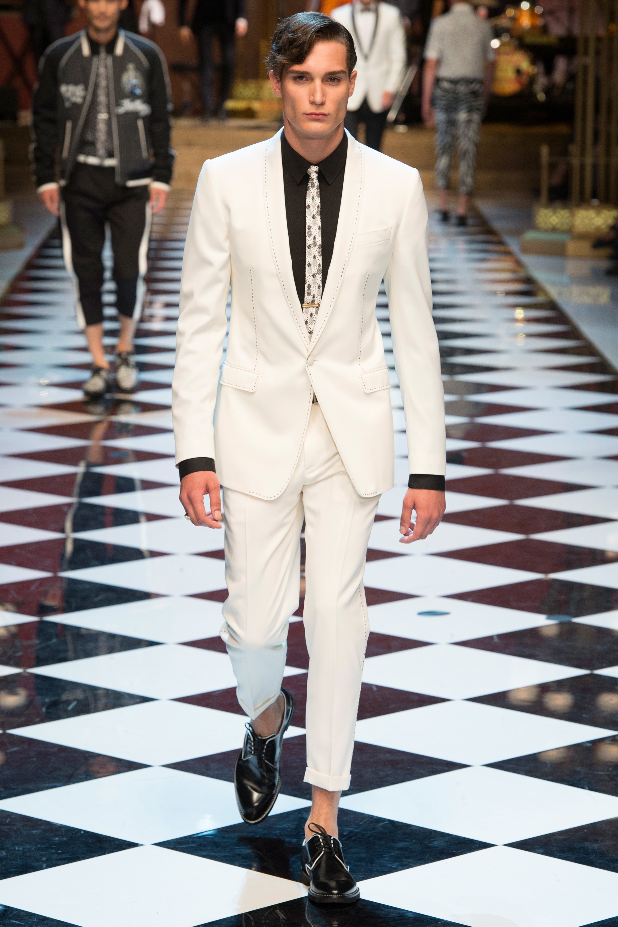 Dolce & Gabbana presented their Spring 2017 menswear collection in Milan today, and like any Dolce & Gabbana production, this one was filled with buzzy moments. From the front row stars to the models to the clothes themselves, there’s a lot to talk about from today’s show.