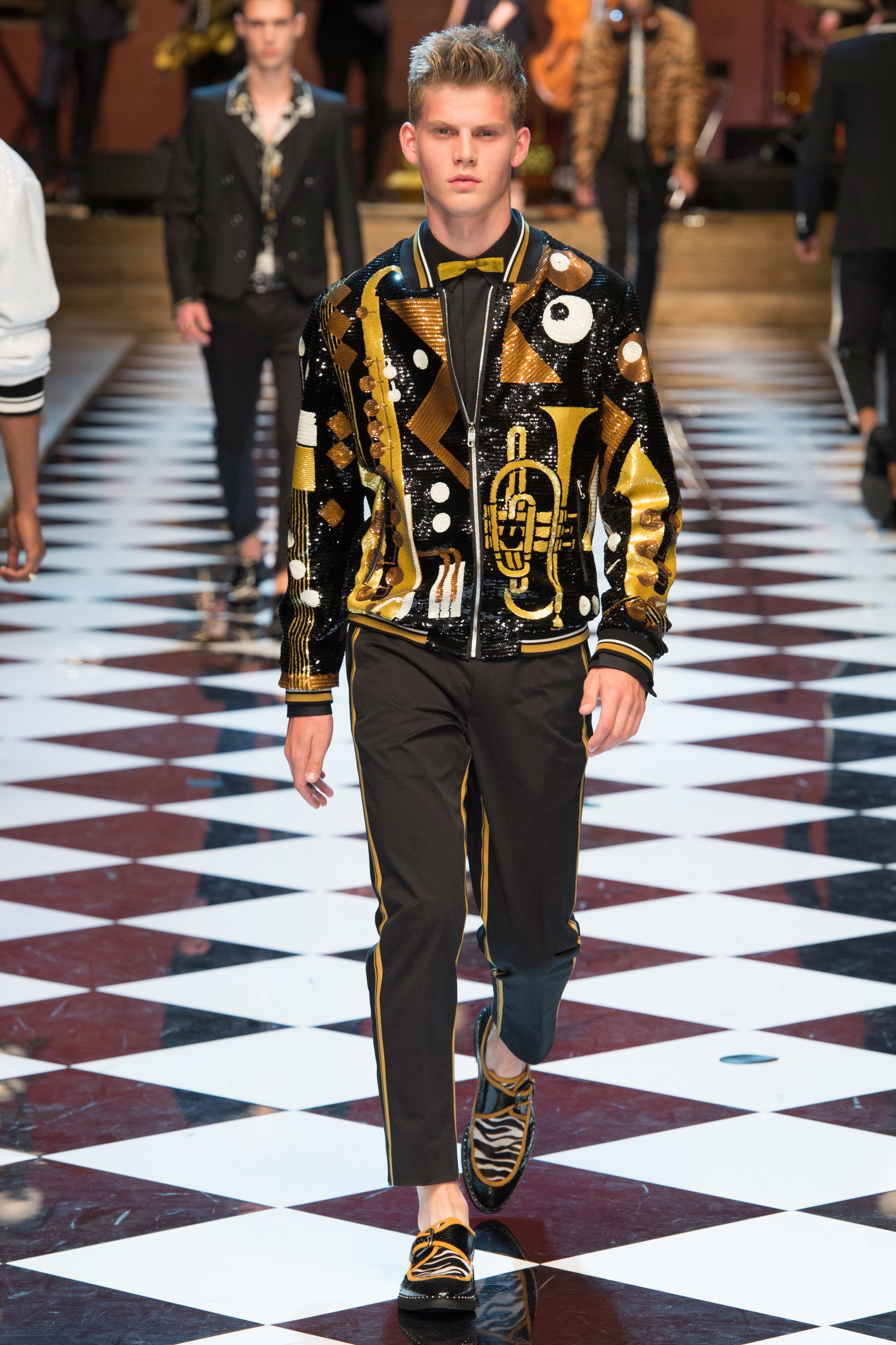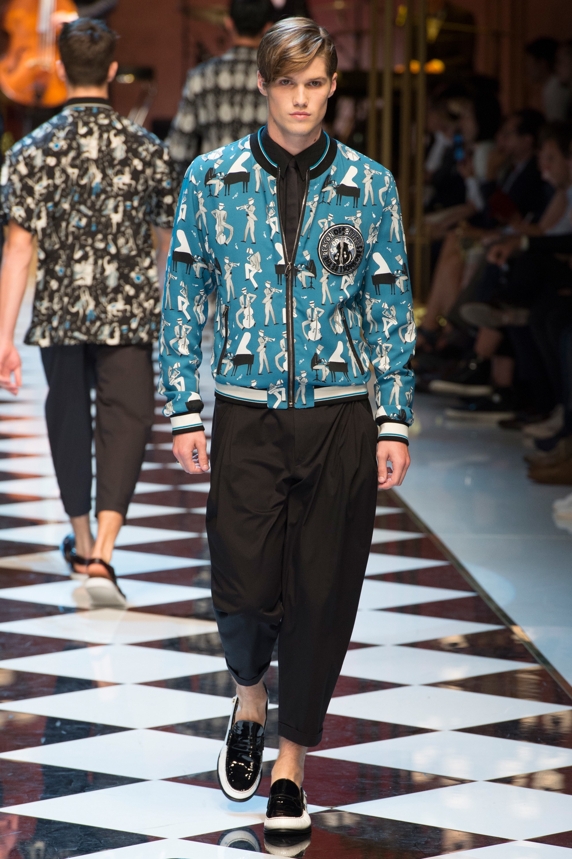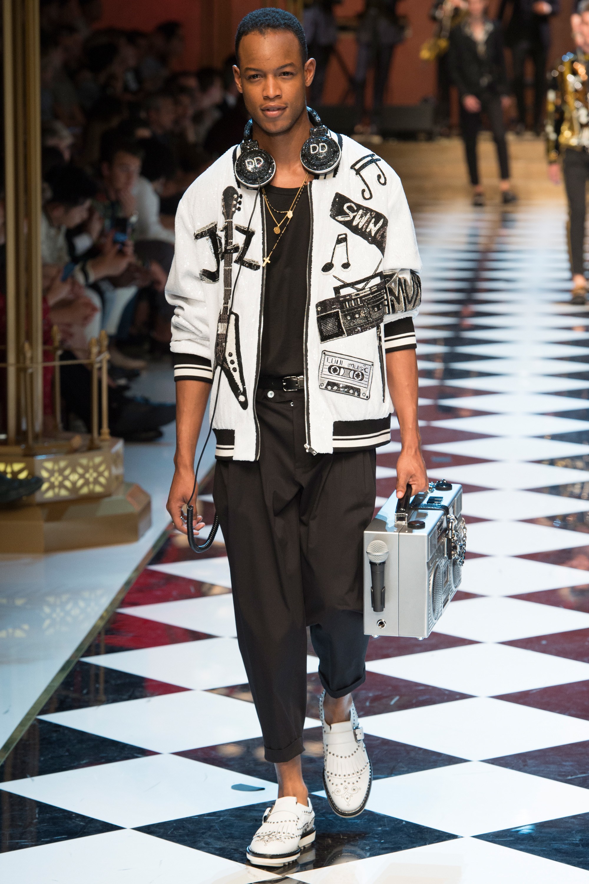 4. The collection was called “DG Musica” and contained musical references throughout, from treble clef embroideries to a printed bomber with illustrations of jazz musicians.