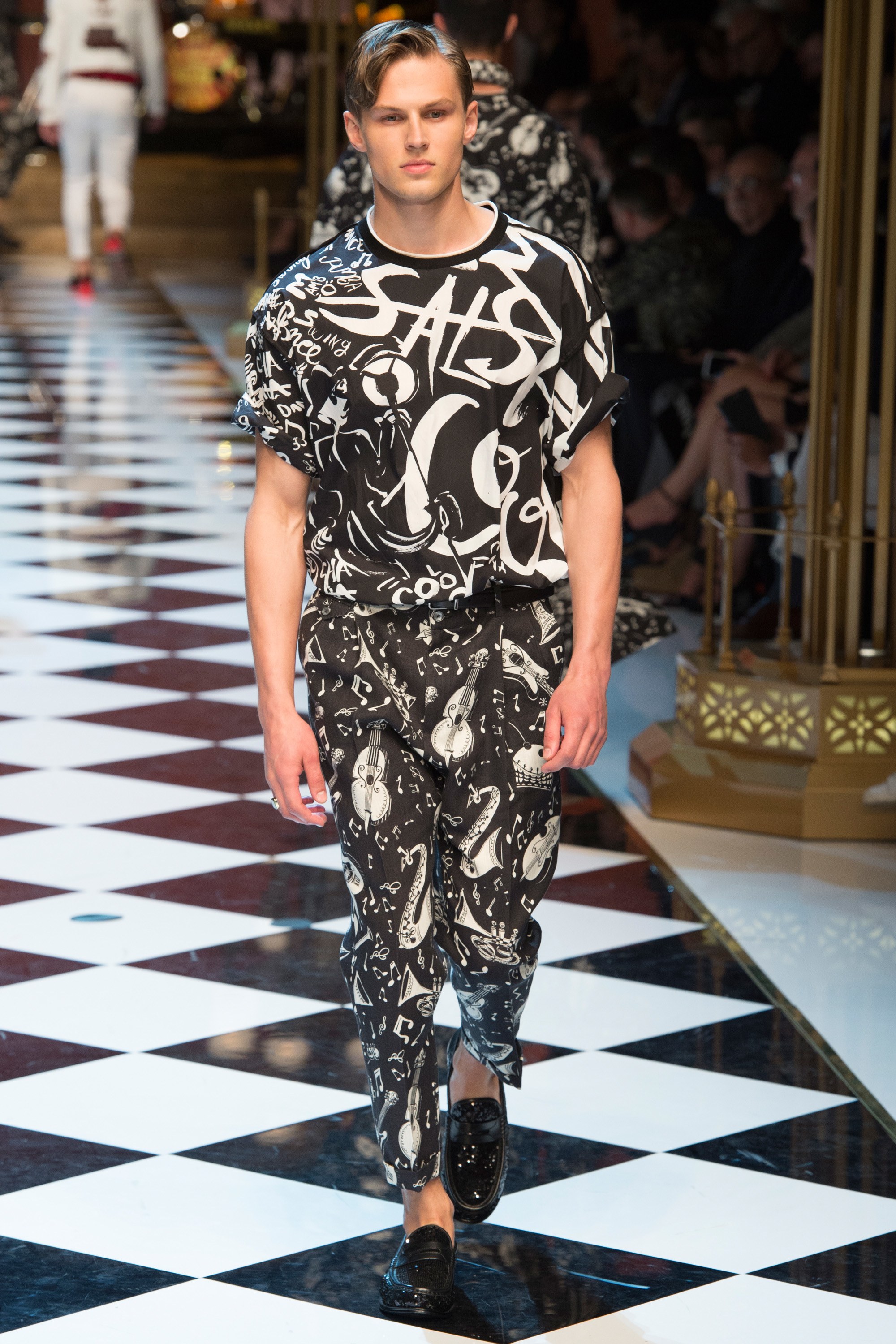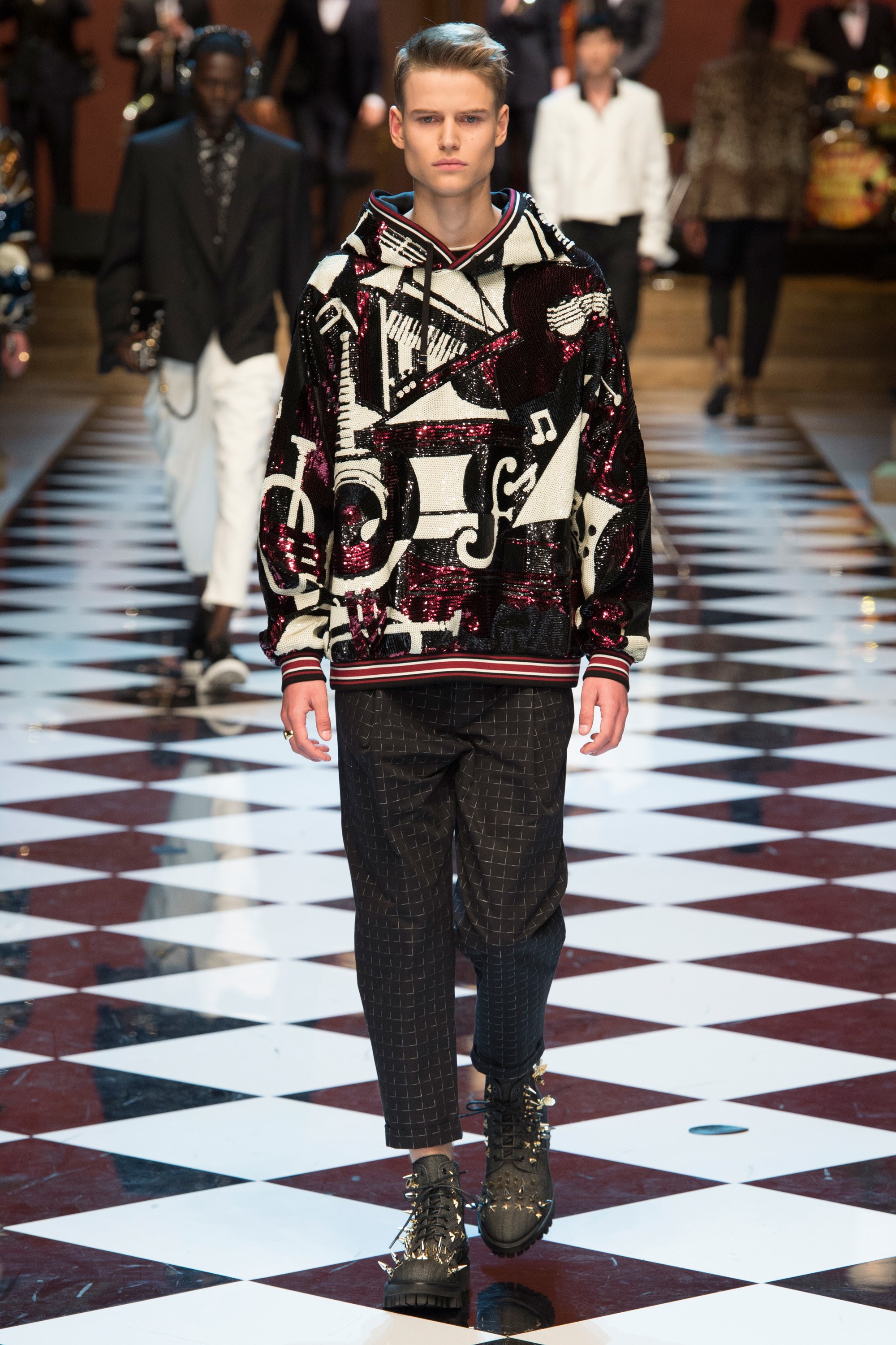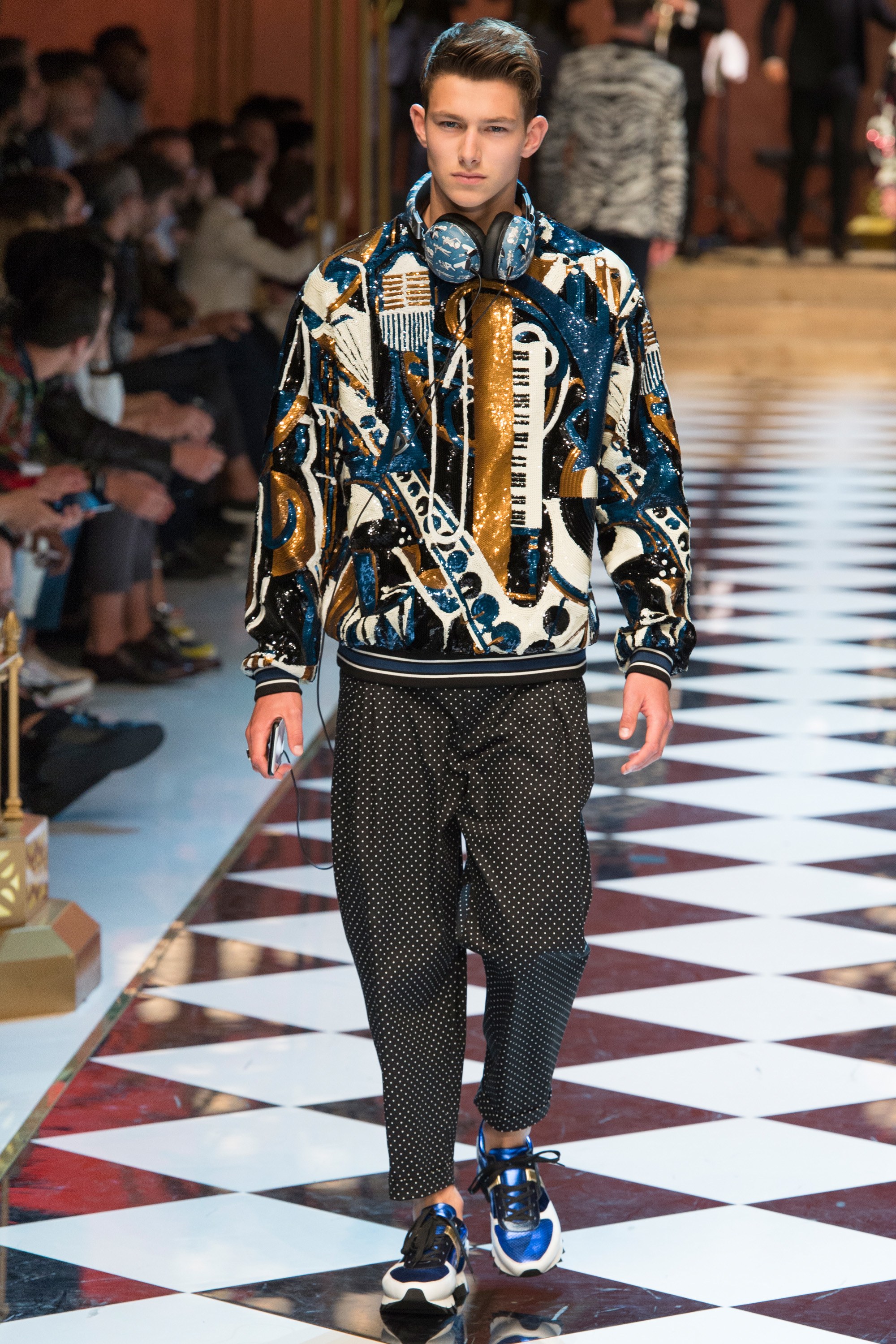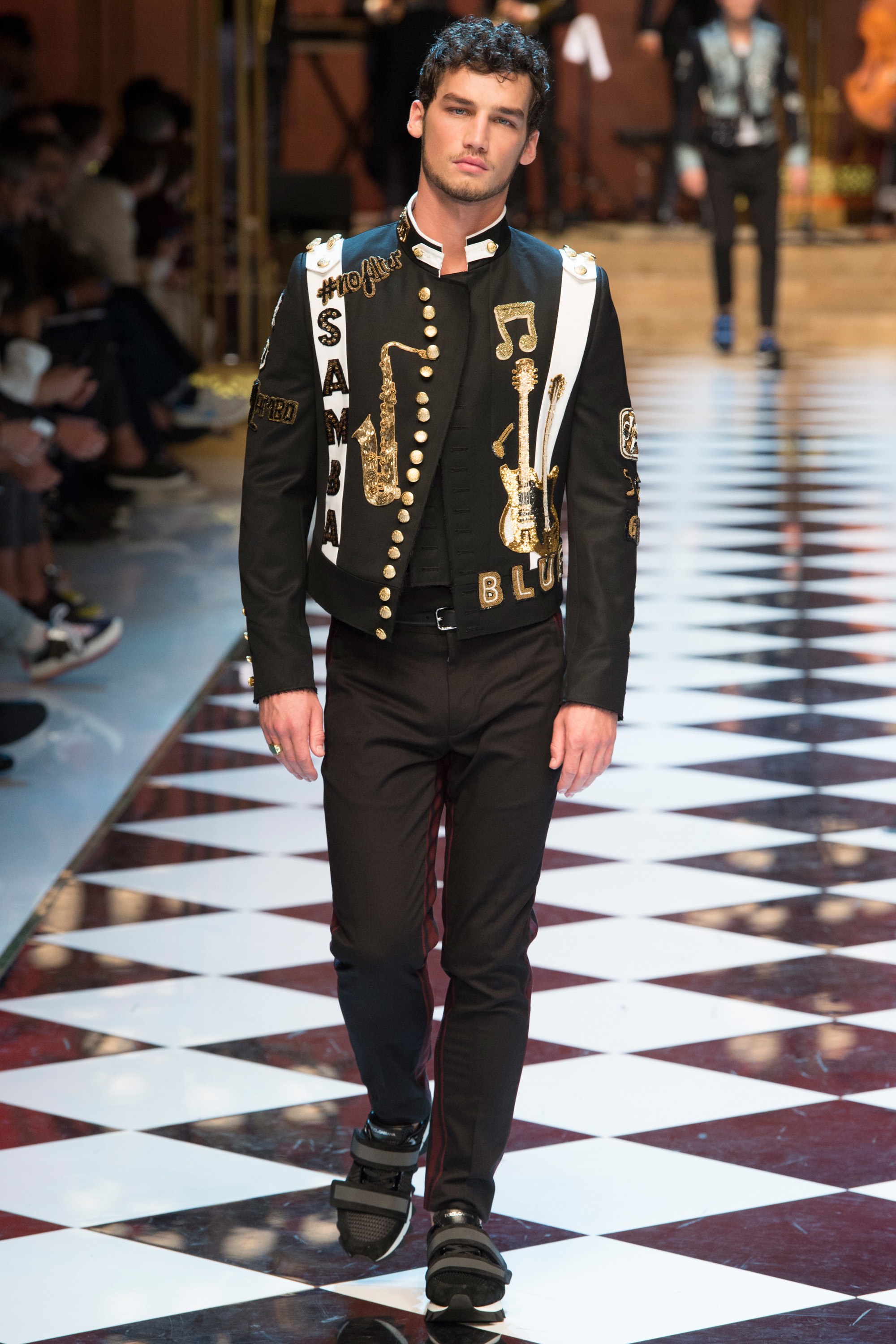 4. The collection was called “DG Musica” and contained musical references throughout, from treble clef embroideries to a printed bomber with illustrations of jazz musicians.
