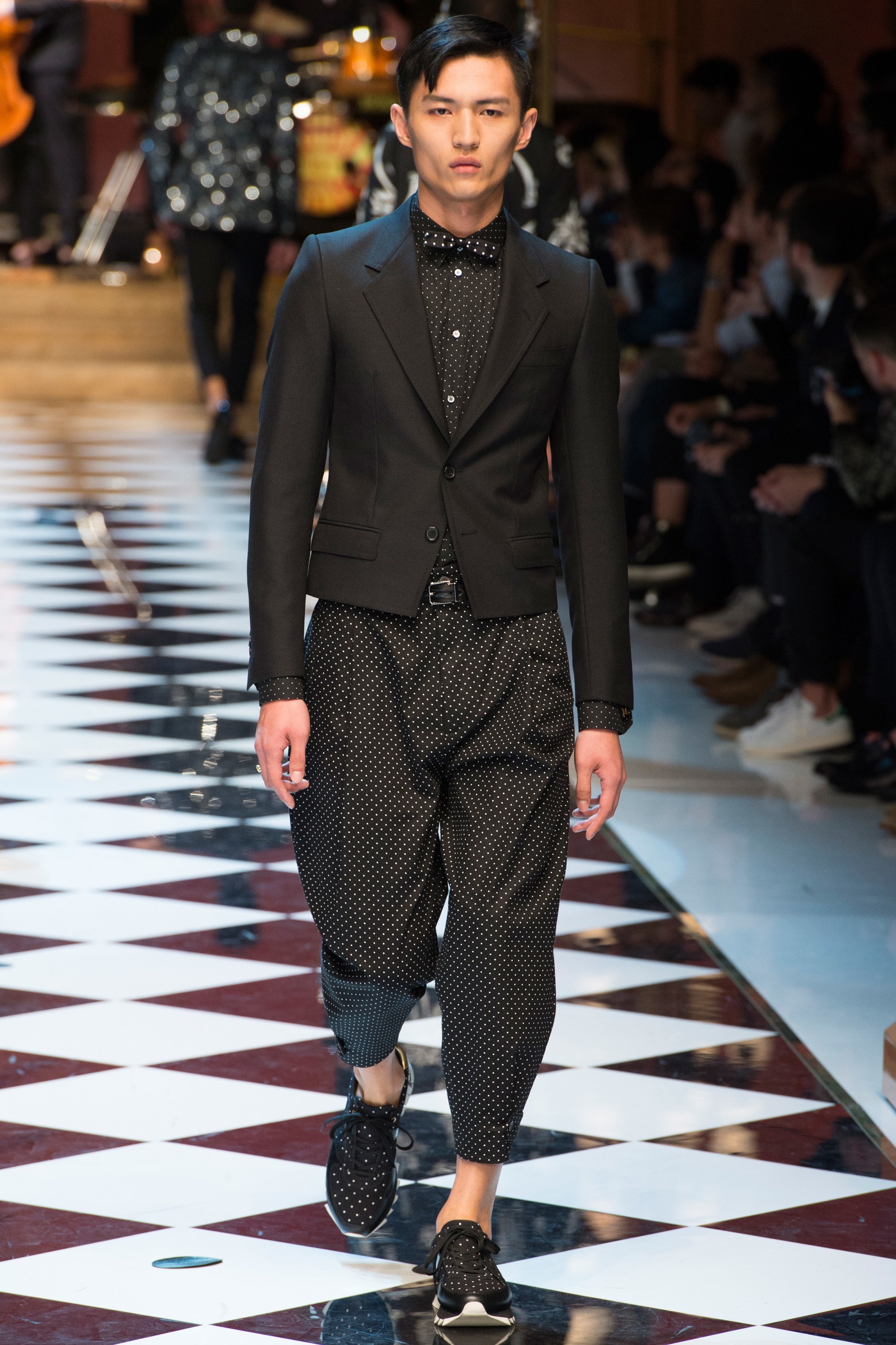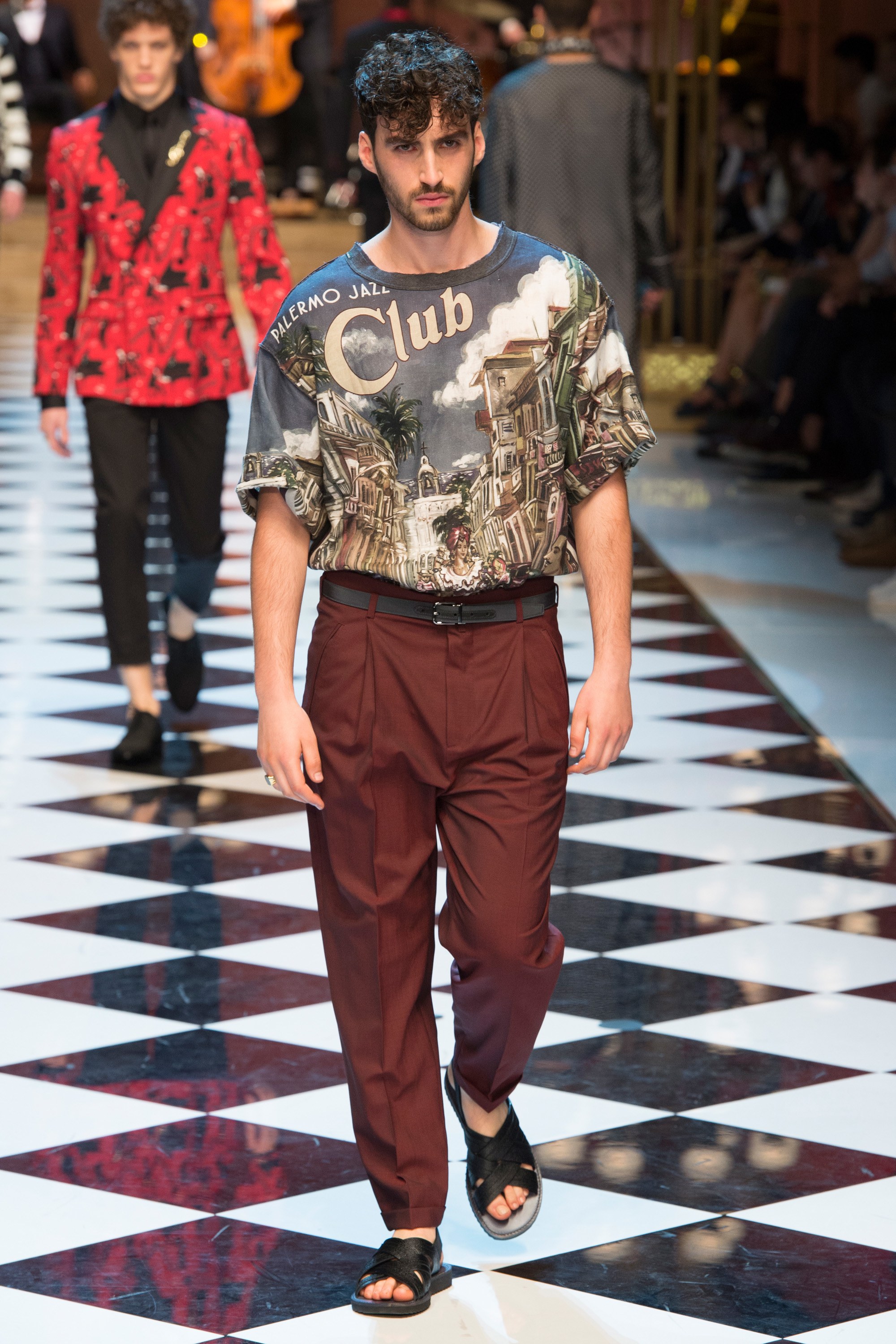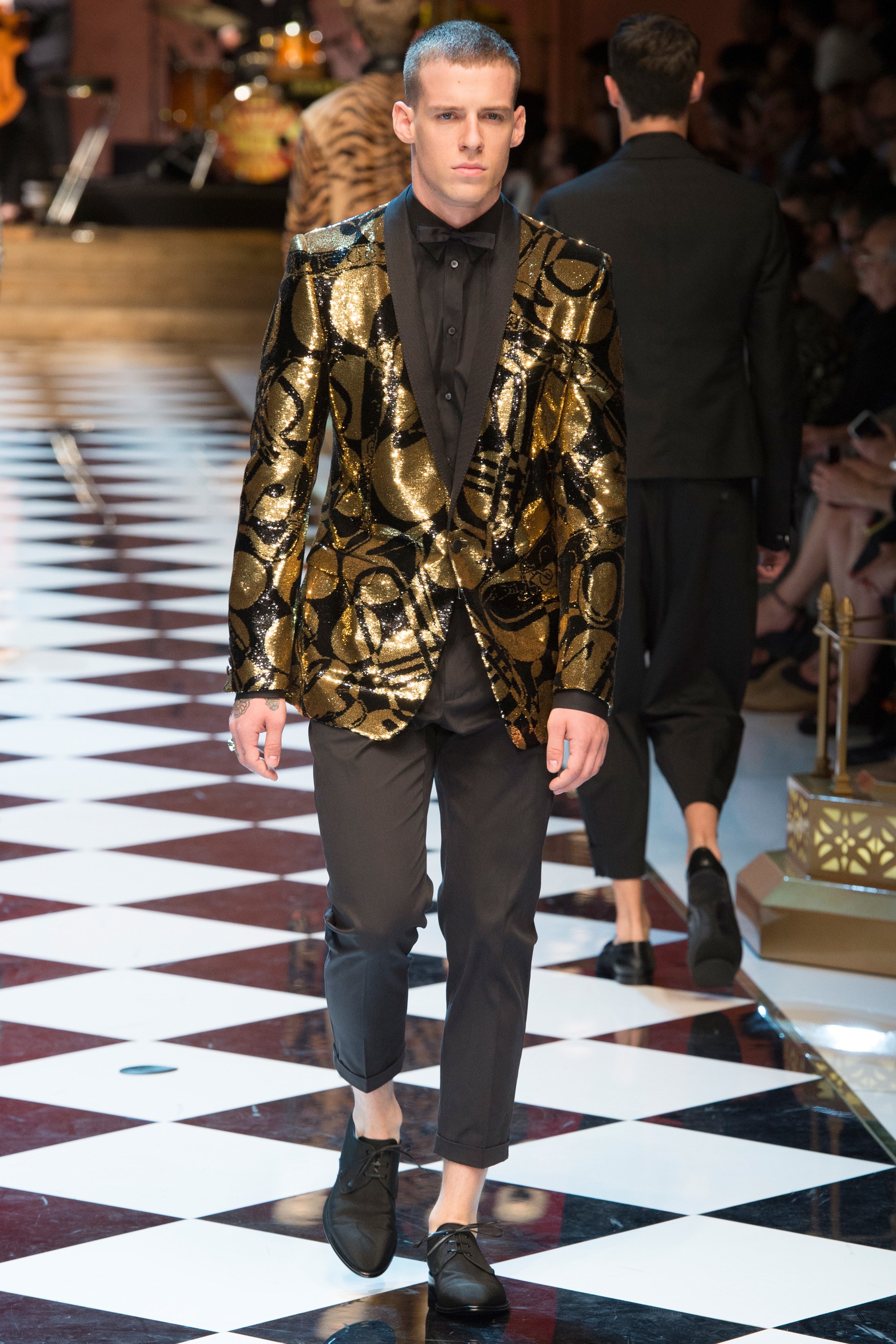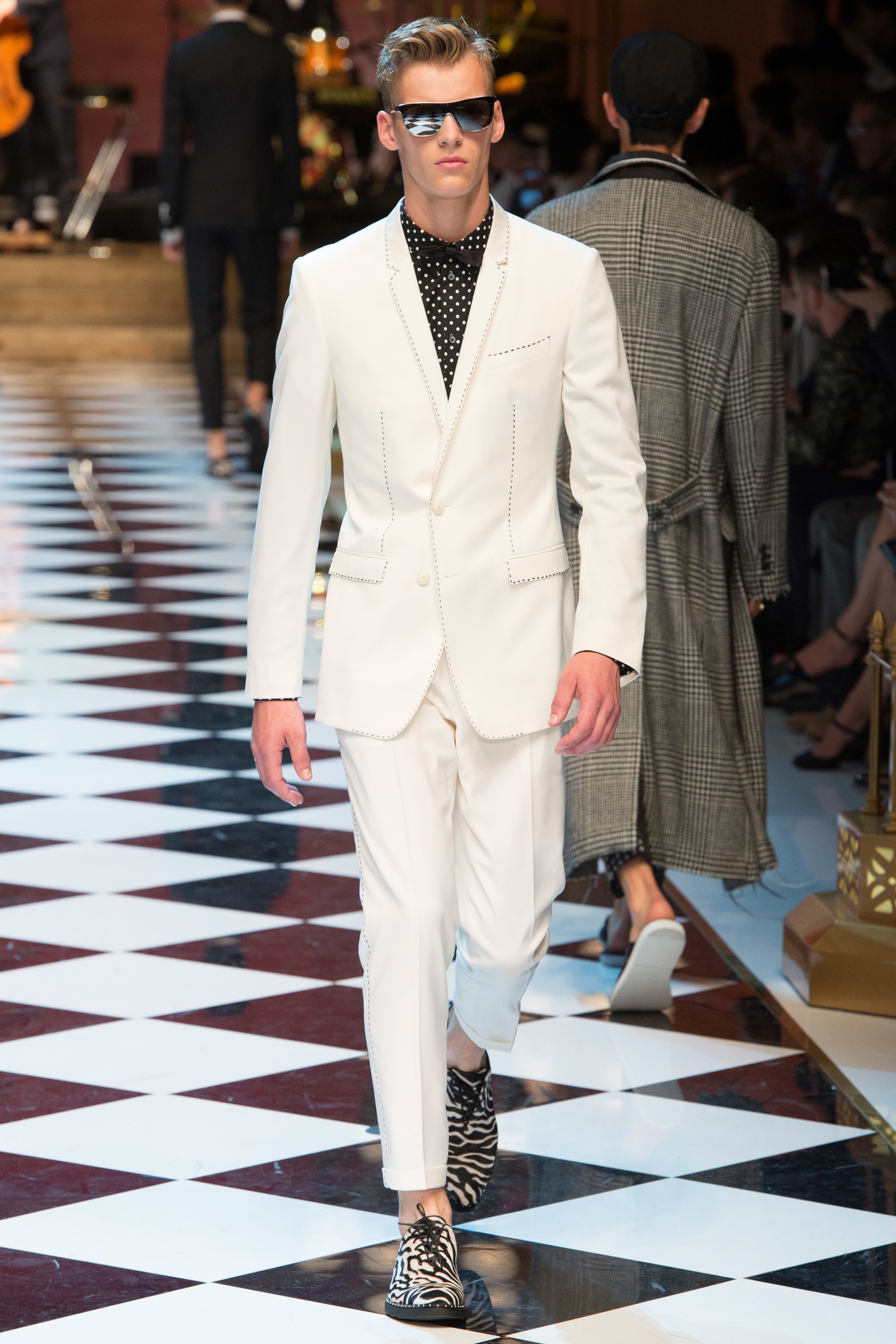 Dolce & Gabbana presented their Spring 2017 menswear collection in Milan today, and like any Dolce & Gabbana production, this one was filled with buzzy moments. From the front row stars to the models to the clothes themselves, there’s a lot to talk about from today’s show.