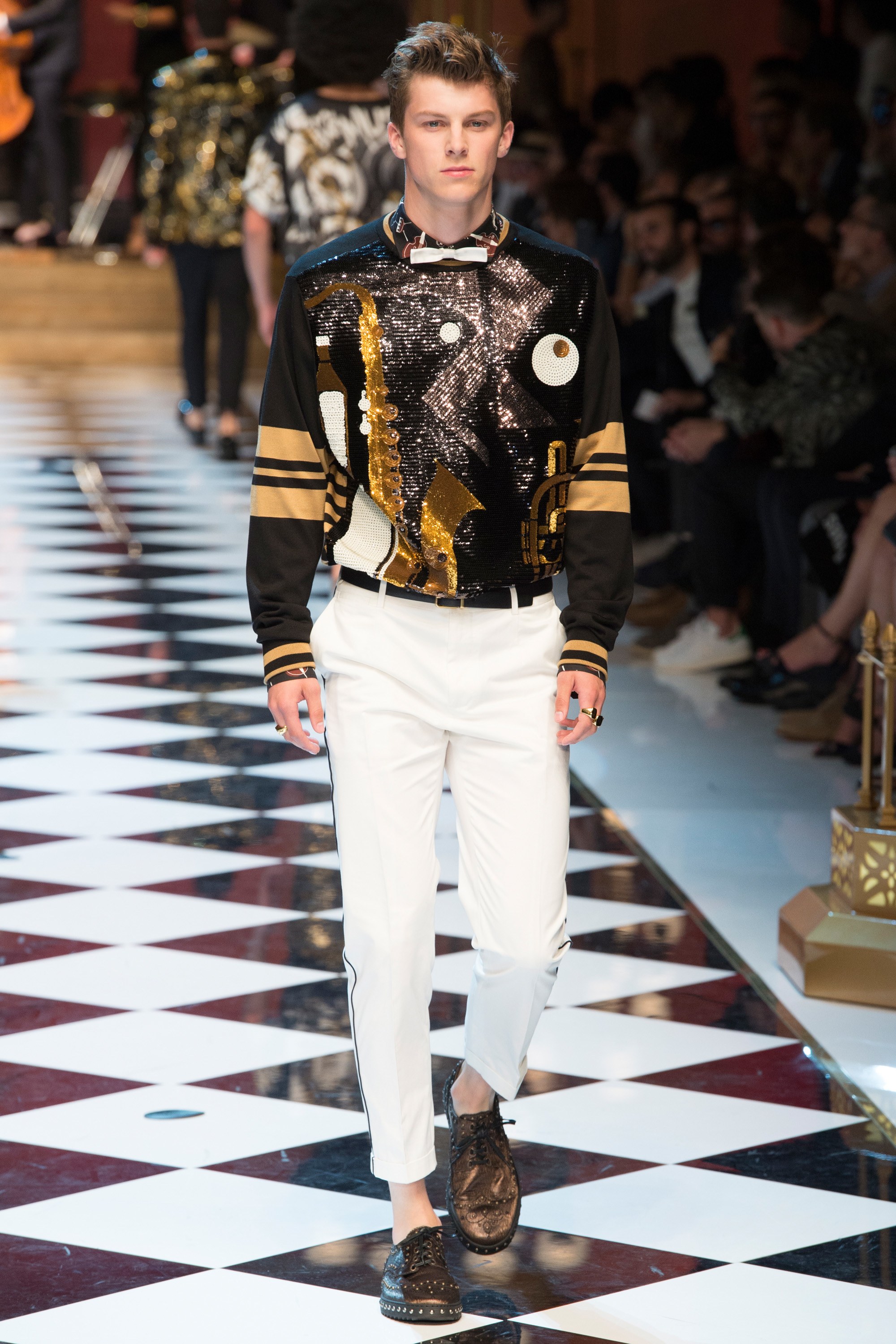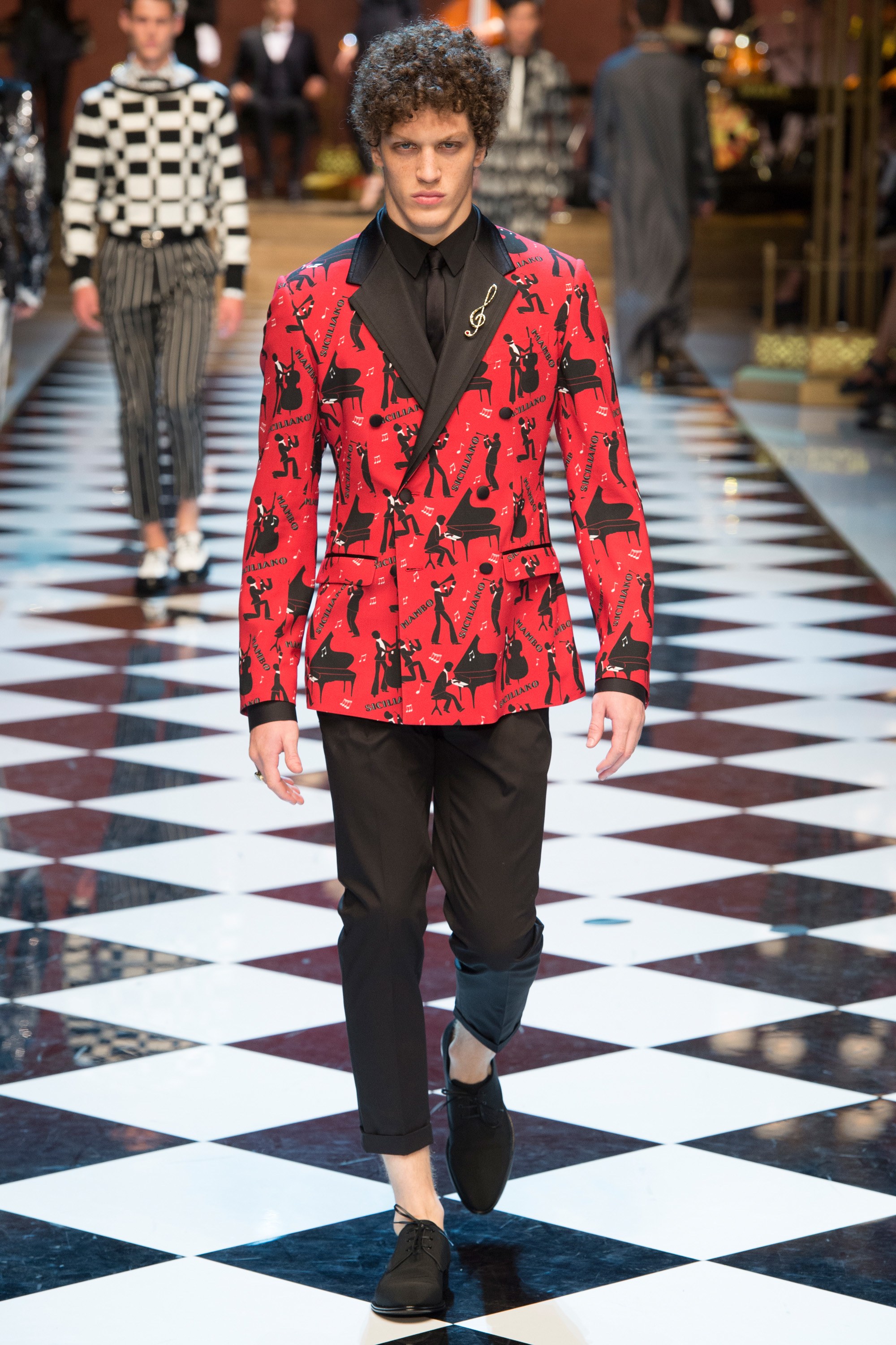 4. The collection was called “DG Musica” and contained musical references throughout, from treble clef embroideries to a printed bomber with illustrations of jazz musicians.