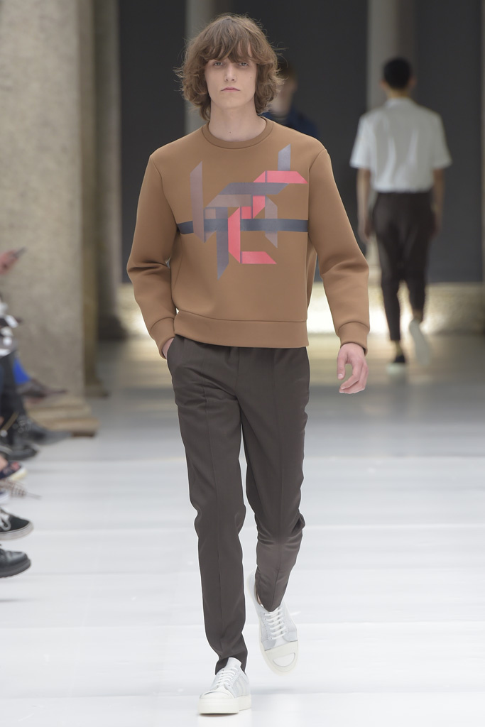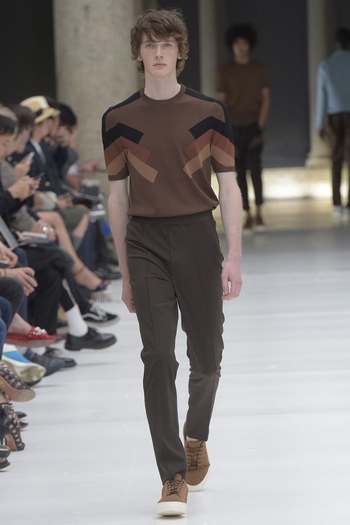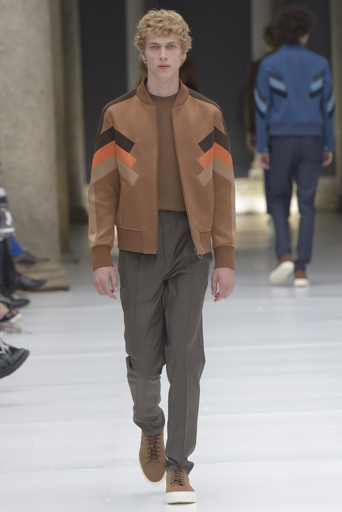 Never one to hem and haw in fashion, Neil Barrett went whole hog for Seventies Americana, as if seen from the windows of a Winnebago in Yosemite National Park.