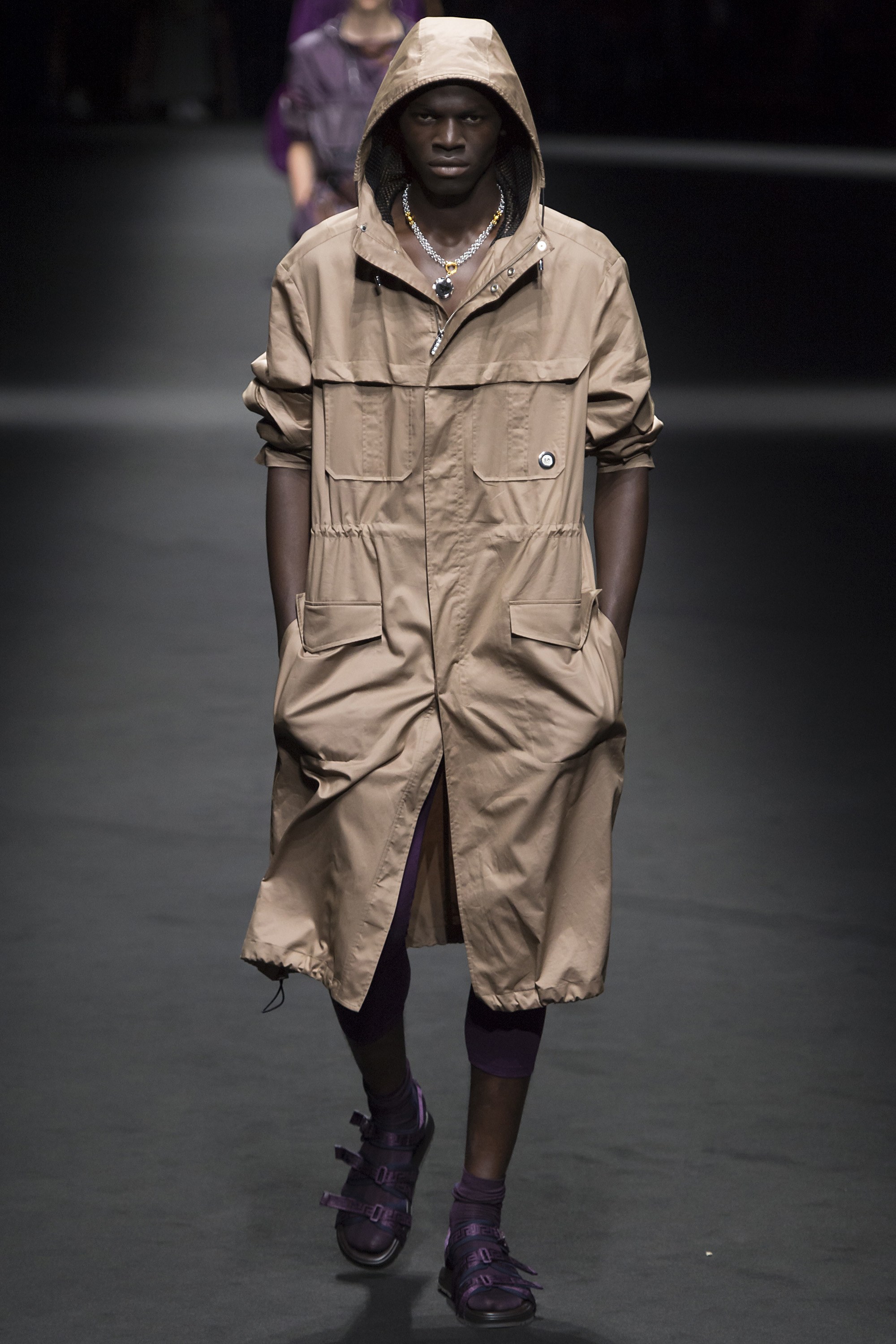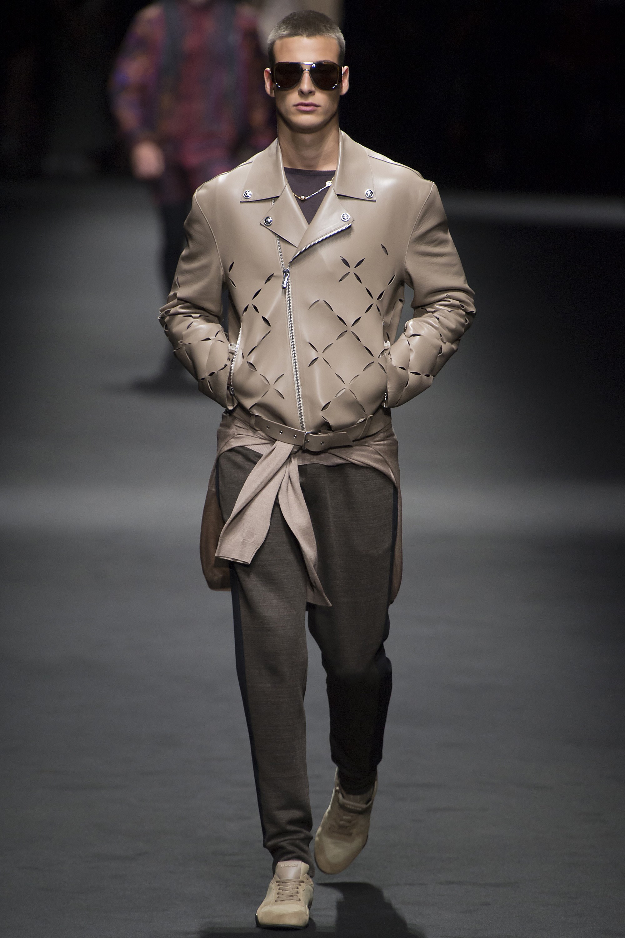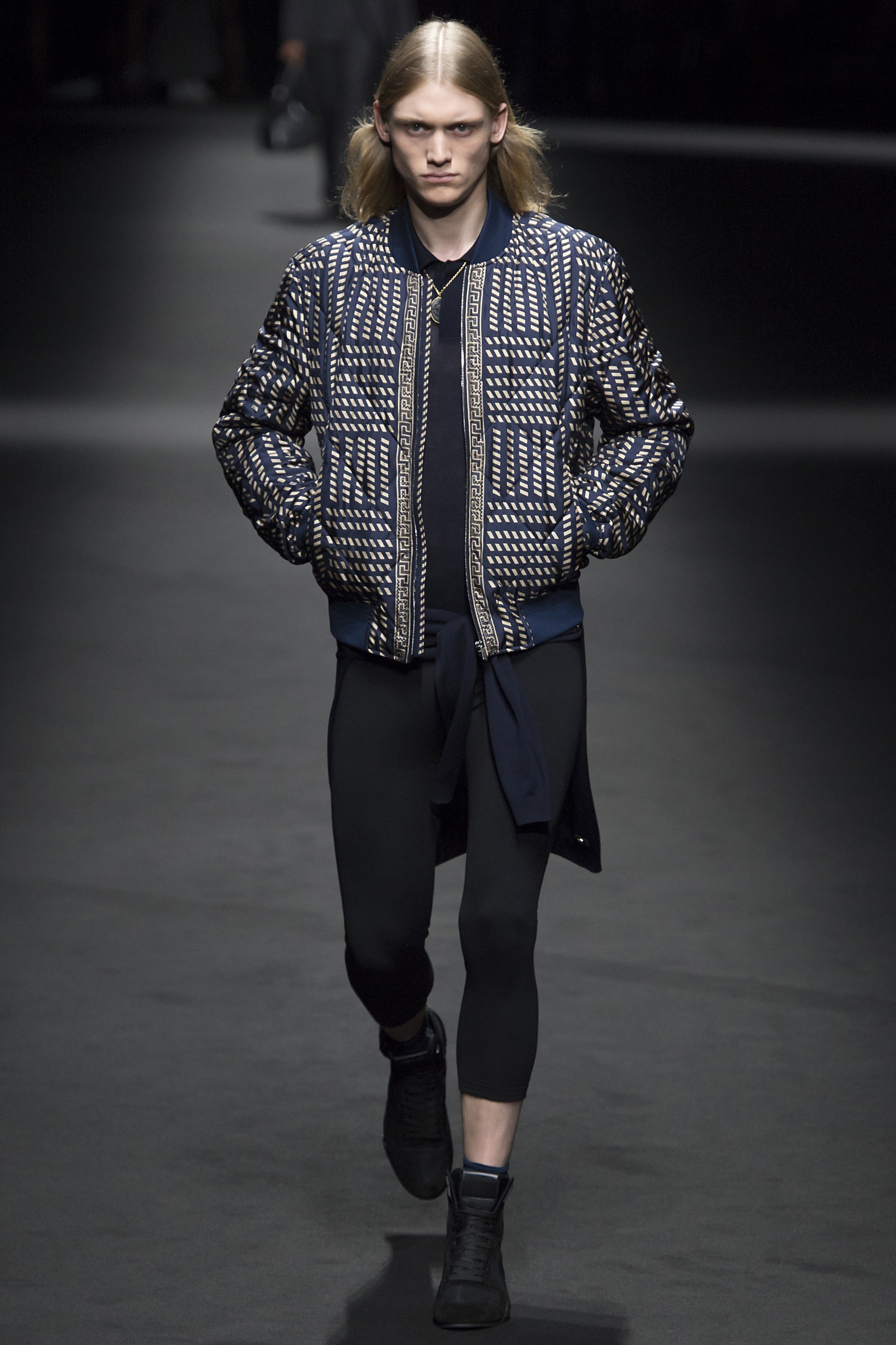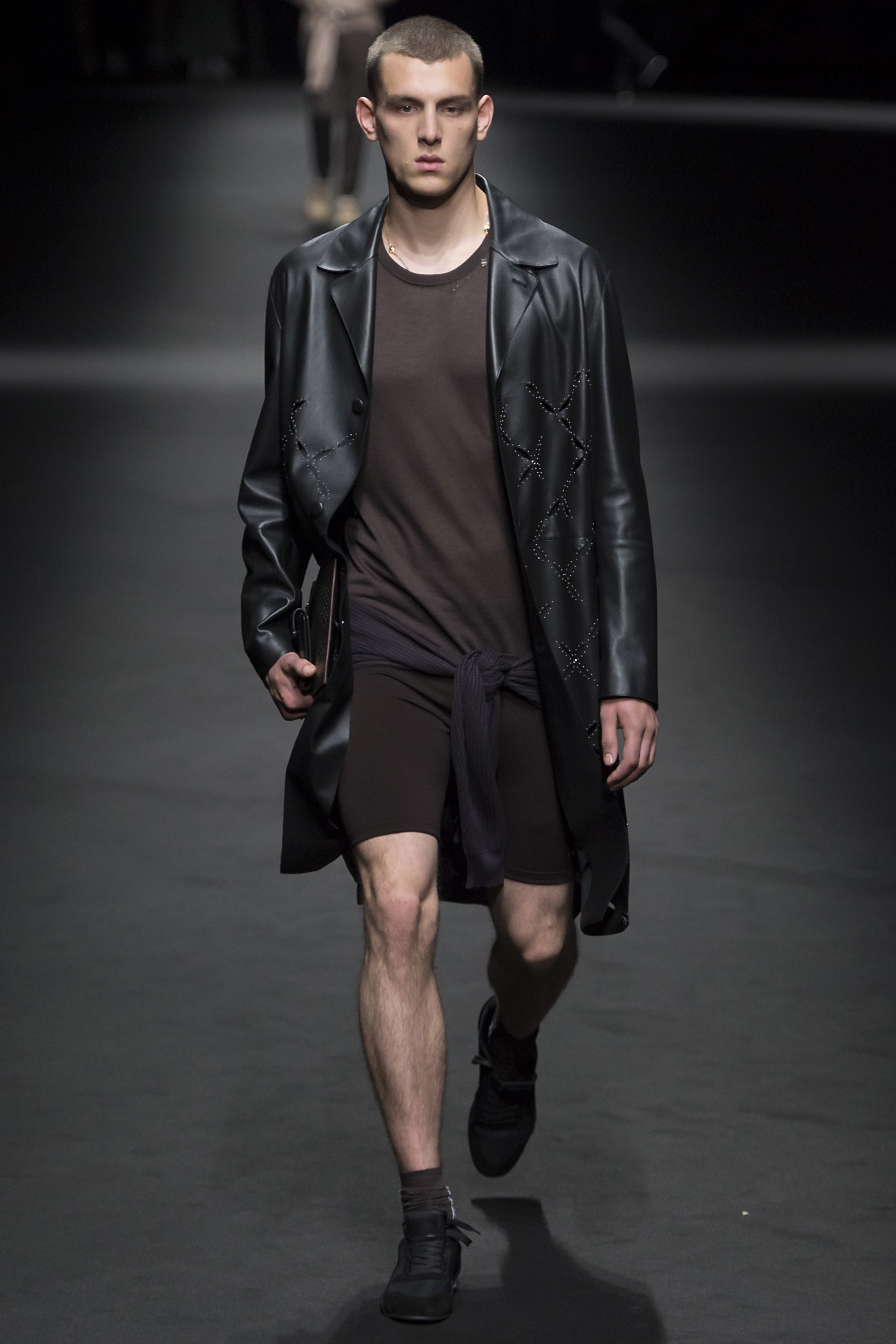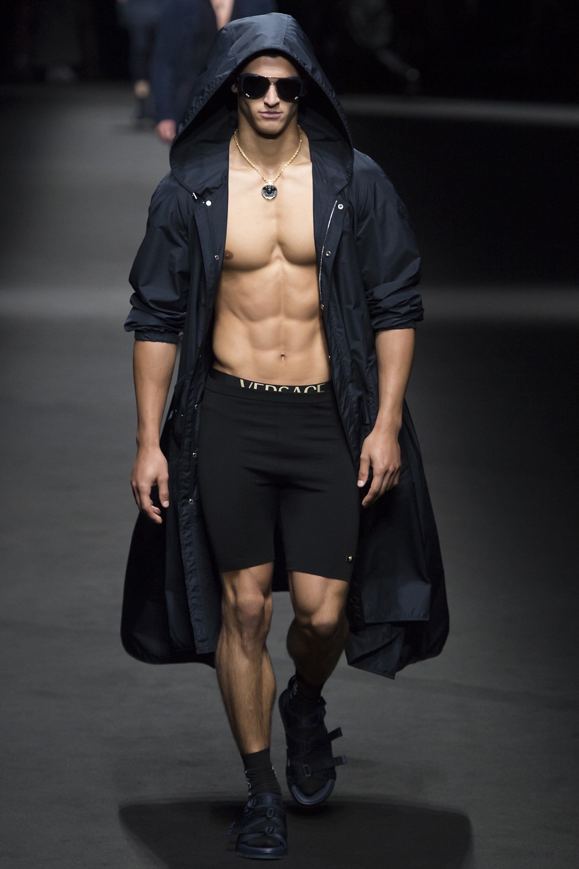 3. One can always count on a Versace show to provide a much-needed dose of hunks on the runway. For Spring, the brand opted to show off their models’ physiques with leggings and cycling shorts from the house’s new activewear line, and, in this case, no shirt. We’re not mad.