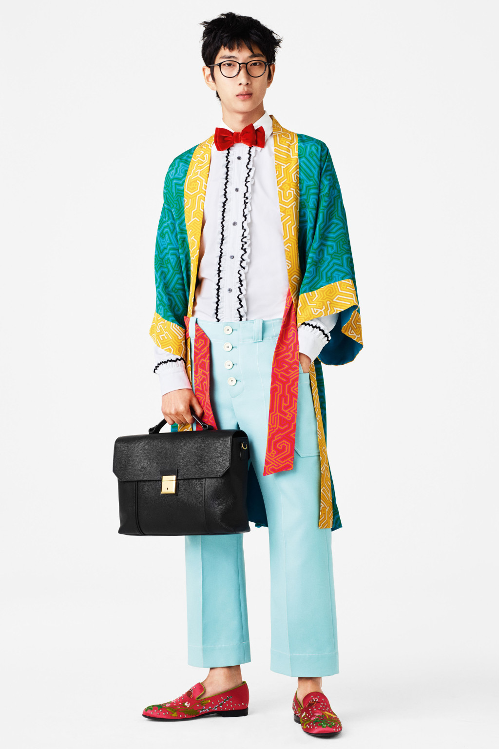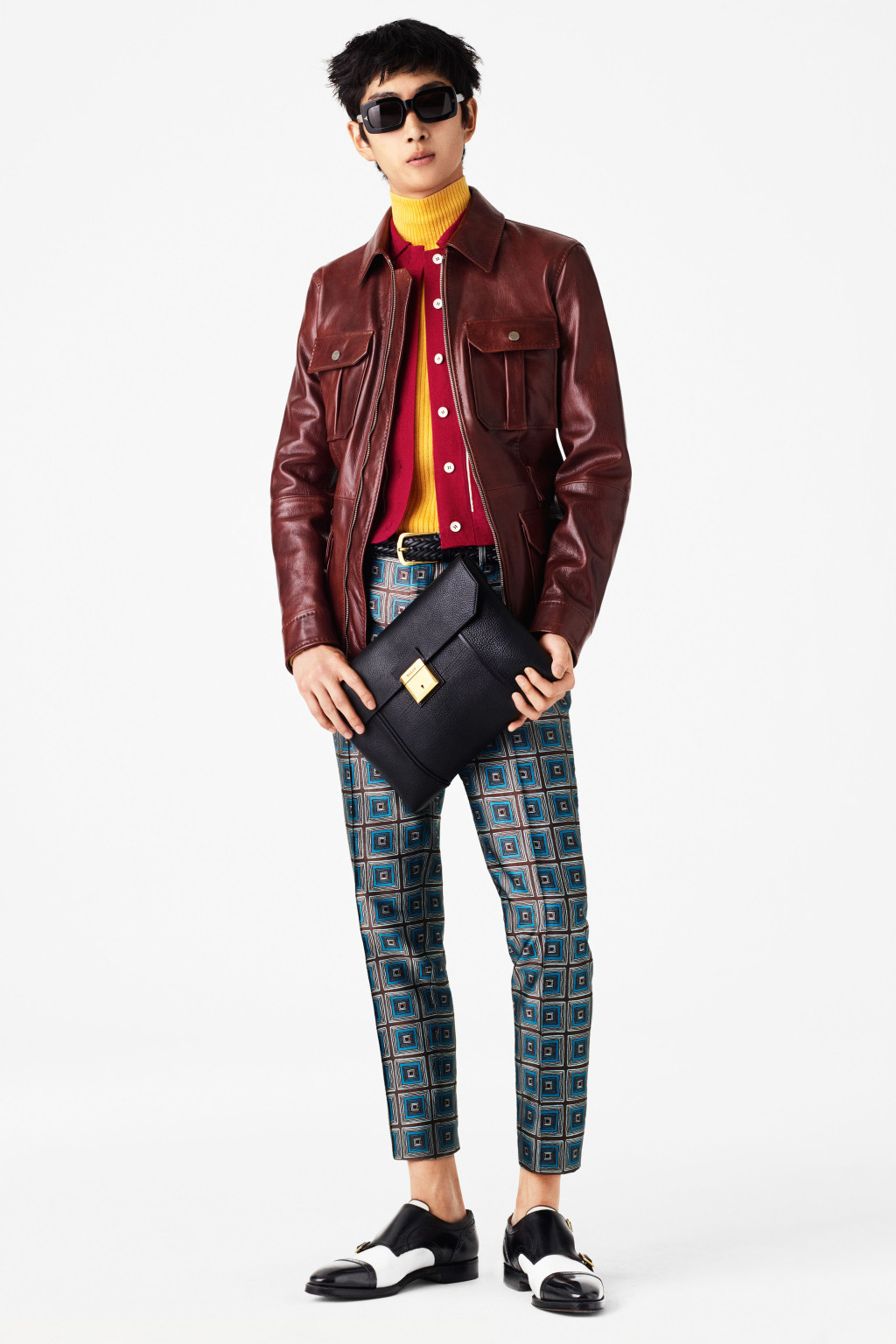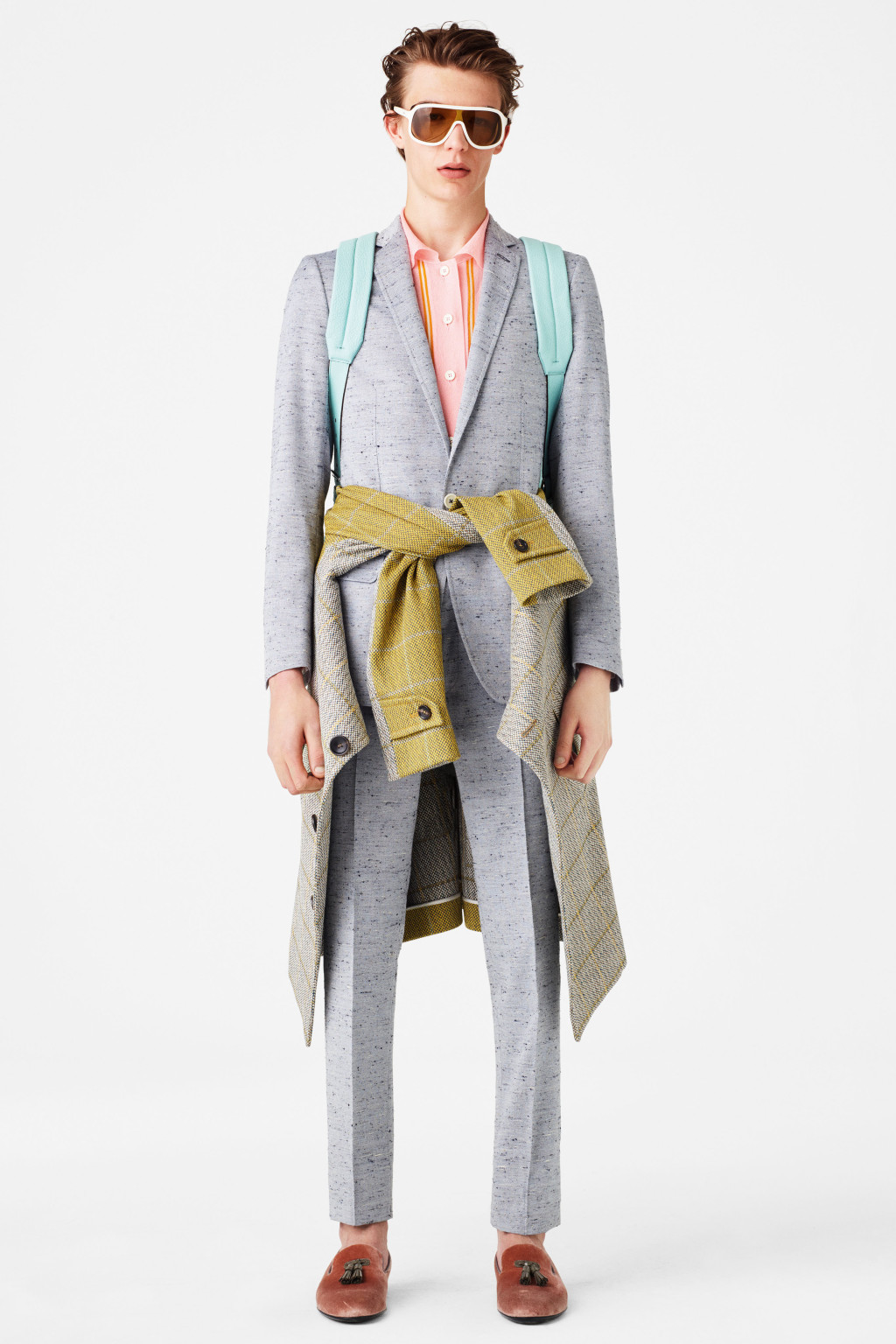 Brighter-than-bright, this collection came in a rainbow of citrus hues inspired by David Hicks interiors, Sixties Mods, and the Bally archives themselves. “I never think archives should be sacrosanct – it’s good to look at them, and then play around with them,” said designer Pablo Coppola, who also looked to Seventies sportsmen and Studio 54.
