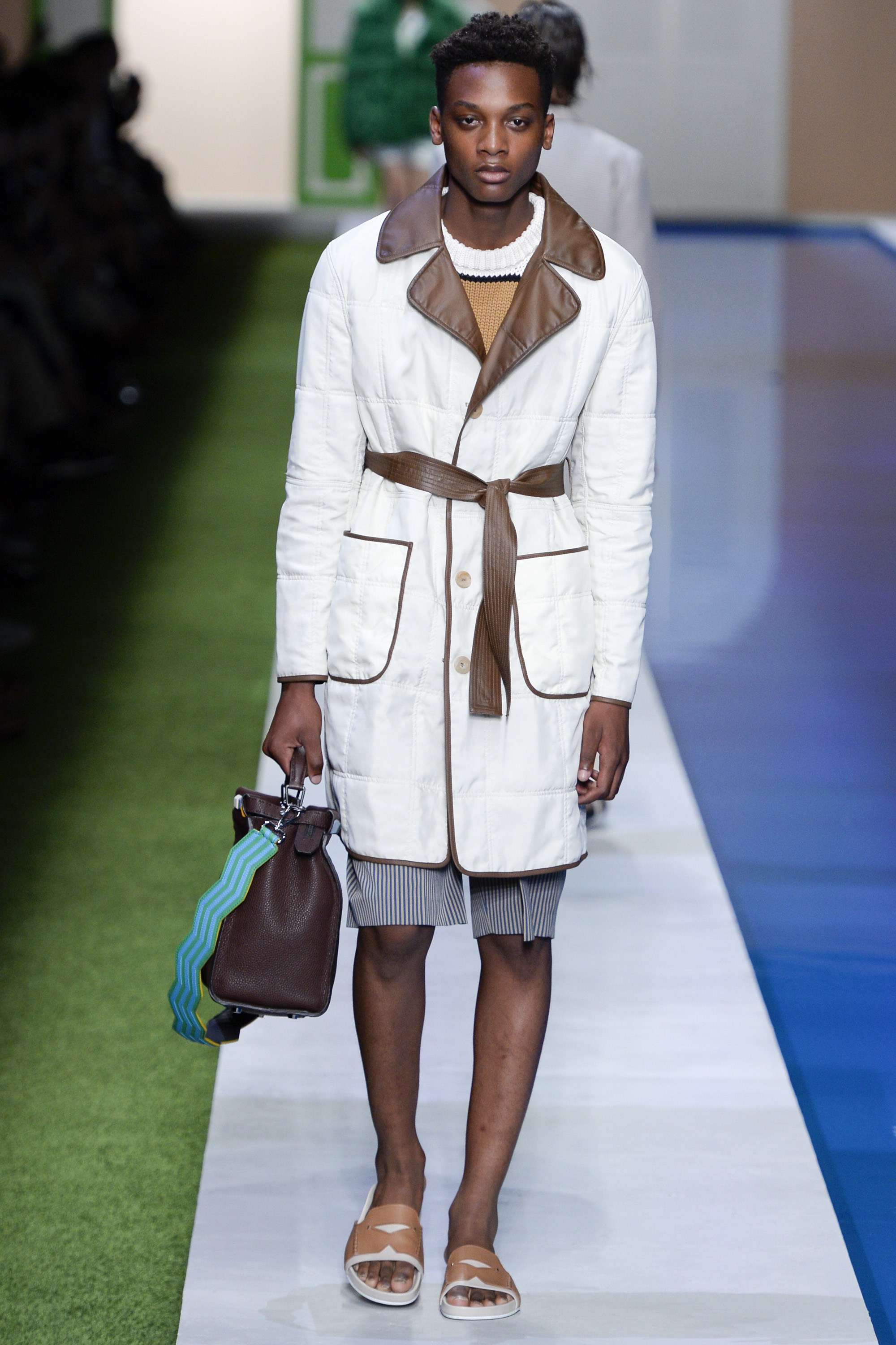 “Sun and fun,” Silvia Venturini Fendi said backstage, wearing a pajamalike shirt in the same painterly stripes she applied to tote bags and cabana shirts that reversed to white terrycloth. She was waiting for someone to ask her if the latter fluff was shearling.