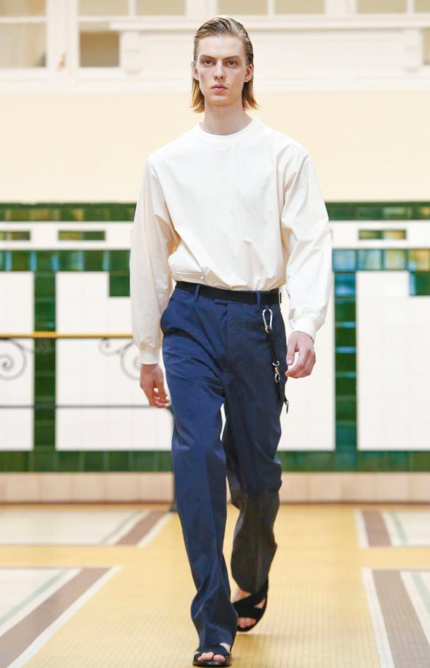 Welcome to Paris Fashion Week presnting Spring/summer 2016 Menswear Collections of the best fashion houses in Paris. Today started with Lemaire founded in 1991, exposing clean cut line, soft coloring palette, showing off long cut Muslim shirts robes type, clean jackets, long coats, trousers with beautiful sandals.
