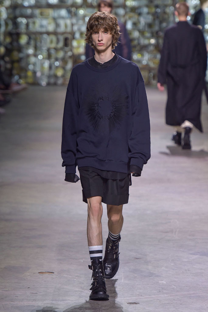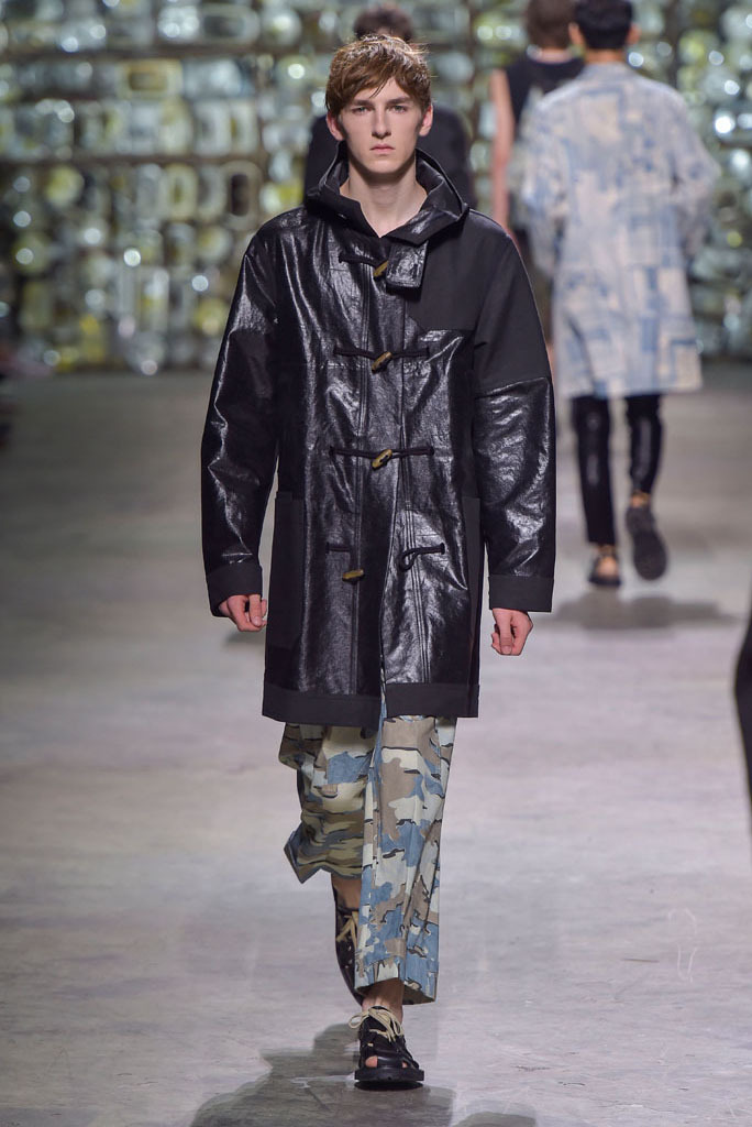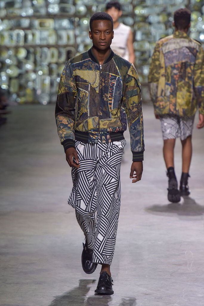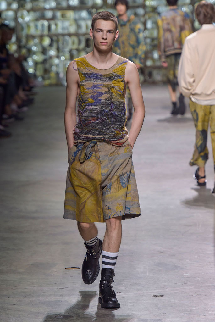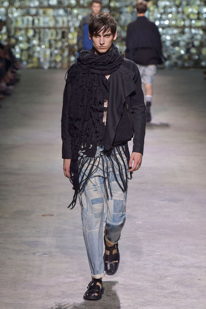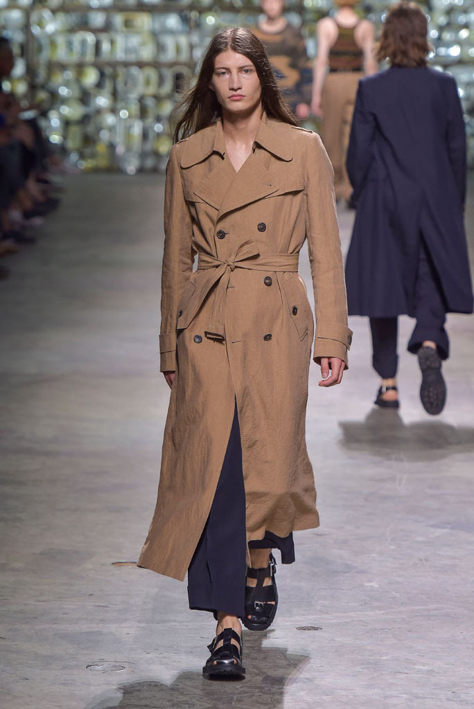 Van Noten was at his best when he played with hybrid looks: Rendering tank tops as knitted sweaters minus the sleeves, or mixing panels of tapestry prints with metallic technical fabrics to produce sporty-cool jackets. The juxtaposition between smooth surfaces and rough, unfinished constructions, meanwhile, has been a growing trend this season.