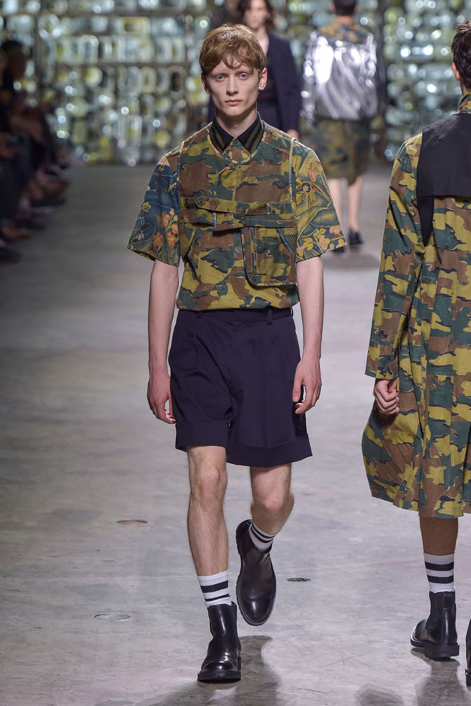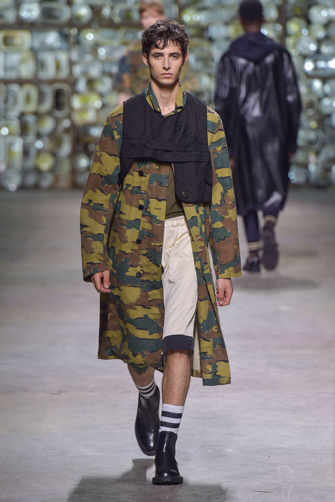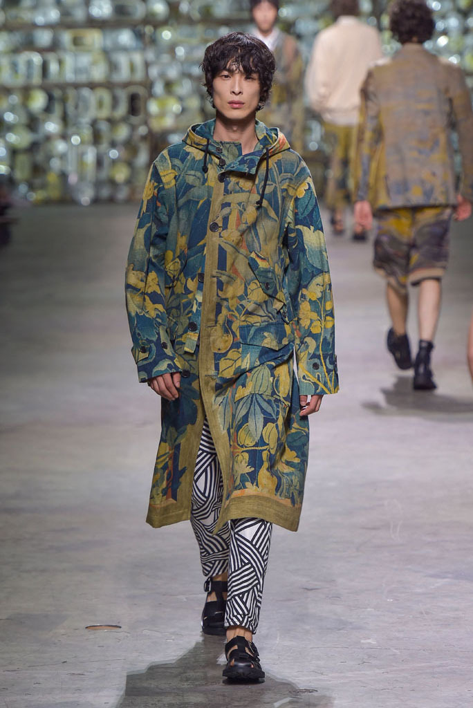 Belted trenchcoats and high-waisted full-length pants, some of which had enough leg-room to fit two in, were familiar categories but still compelling ones — the type that have blessed the designer with a loyal following. There was a whiff of soft military, too, as the prints gradually grew into camouflage patterns, as seen on cropped carrot pants and utility jackets. To contrast, it was unclear where the designer was heading with a series of outerwear options boasting long fringy tassels, clearly inspired by Kelmscott’s noble interior but which would be unlikely to jibe with the cool kids on the streets.