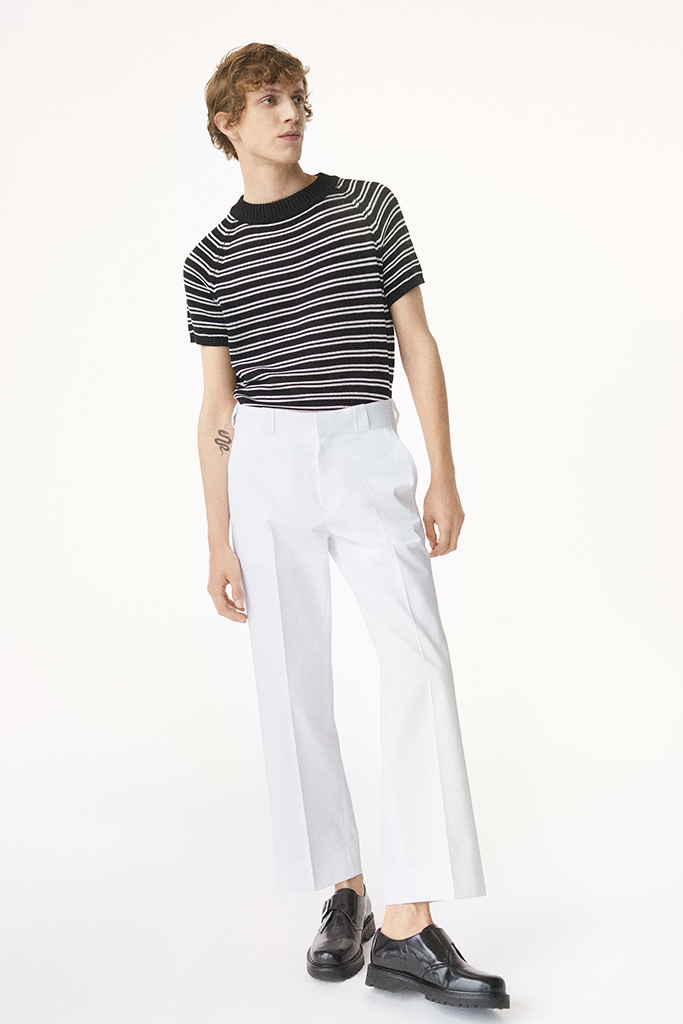 Ilan Chetrite channeled a nautical vibe with his spring collection for Sandro, with wide ankle-length pants and striped short-sleeved sweaters that had a whiff of the Forties — think Gene Kelly in “Anchors Aweigh.”