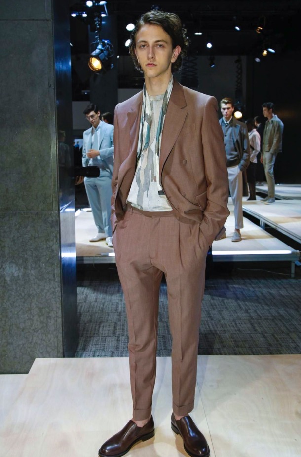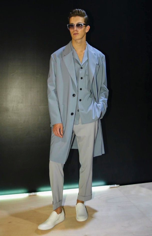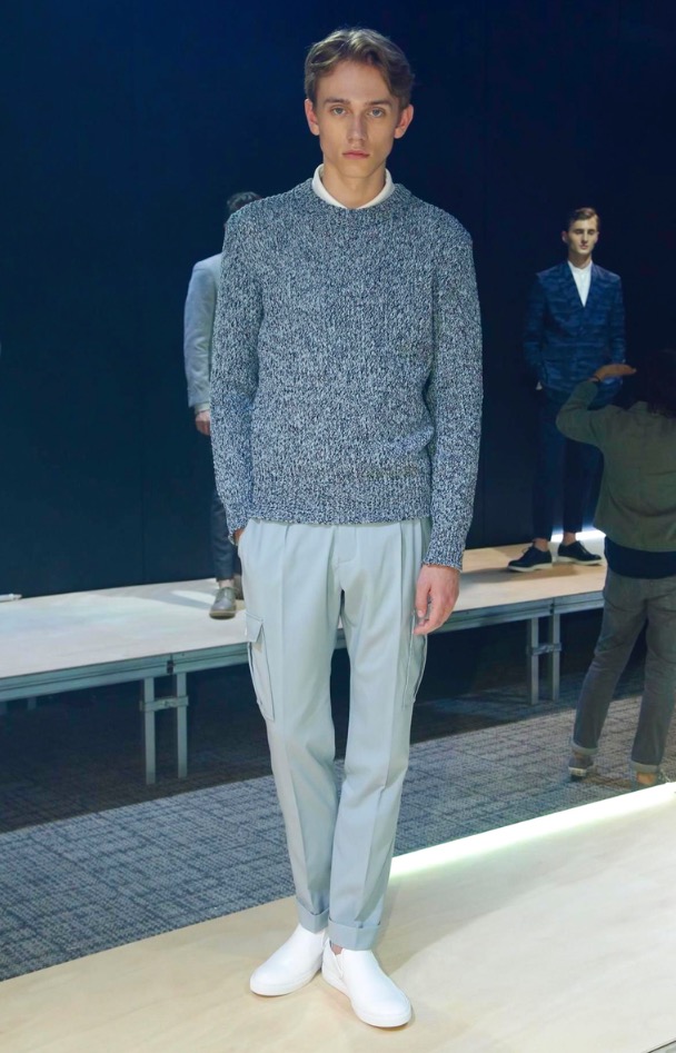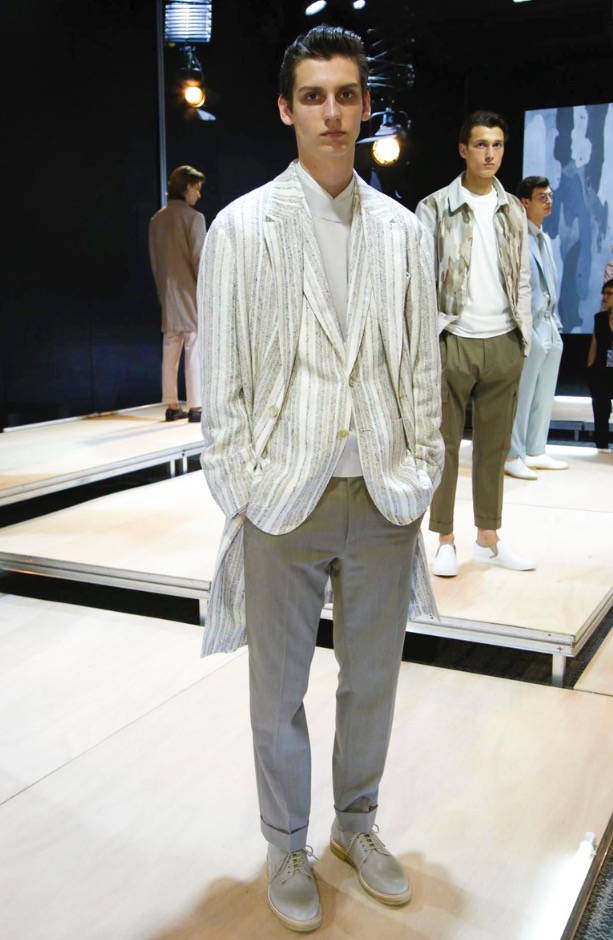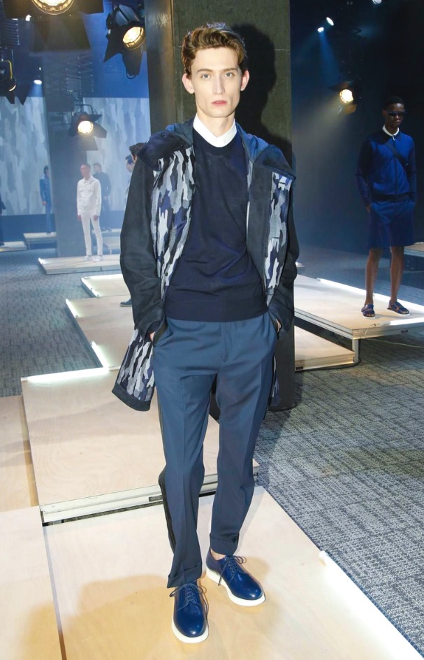 Jason Basmajian shows off a fashion pesentation of Cerruti Menswear Spring/Summer 2017 in Paris Fashion Week. Including sportswear, tailoring, elegance garments, thos camofoliage trouser sand jacekts printed with summer shades. This is a beautiful collection.