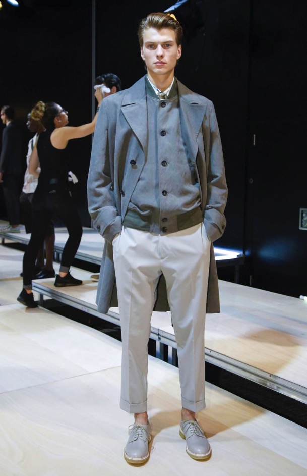 Jason Basmajian shows off a fashion pesentation of Cerruti Menswear Spring/Summer 2017 in Paris Fashion Week. Including sportswear, tailoring, elegance garments, thos camofoliage trouser sand jacekts printed with summer shades. This is a beautiful collection.