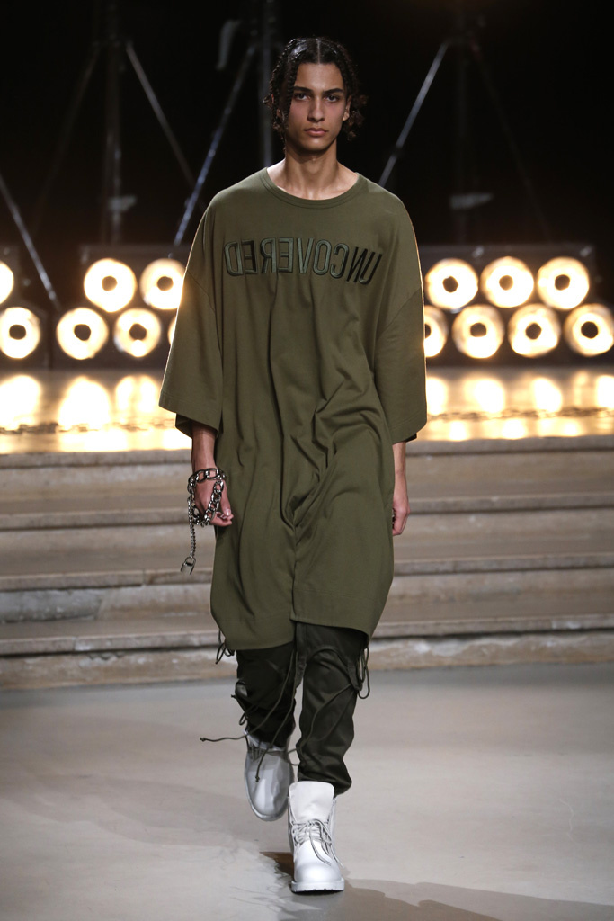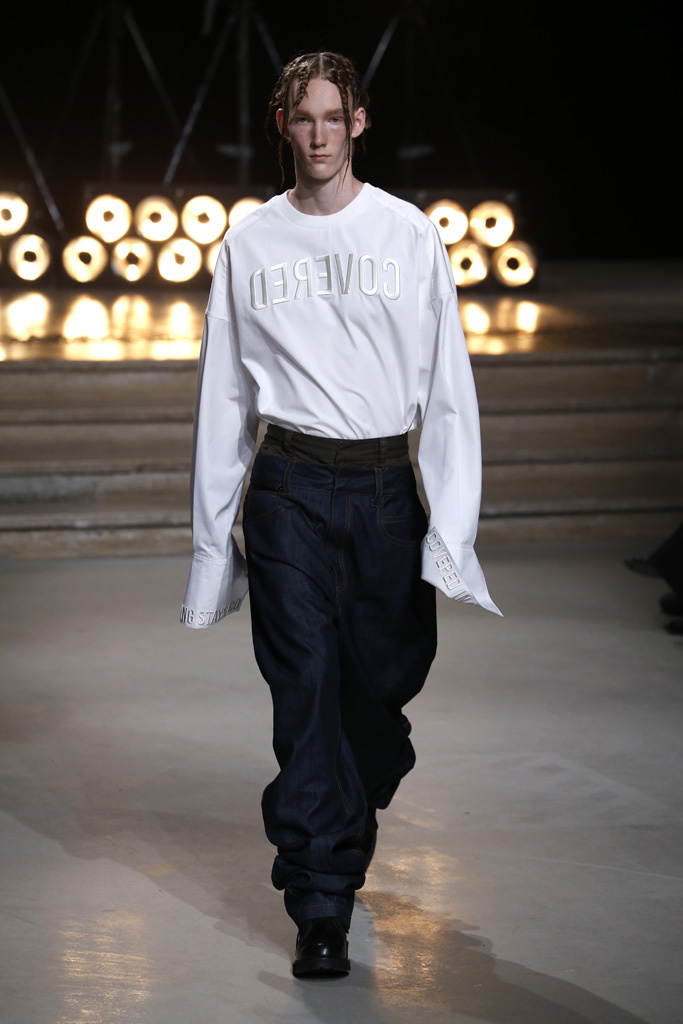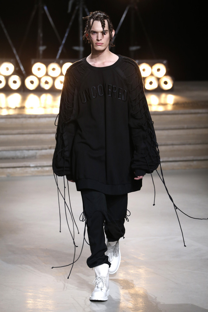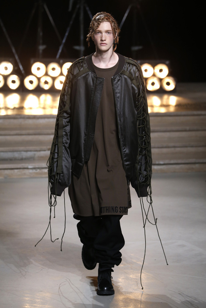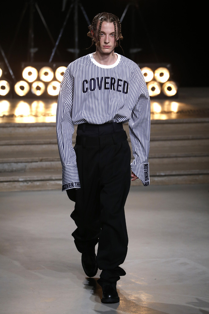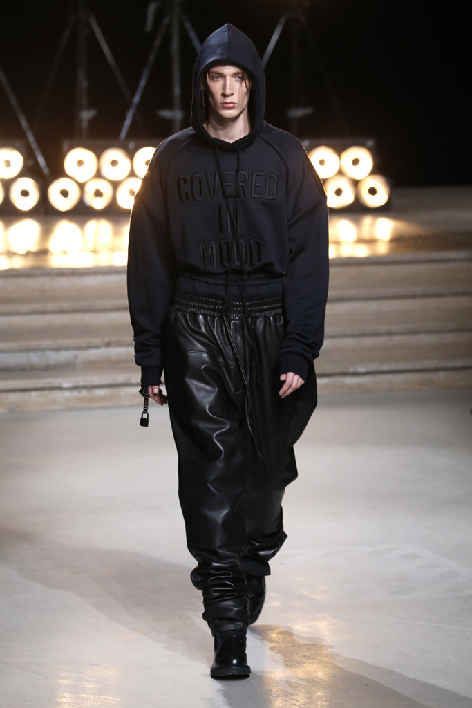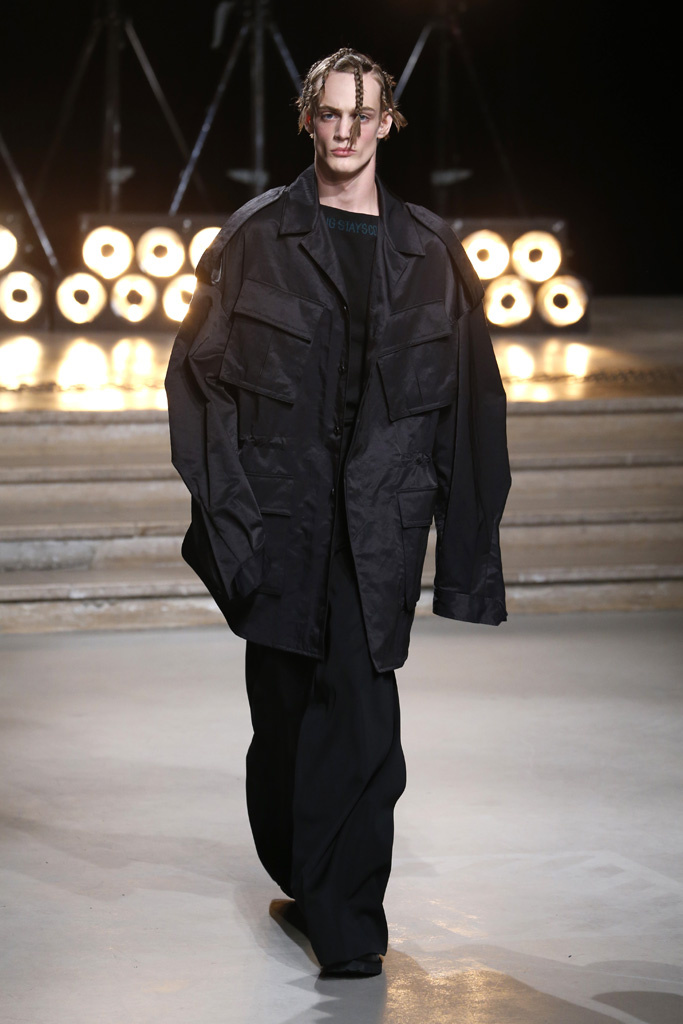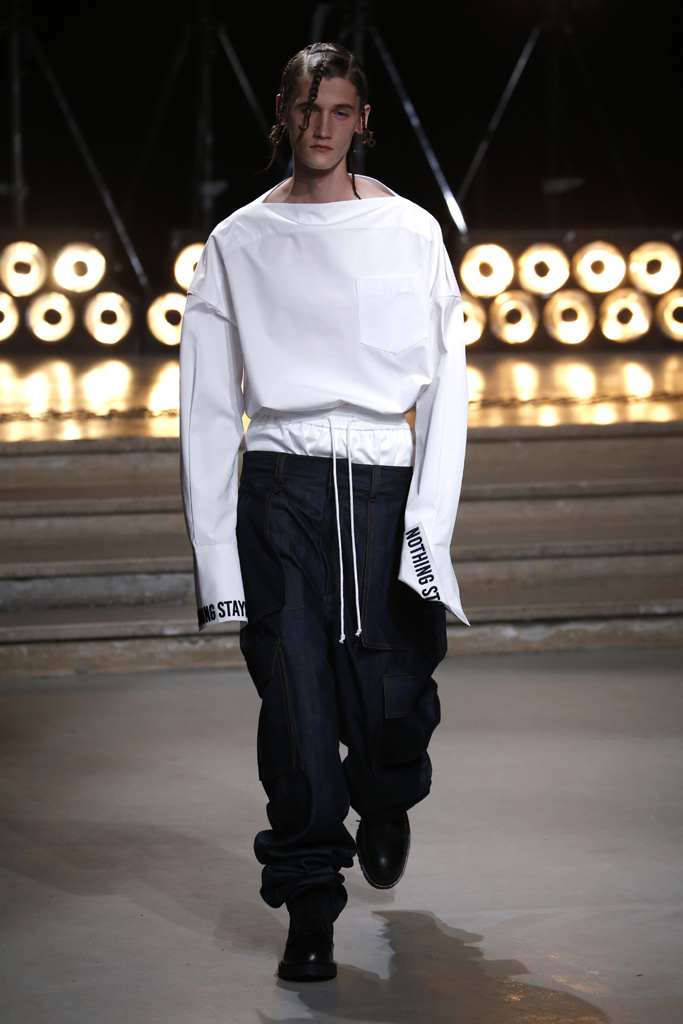 Following a stint as Pitti Uomo’s guest designer, Juun.J was back in Paris with a dynamic collection that captured the cool street kids’ hunger for off-kilter silhouettes and an underground feeling.