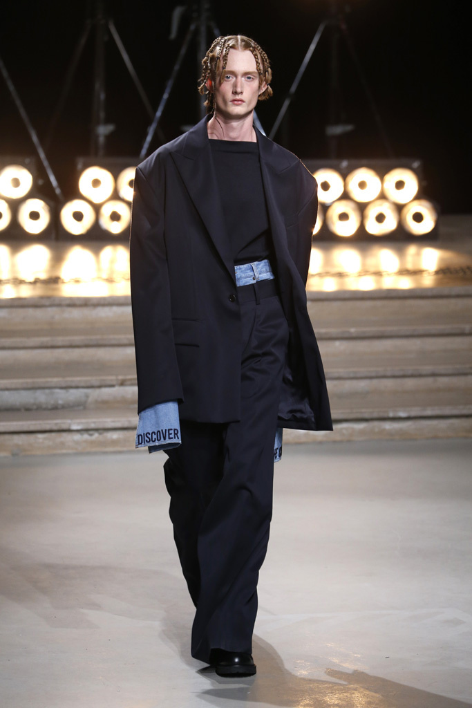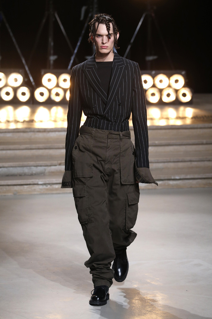 The designer’s tailored options stayed put, though, with a double-breasted suit jacket proving a good match for a pair of bombastic combat bottoms.