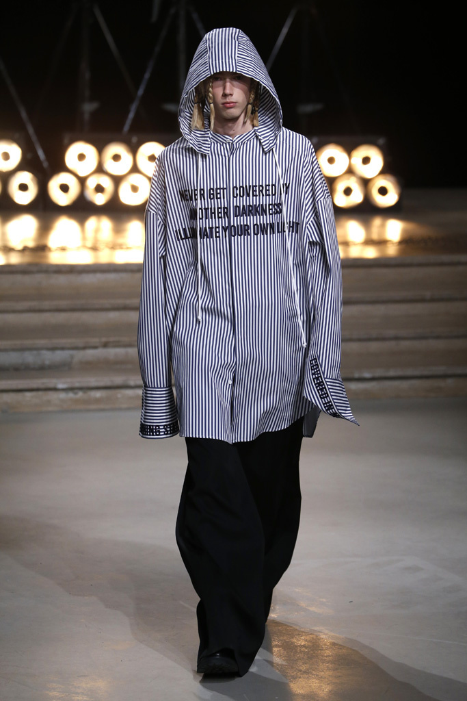 Following a stint as Pitti Uomo’s guest designer, Juun.J was back in Paris with a dynamic collection that captured the cool street kids’ hunger for off-kilter silhouettes and an underground feeling.